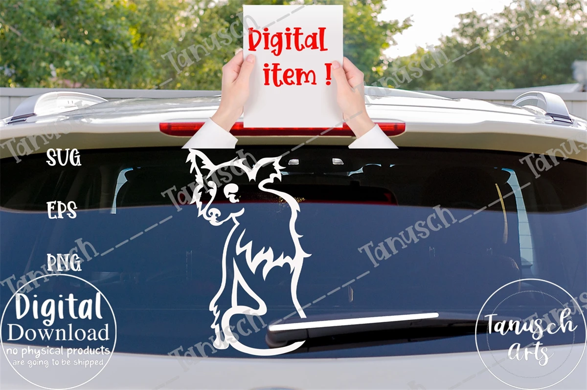 Dog Car Window Decal Wagging Tail Dog Graphic Graphic absolutely cool digital dog sticker for your car.