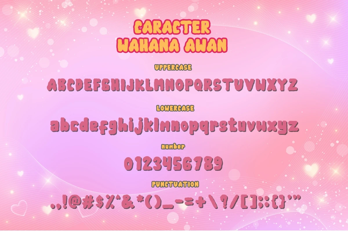 Wahana Awan is a fun and quirky bubble display font that brings back the spirit of the retro era. Their cute curves and funky shapes exude a sense of nostalgia and excitement. Perfect for disco-inspired designs, party invitations, and retro-themed projects, it adds a touch of unique style and fun to any creative endeavor.