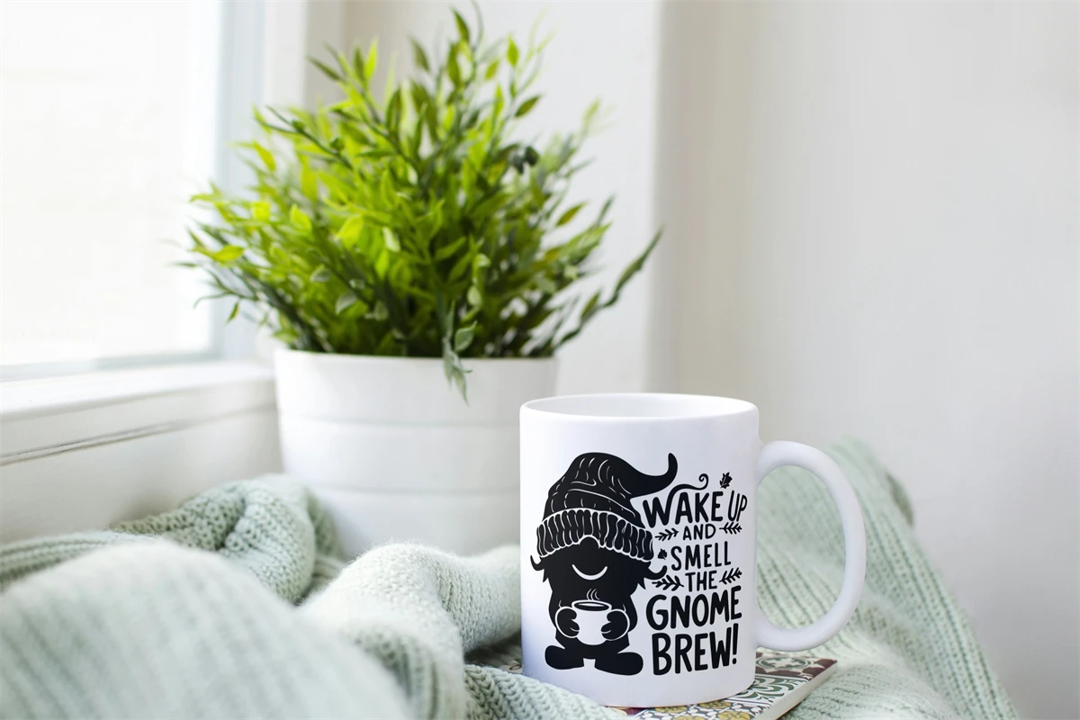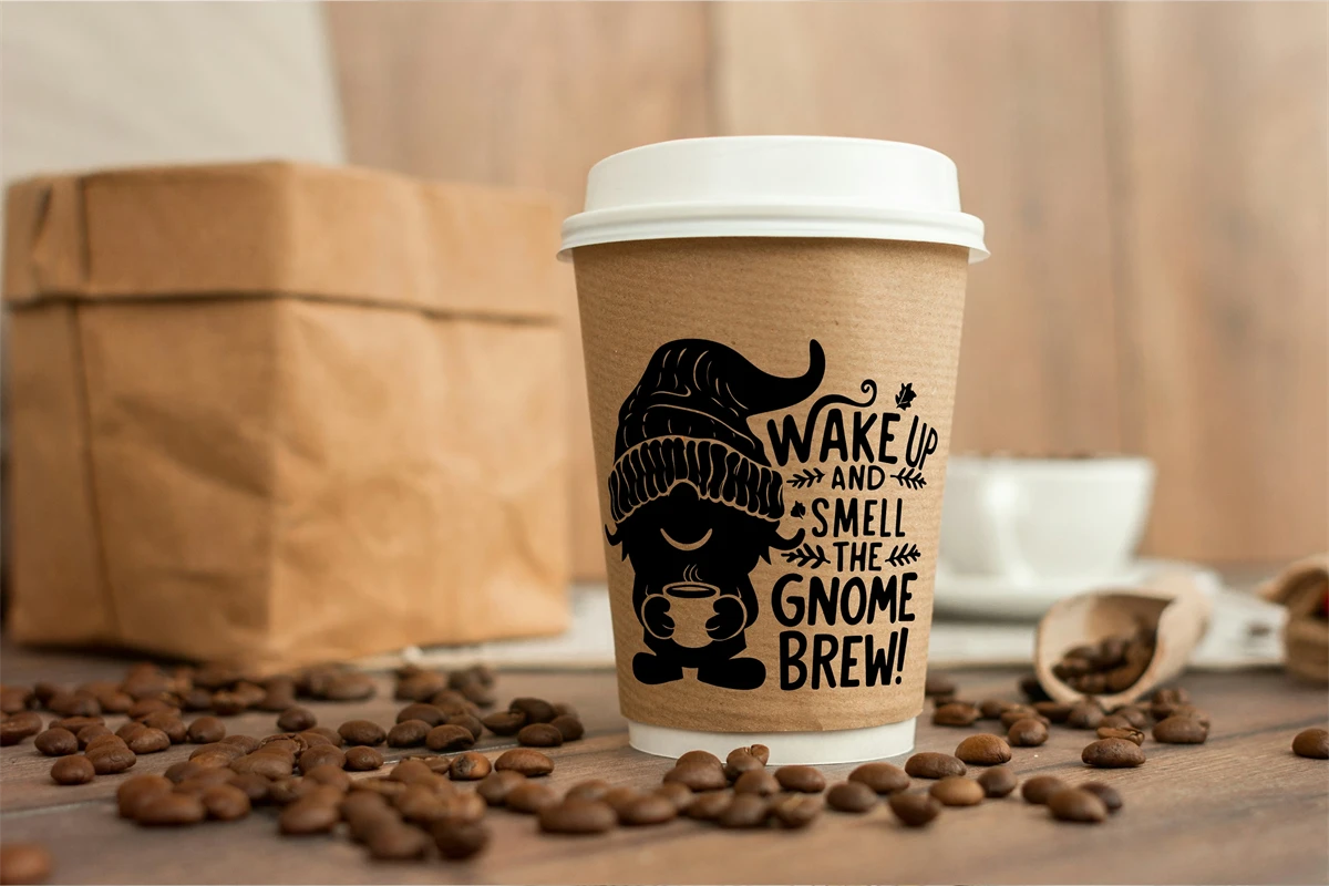 Perfect for coffee lovers, this whimsical design features an adorable gnome enjoying a favorite brew with fun and catchy quote.