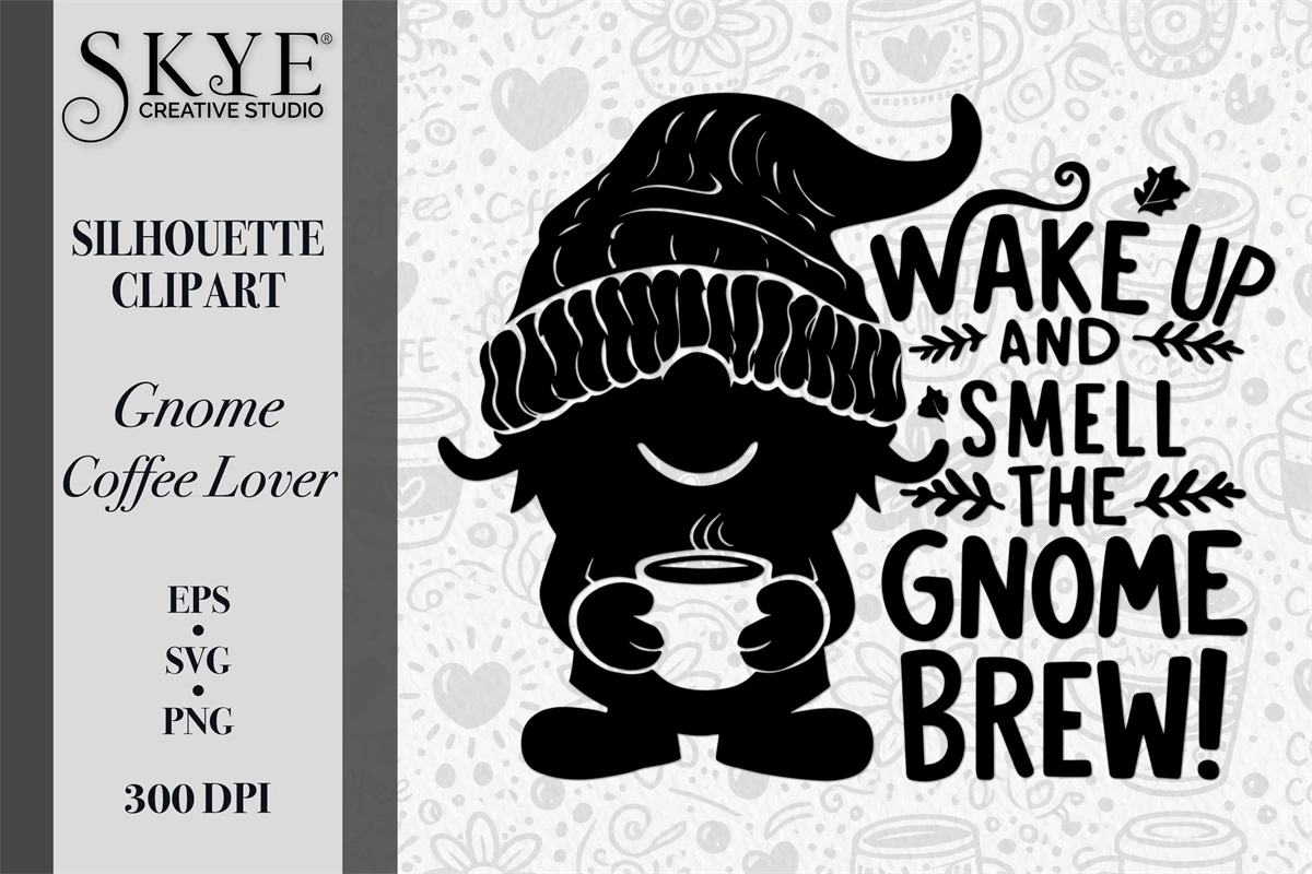 Coffee Gnome for Coffee Lover with Coffee Quotes Silhouette Illustration Clipart.