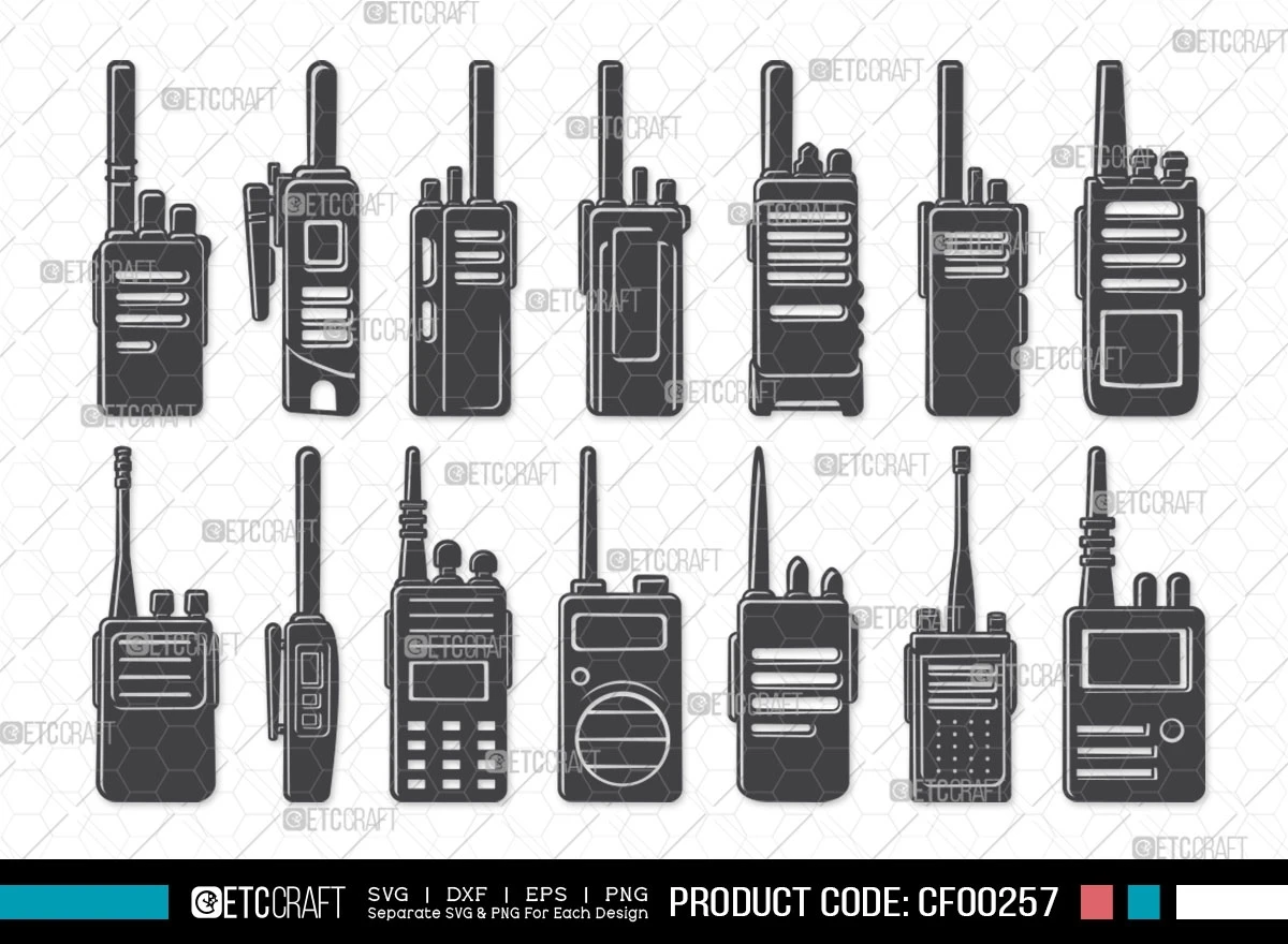 Whether you're promoting communication services, creating educational materials, or simply adding a professional and connected touch to your design projects, our Walkie Talkie Silhouette and Portable Communication Radio SVG Cut File Bundle is the ultimate solution. Elevate your visuals with these high-quality graphics and take your projects to the next level. Get started with this bundle today!