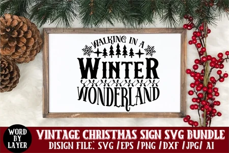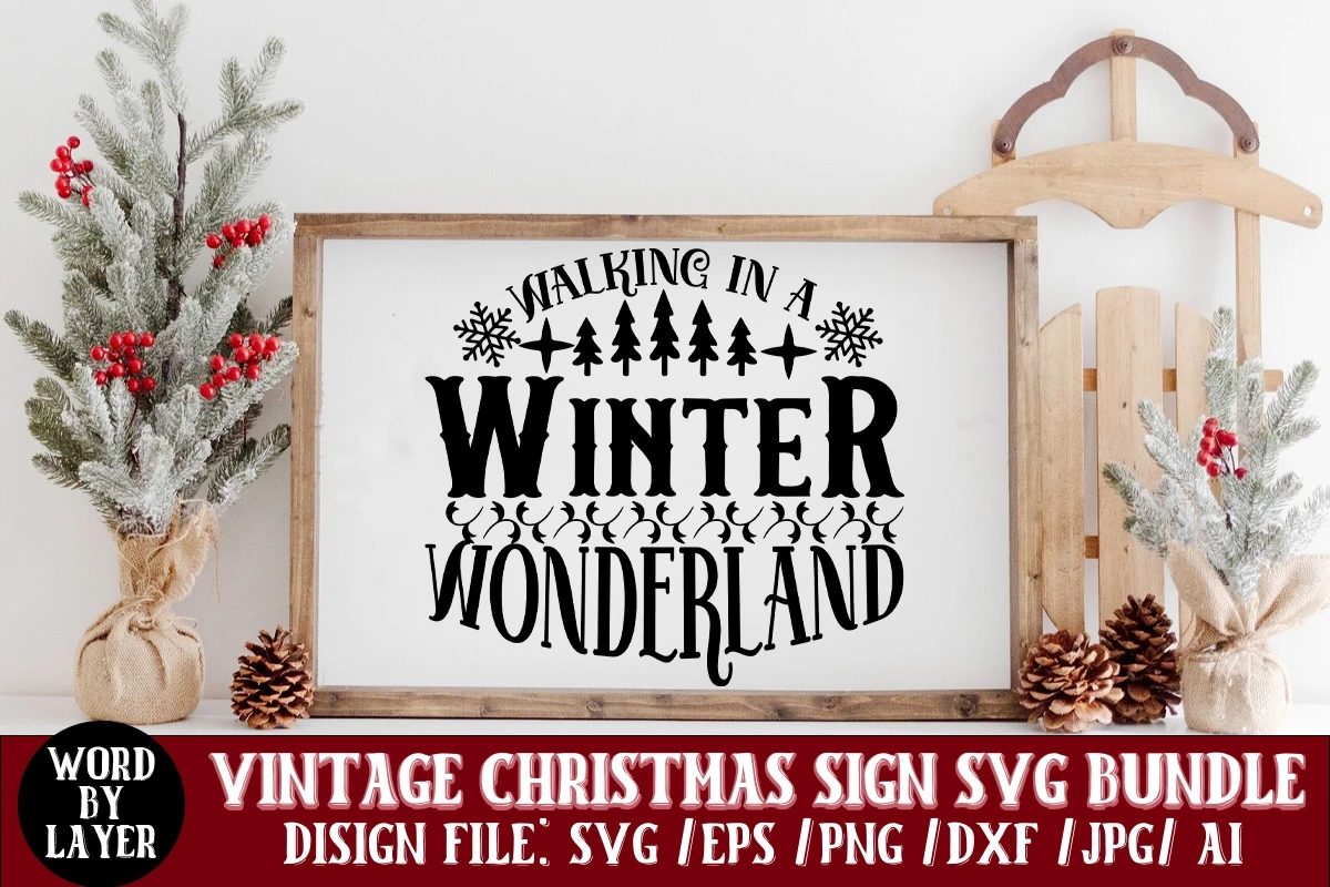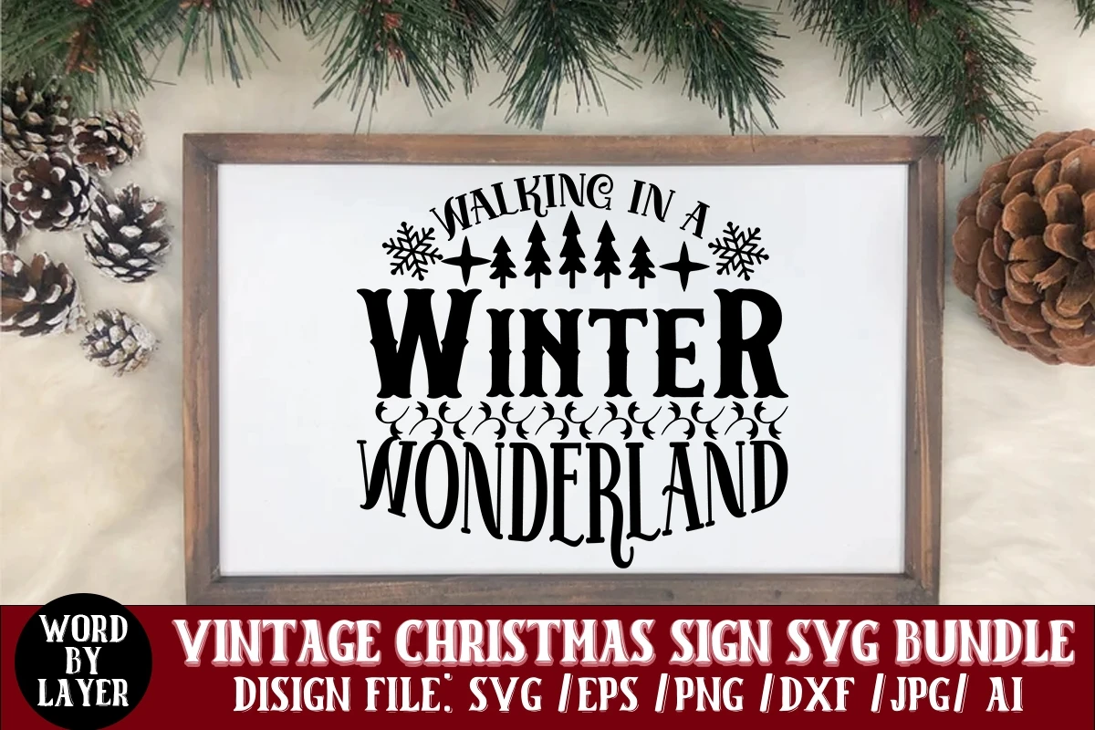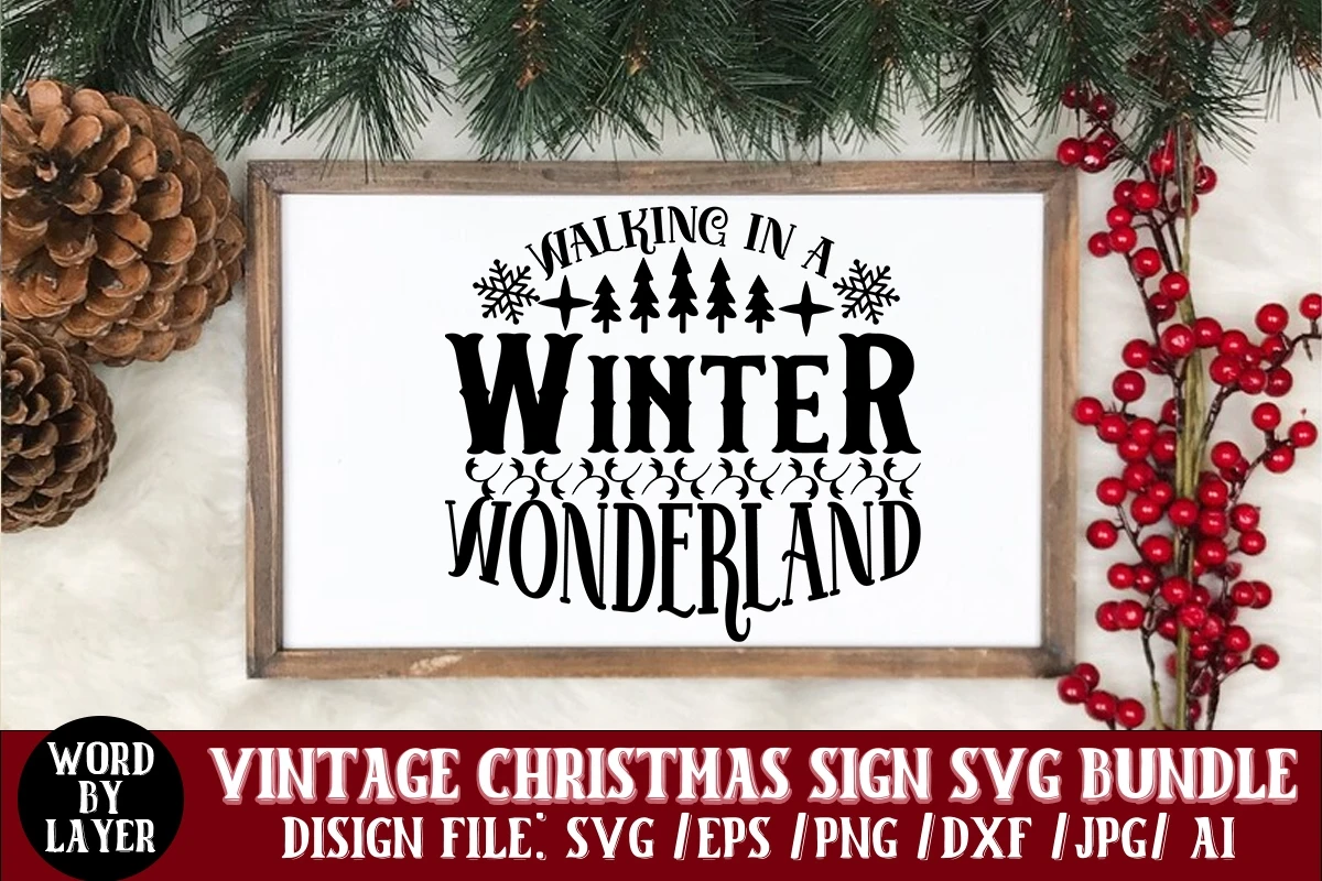 Walking In A Winter Wonderland Vintage Christmas Sign SVG