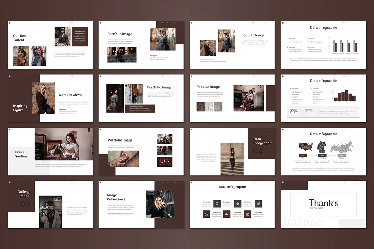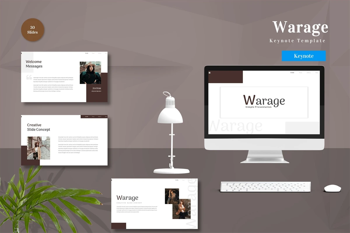 Get it now! **Warage - Keynote Template** for All Business and Personal Needs All elements on this template are editable; input your content, replace your image with a placeholder, change the color, and all presentations include an animated slide to present your slides.
