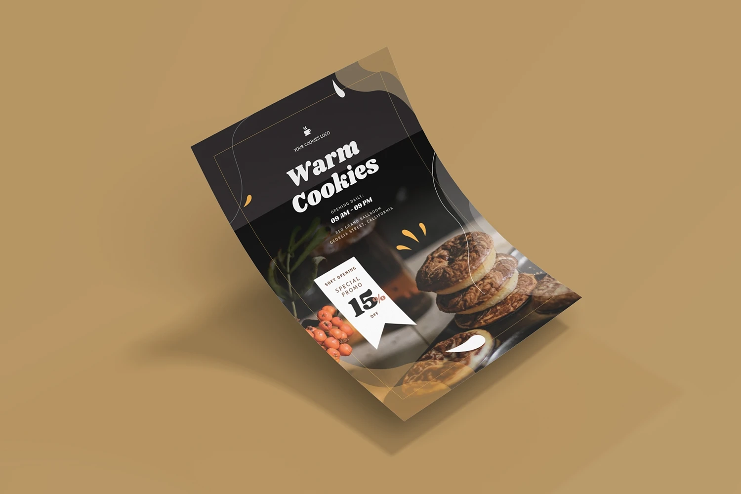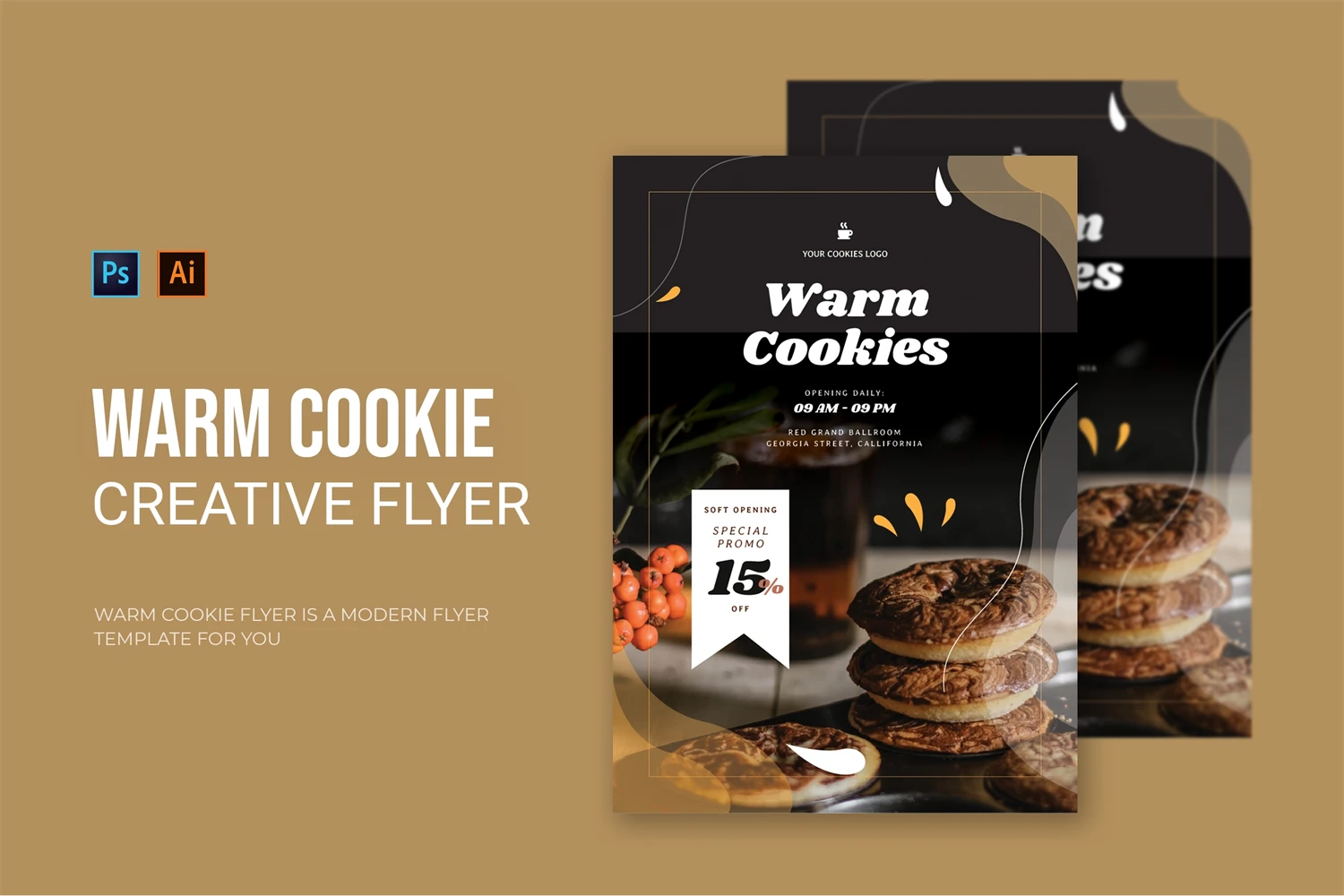 Warm Cookie - Flyer. This Flyer template is designed for your company's business needs. very clean and elegant, and also easily edited and adjusted to your liking