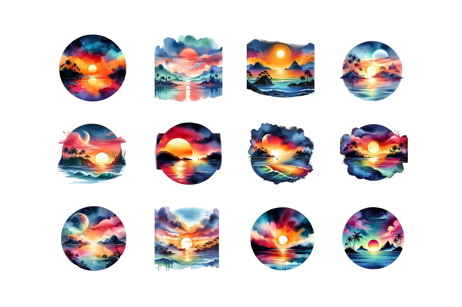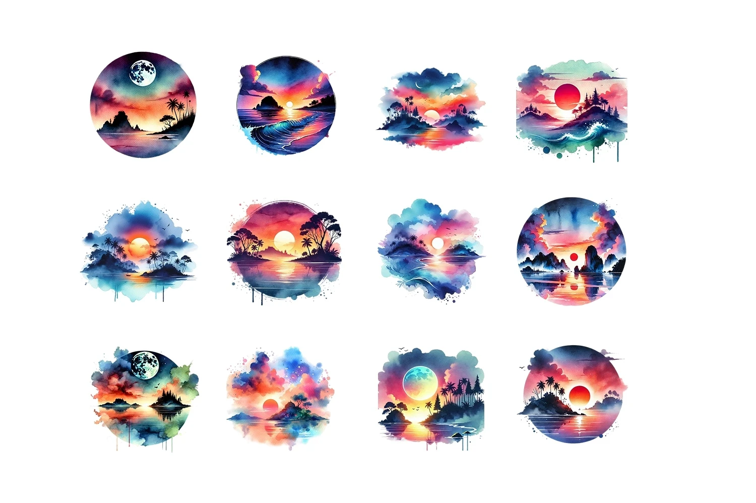 Watercolor Abstract Dusk Island Scenery Clipart PNG (AI-generated).