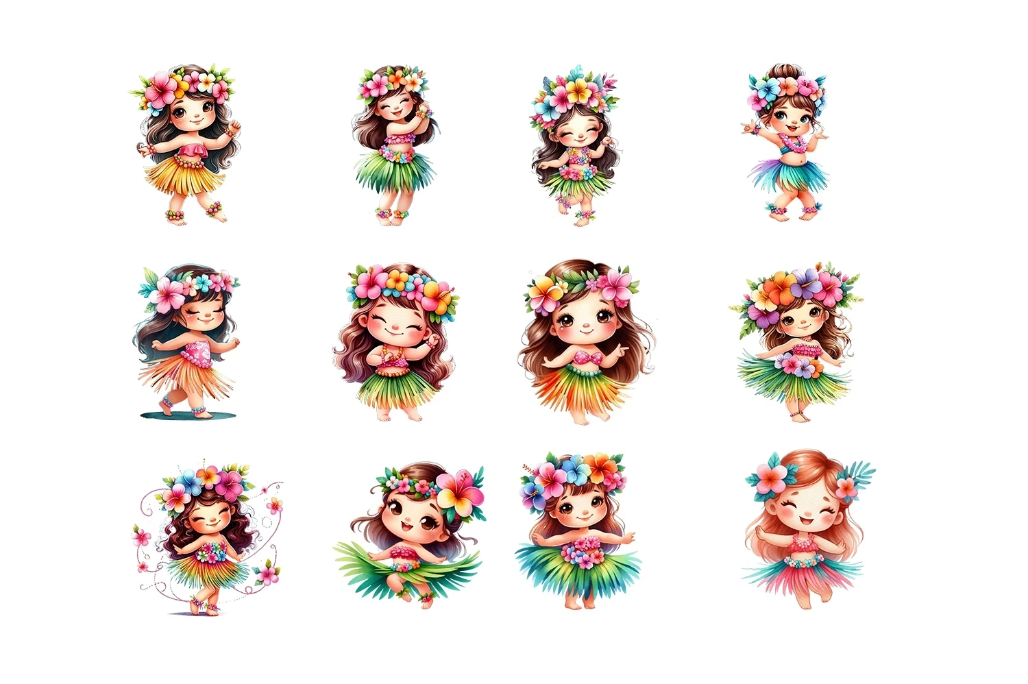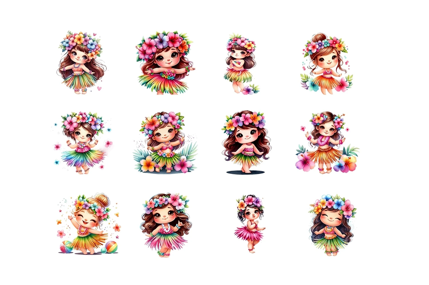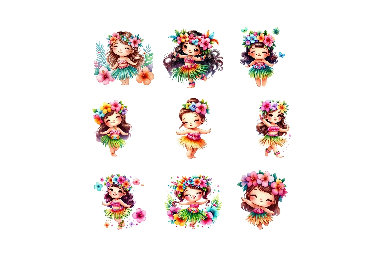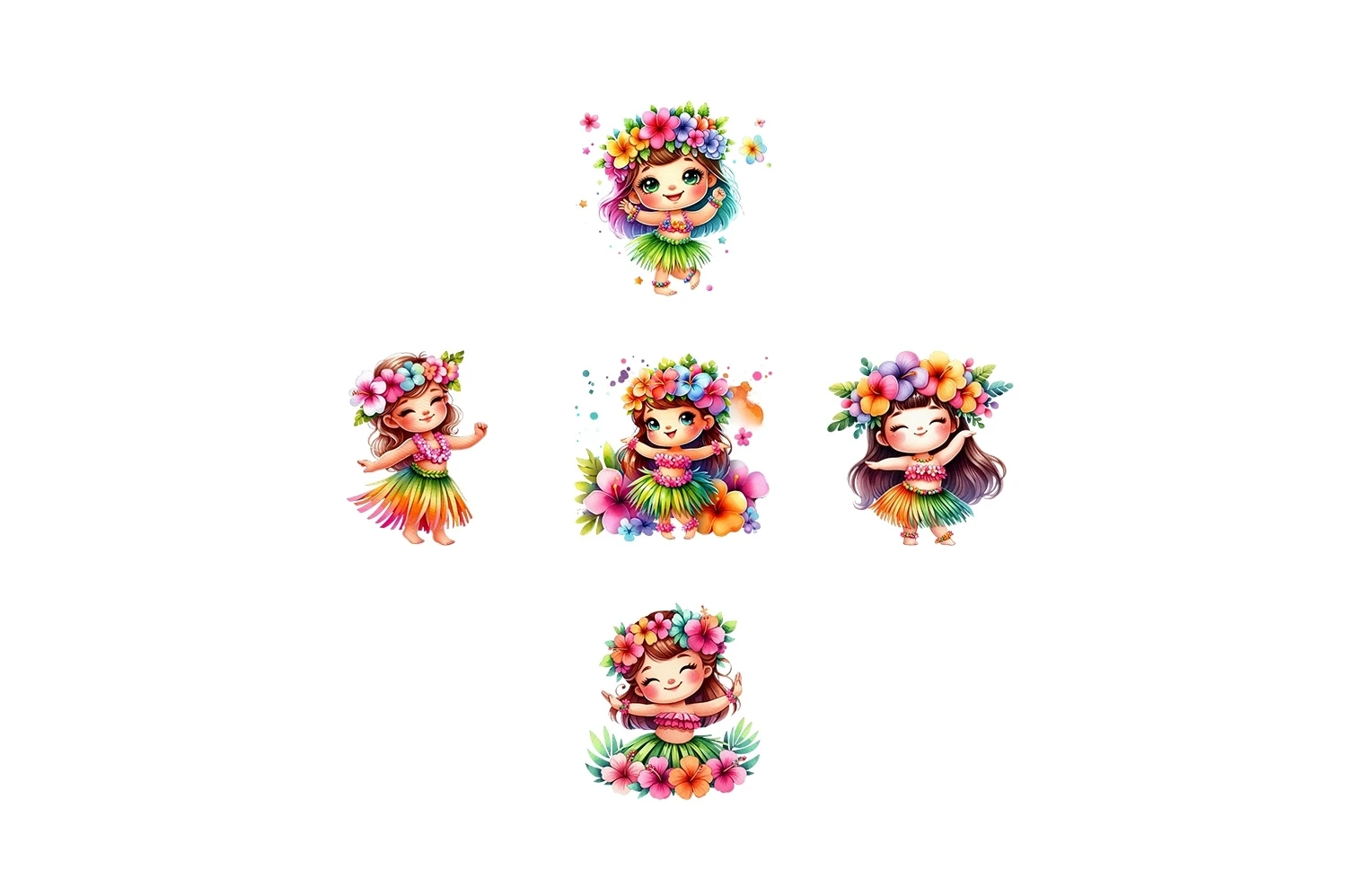 Watercolor Adorable Little Hula Girl Clipart Sublimation (AI-generated).