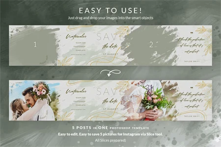 Instructions are included. It's so easy to use Photoshop templates and actions. Just put text or photo into smart object.
