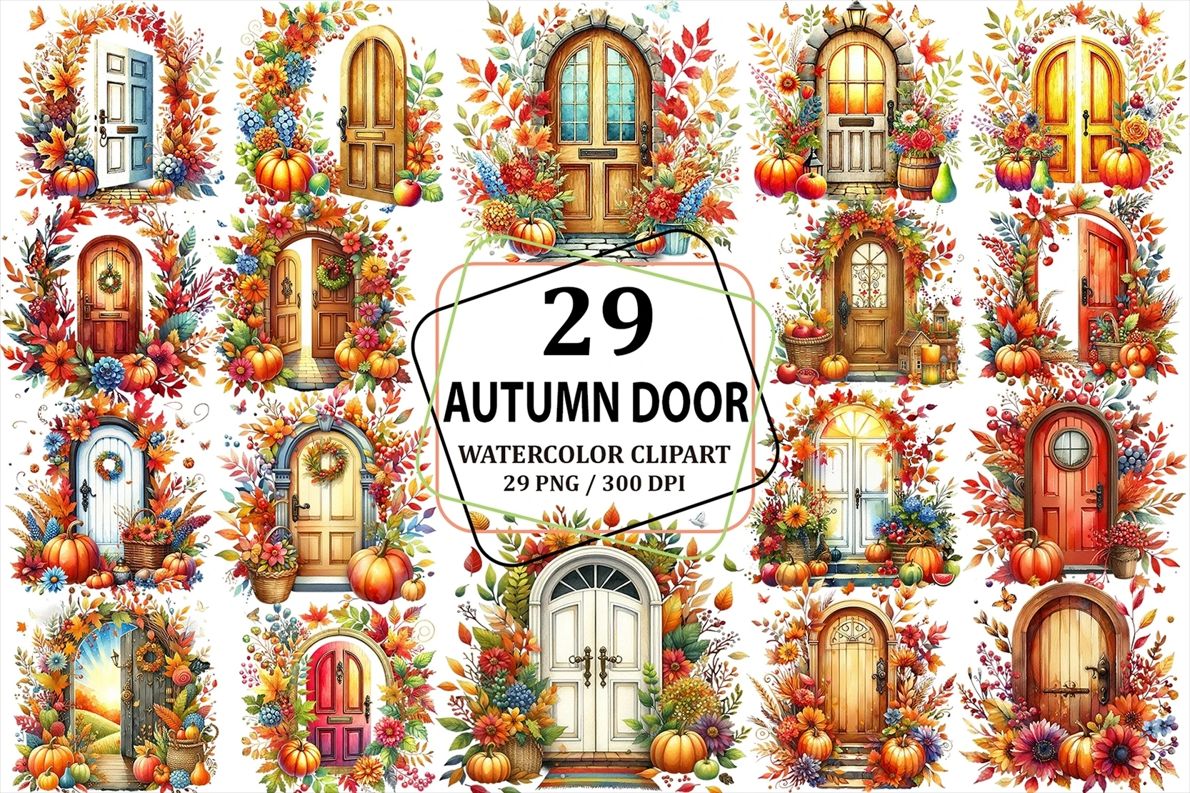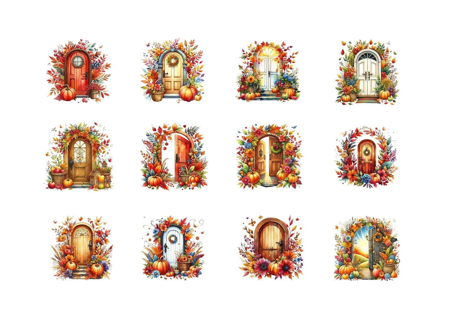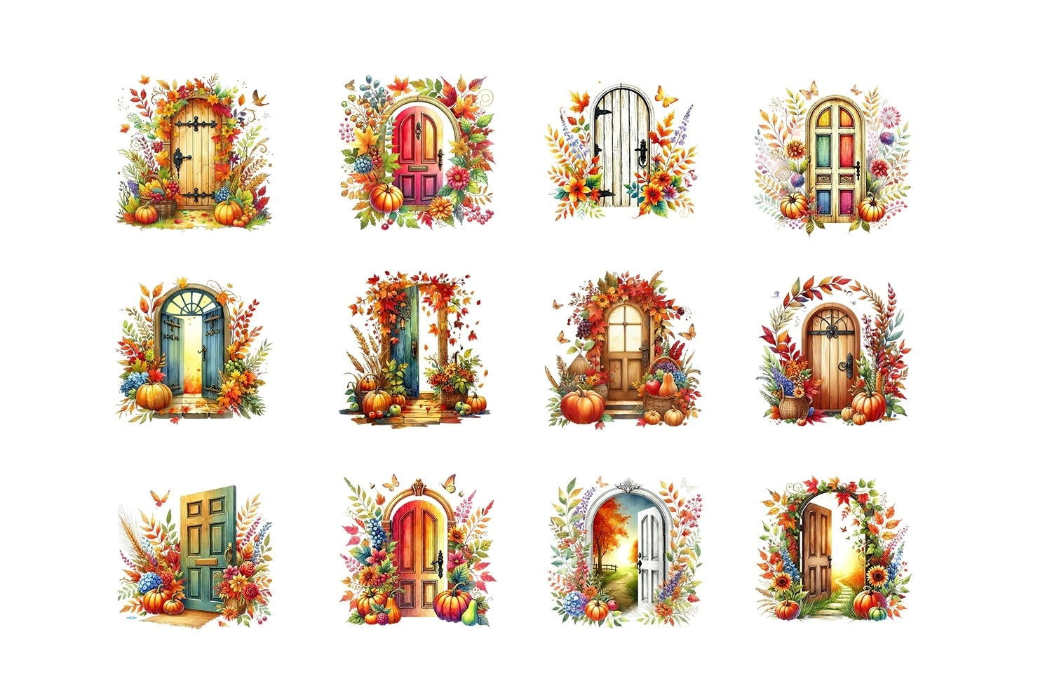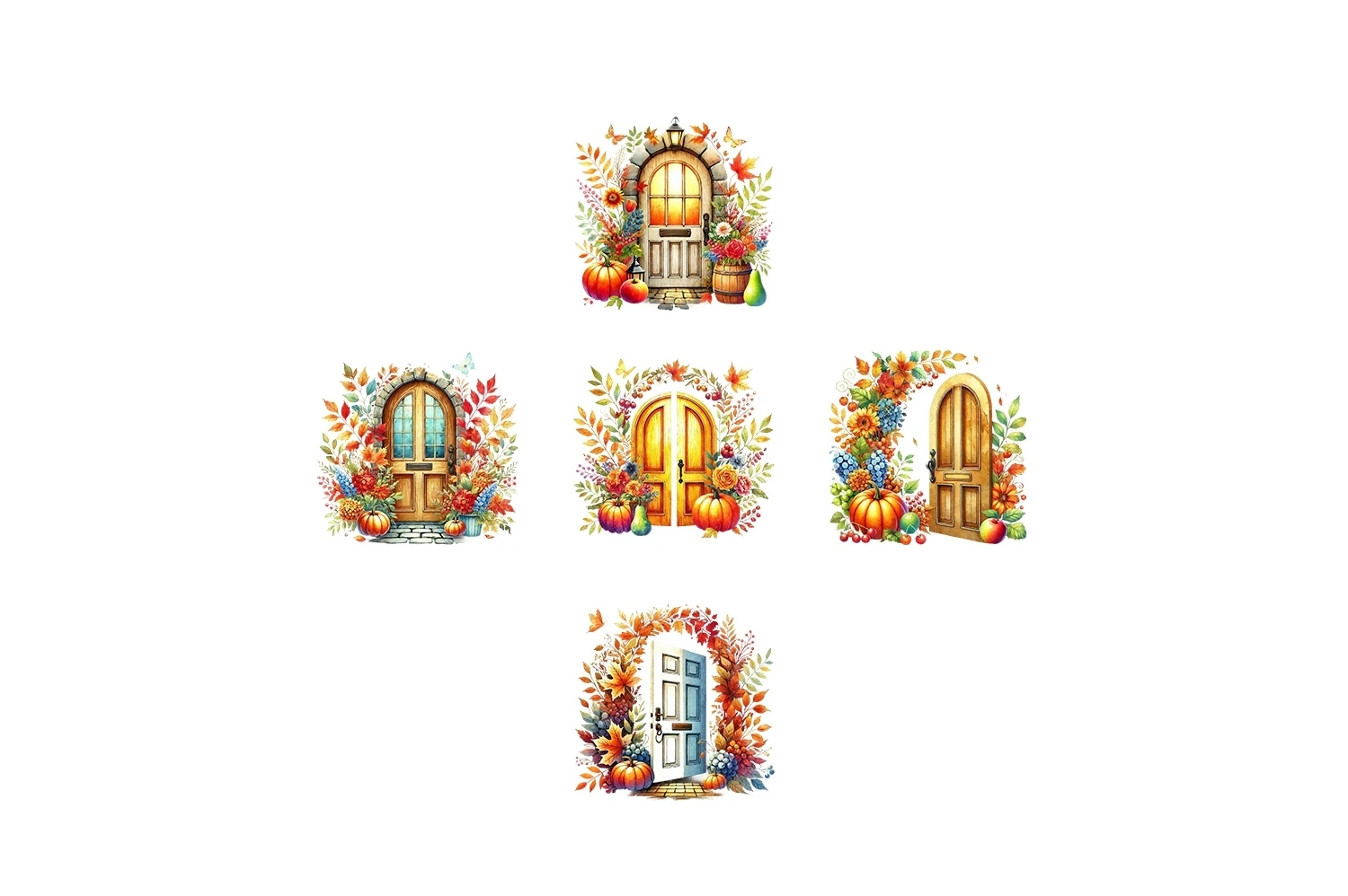 Watercolor Autumn Door Clipart Sublimation PNG (AI-generated).