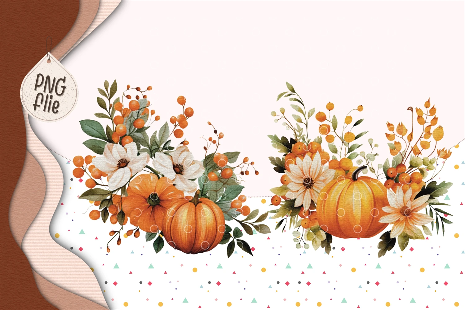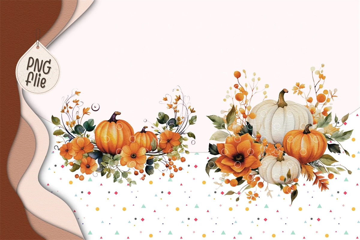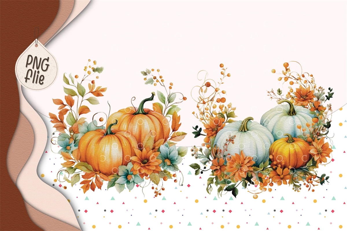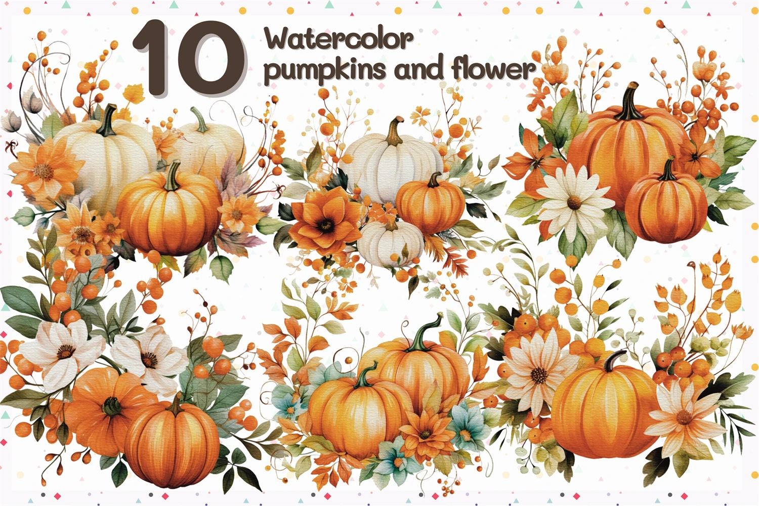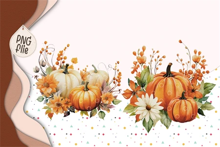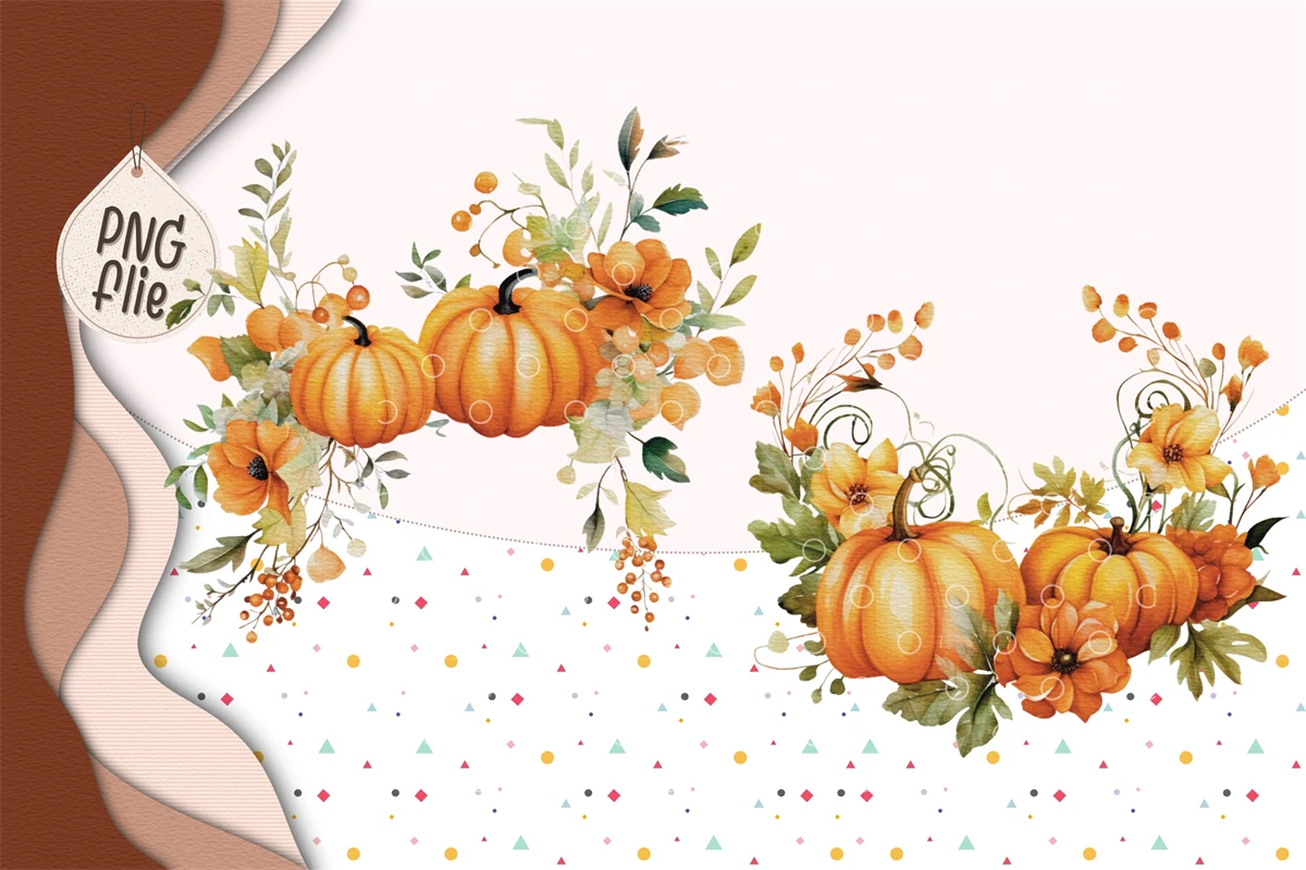 Watercolor autumn pumpkins and flowers