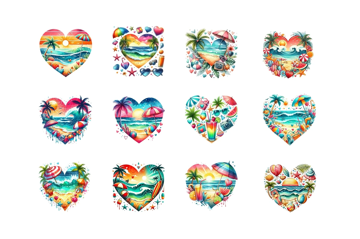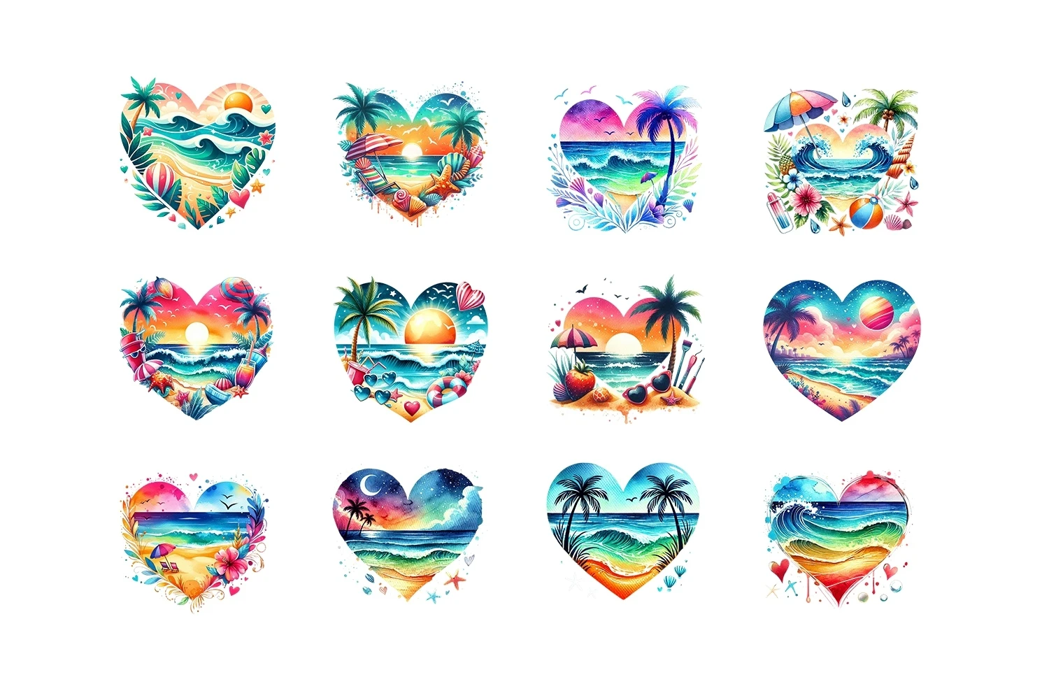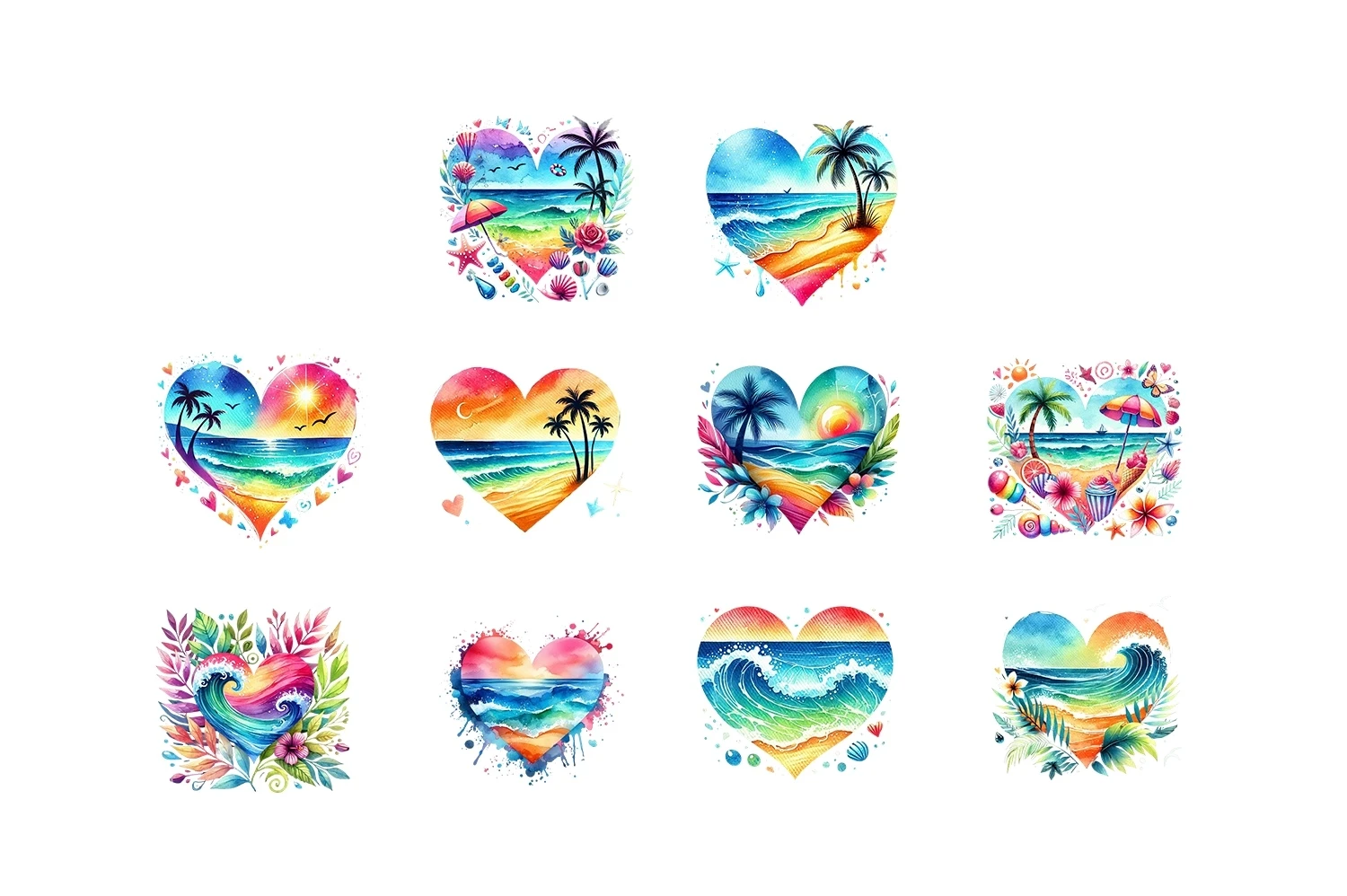 Watercolor Beach Heart Clipart Sublimation PNG (AI-generated).