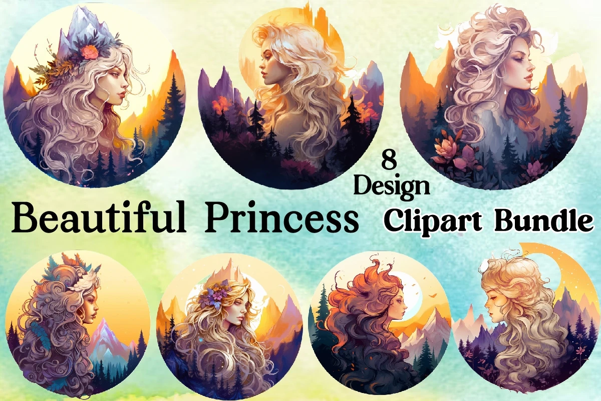 Watercolor Beautiful Princess Sublimation Bundle