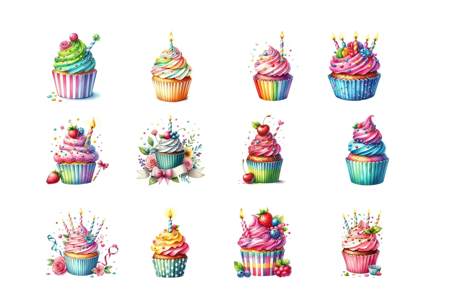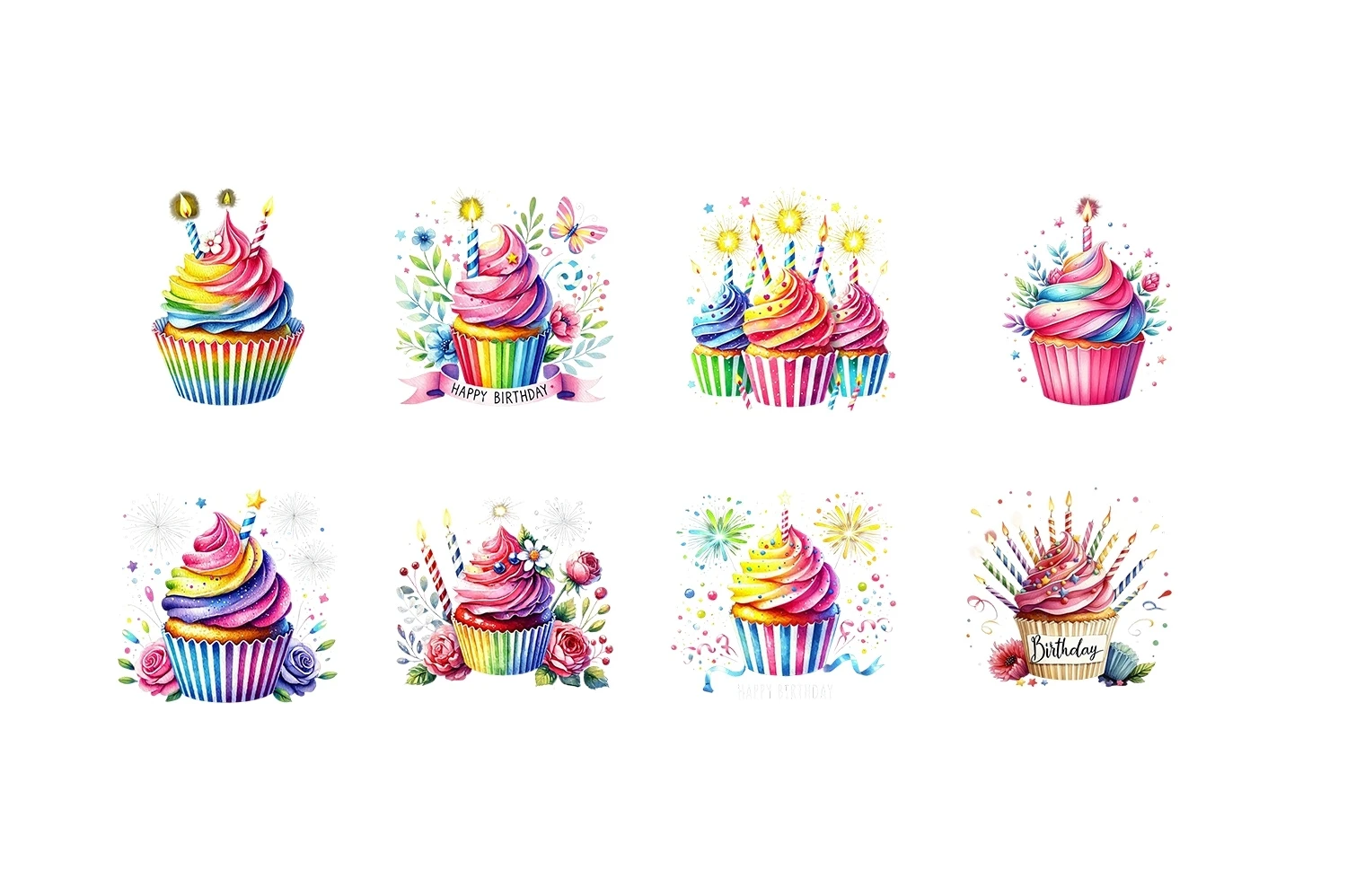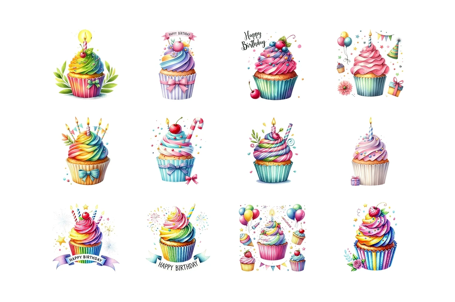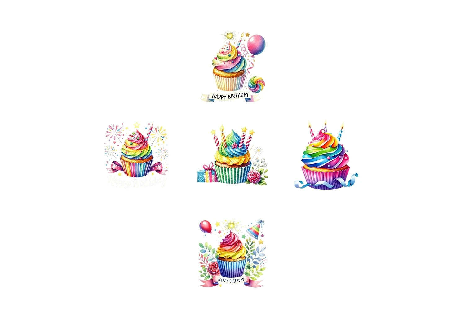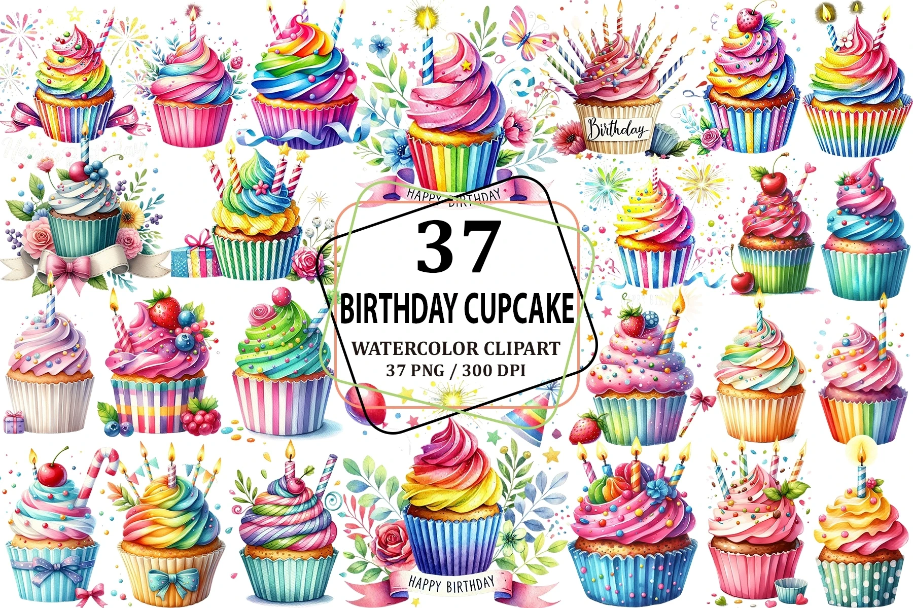 Watercolor Birthday Cupcake Clipart Sublimation (AI-generated).