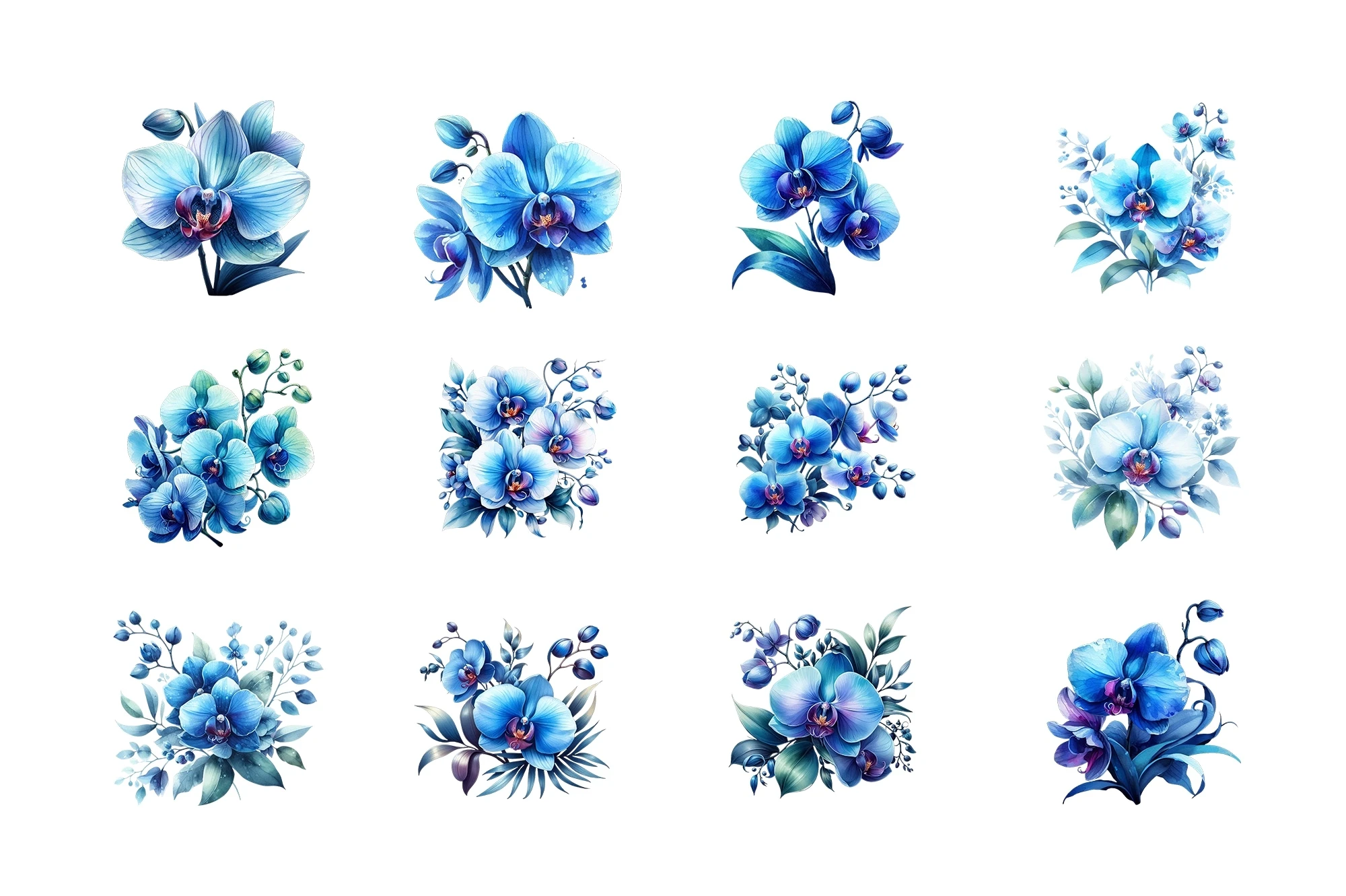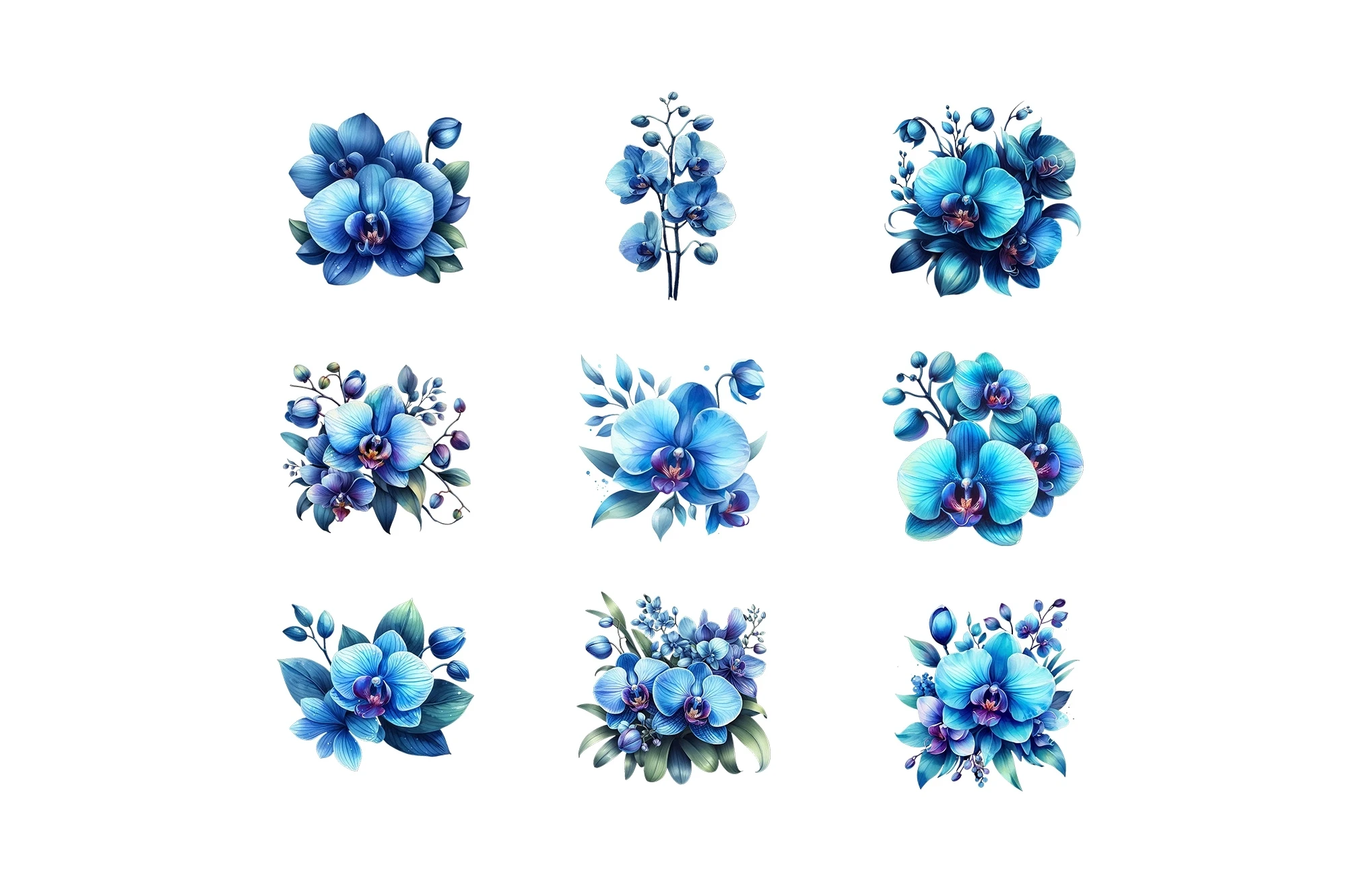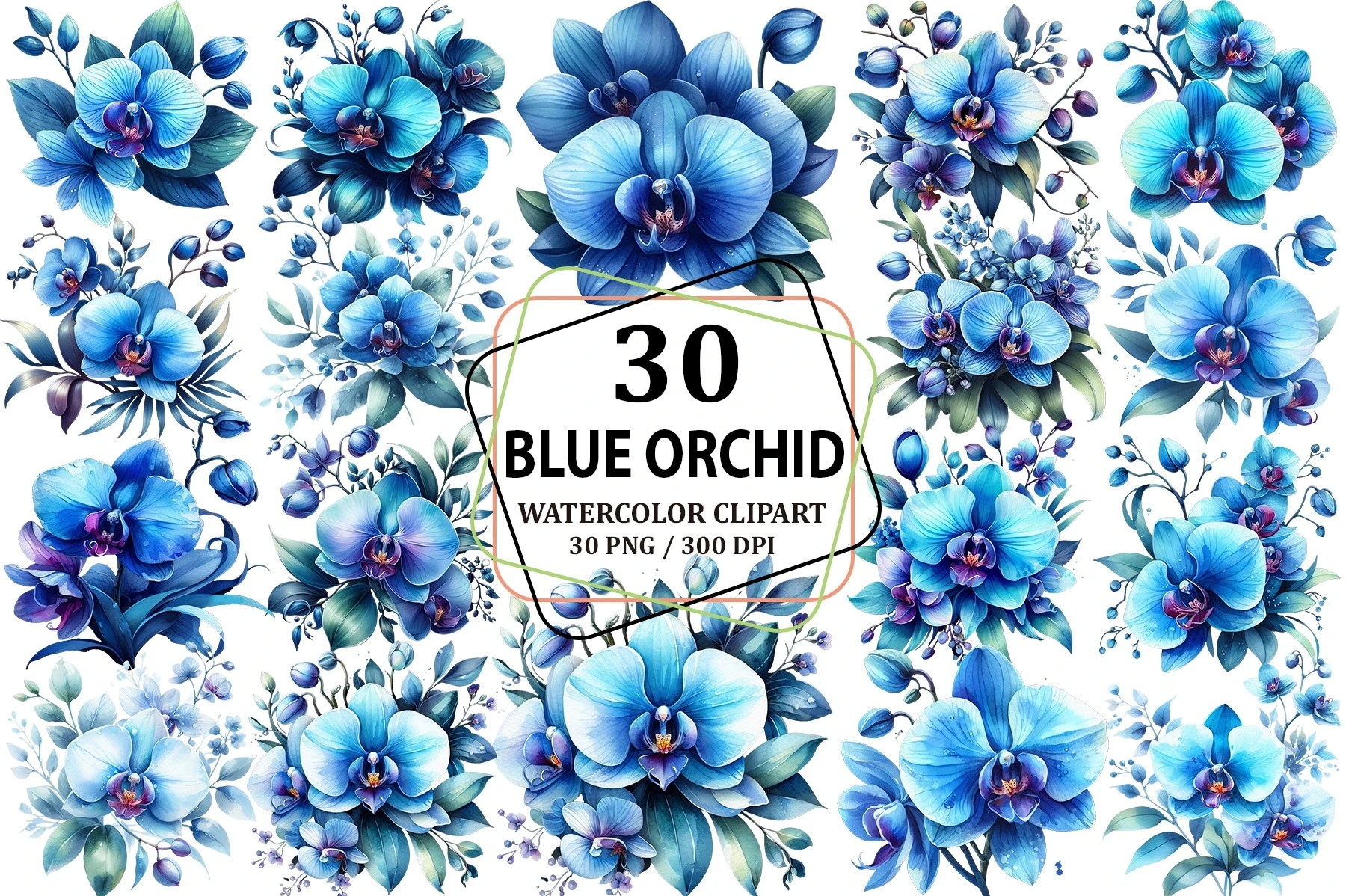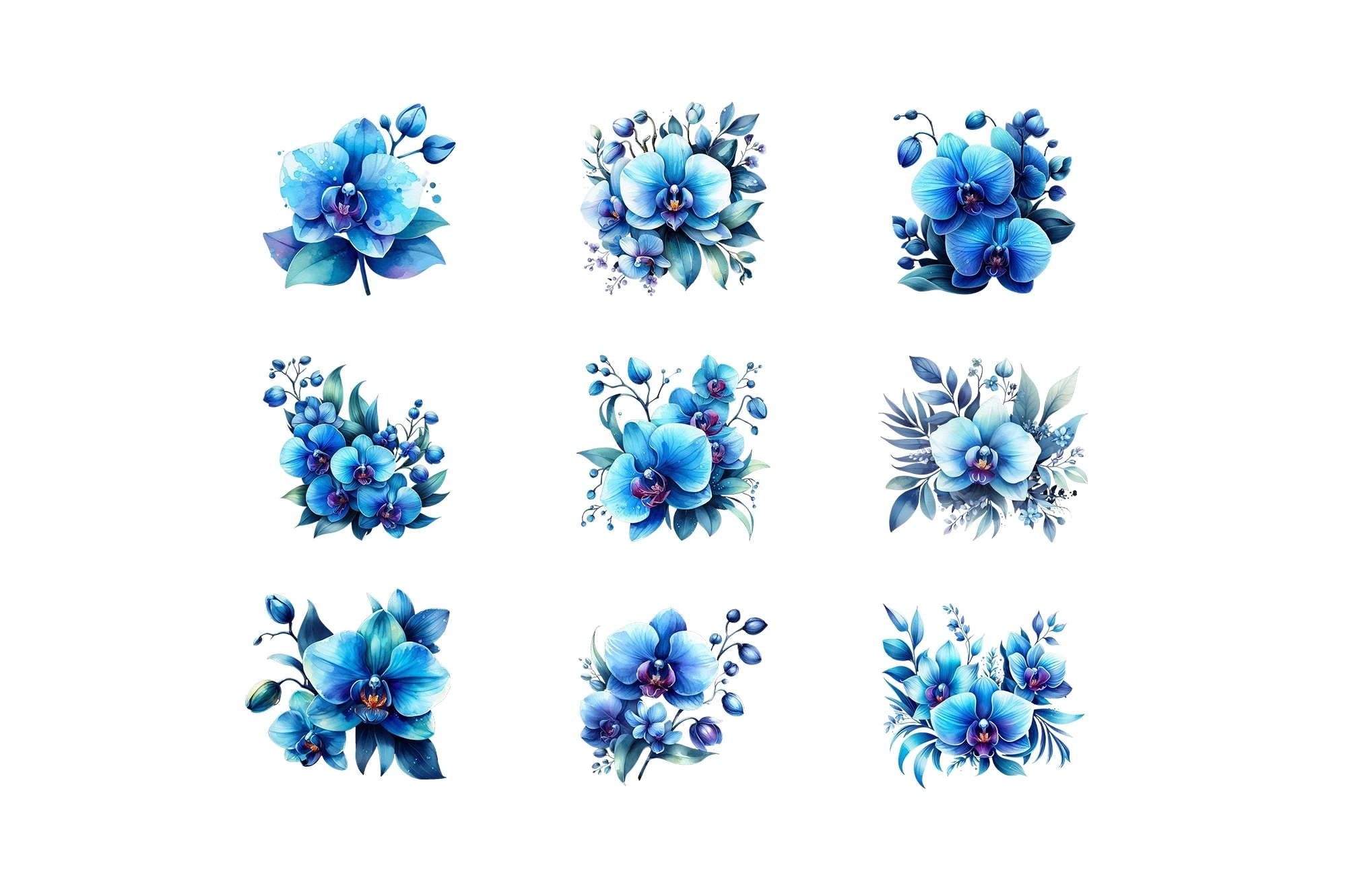 Watercolor Blue Orchid Clipart Sublimation PNG (AI-generated).