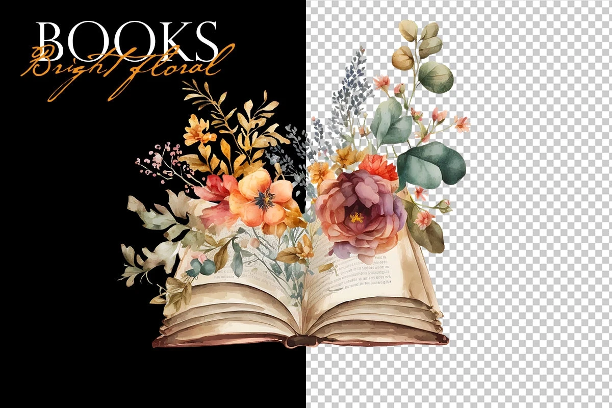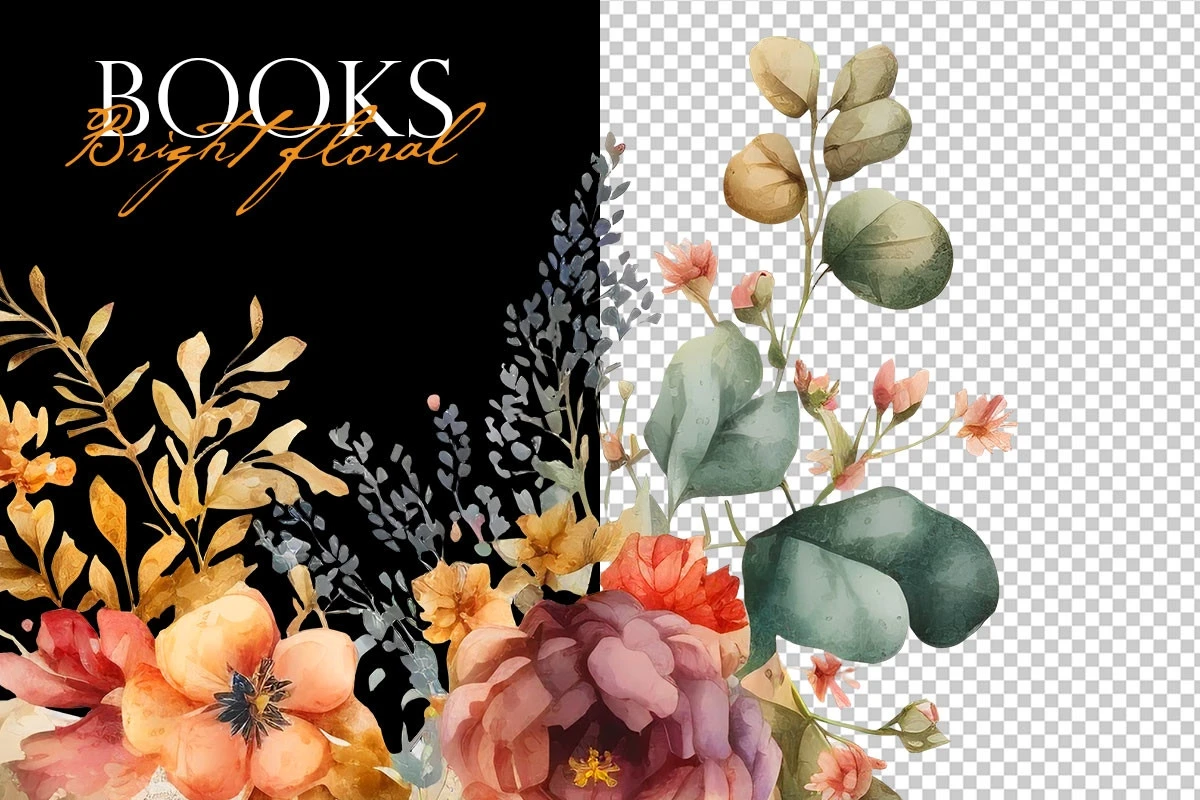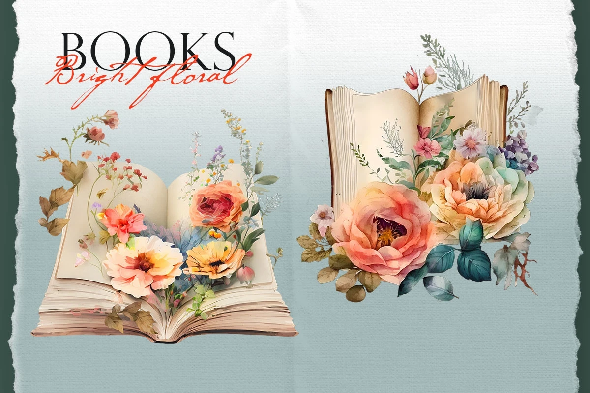 Watercolor books with bright colortul flowers.