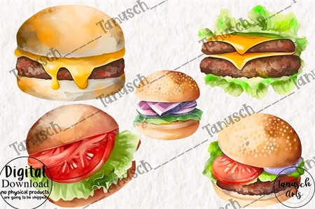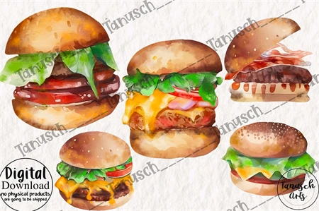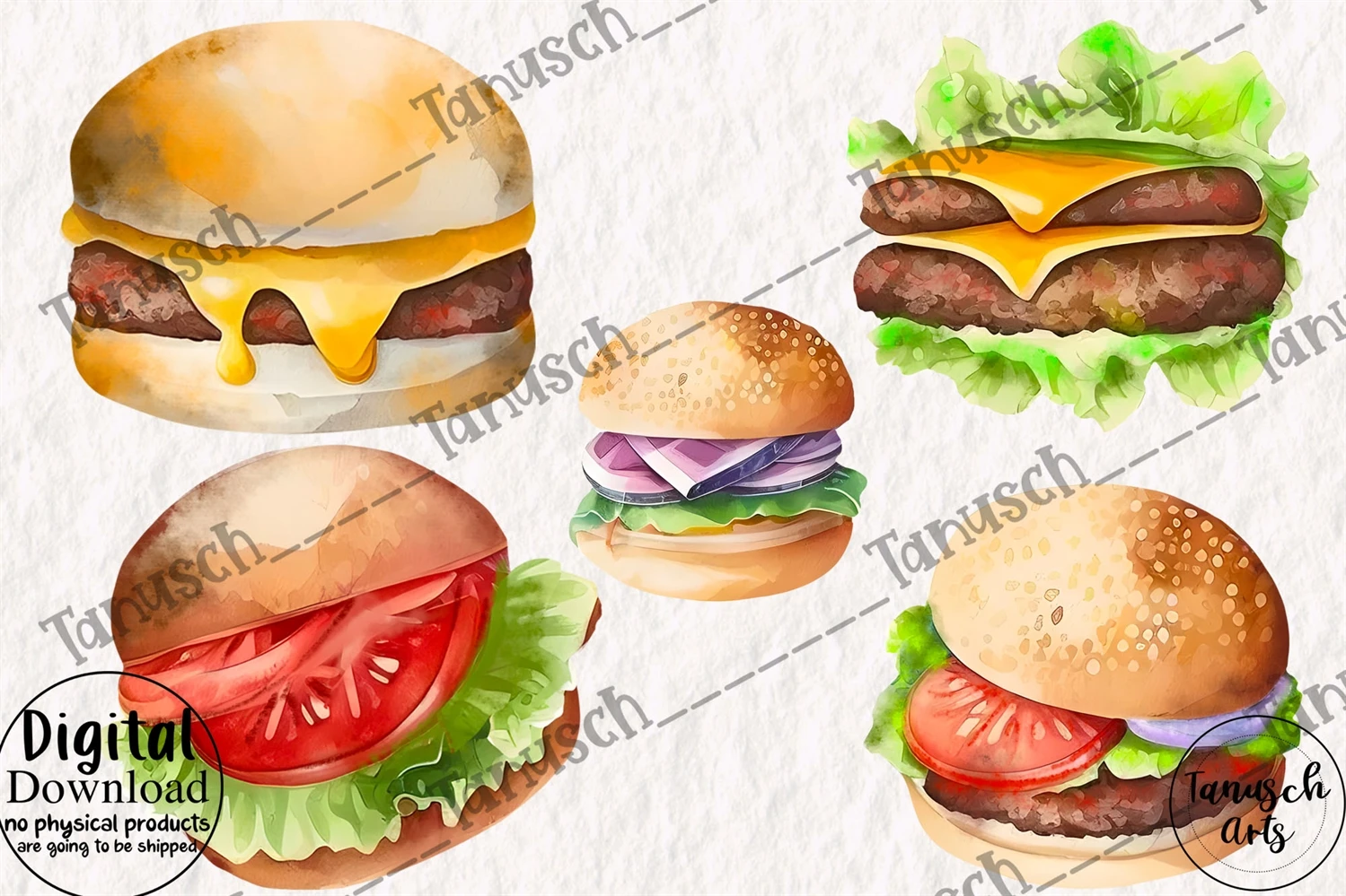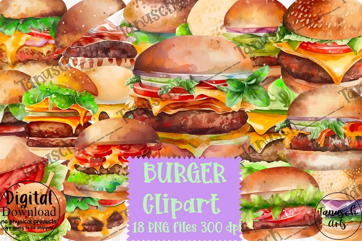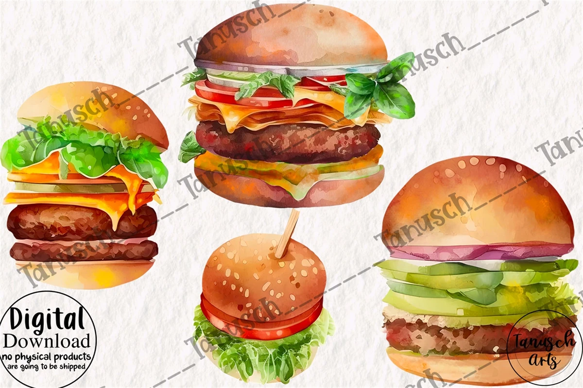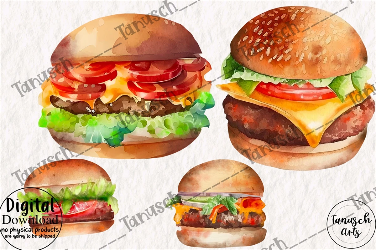 Hand painted cute and modern Watercolor and mixed Burger Clipart