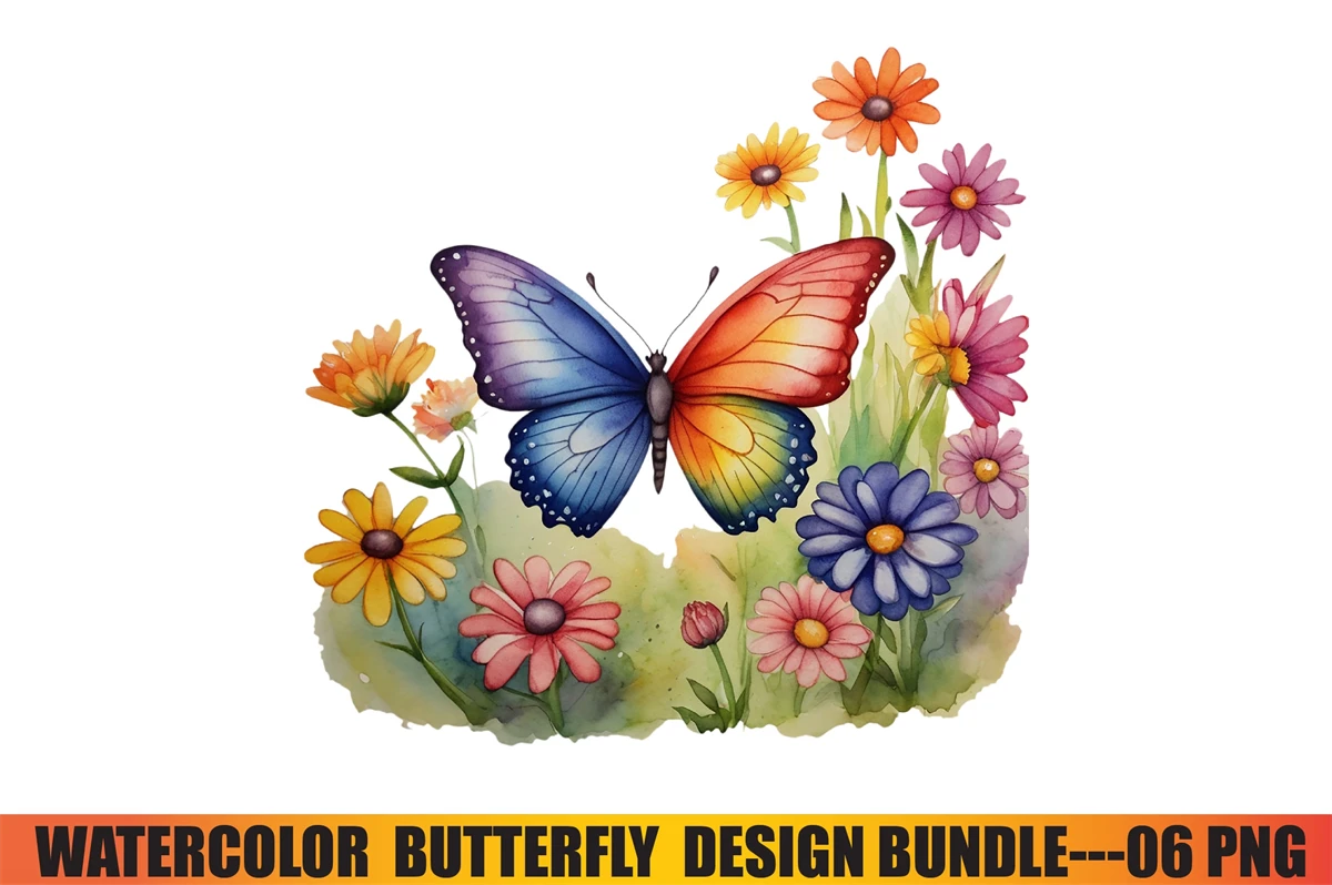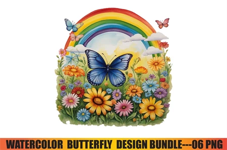 Watercolor Butterfly Design Clipart T-Shirt Design Bundle digital download cutting file for Circuit And Silhouette
