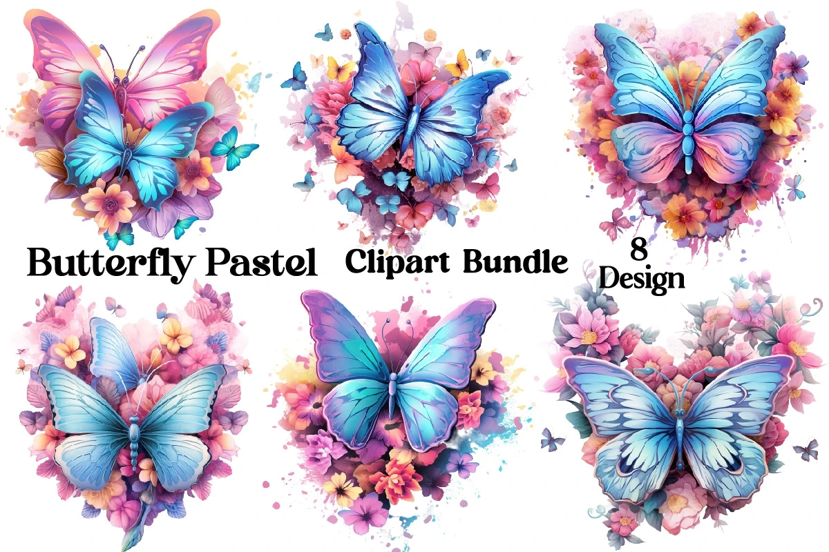 Watercolor Butterfly Pastel PNG Sublimation Bundle
