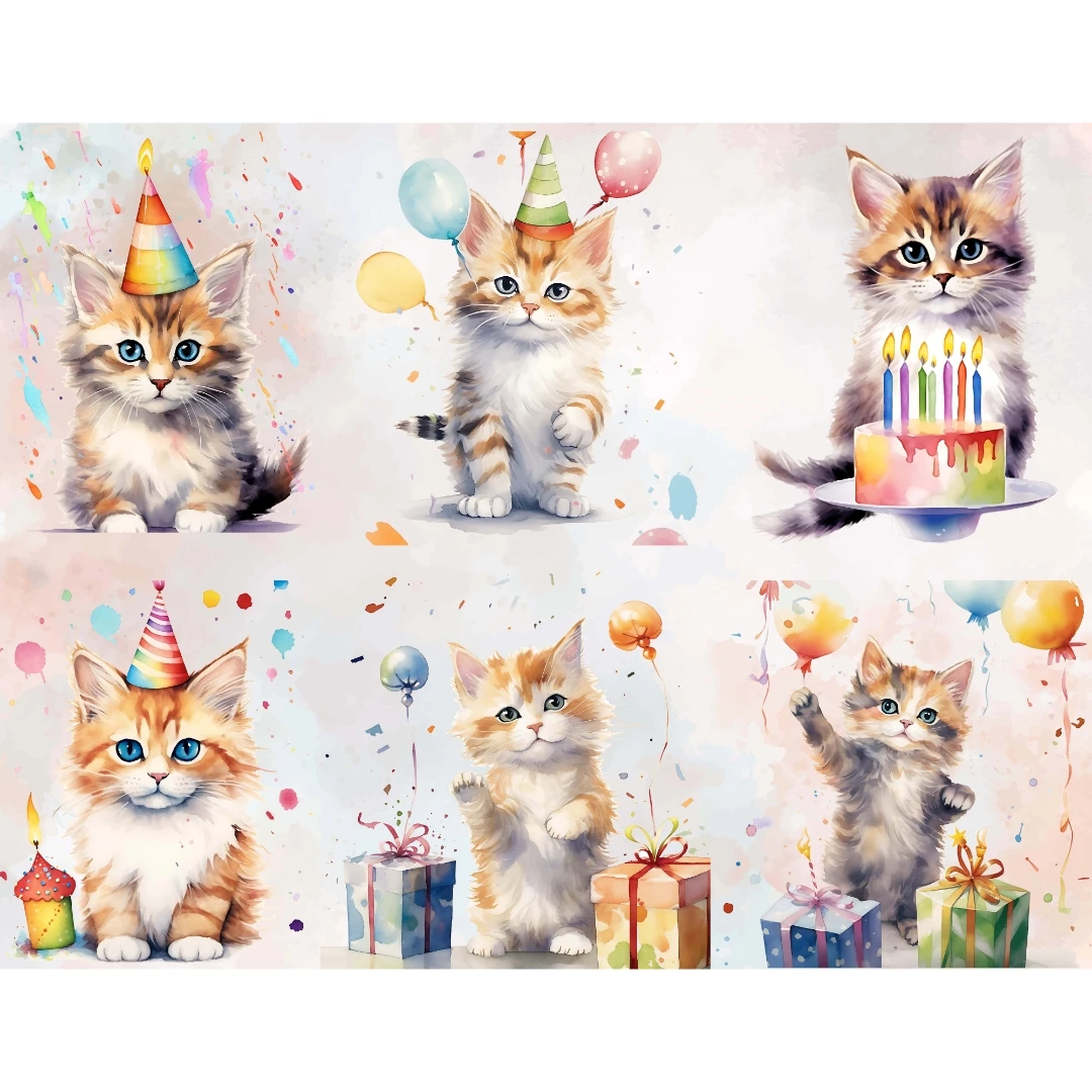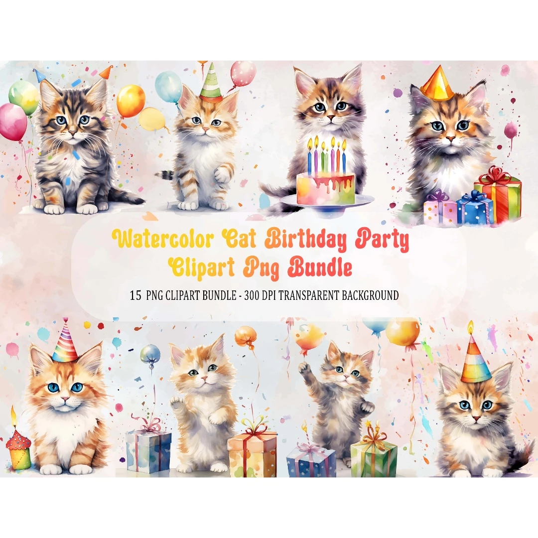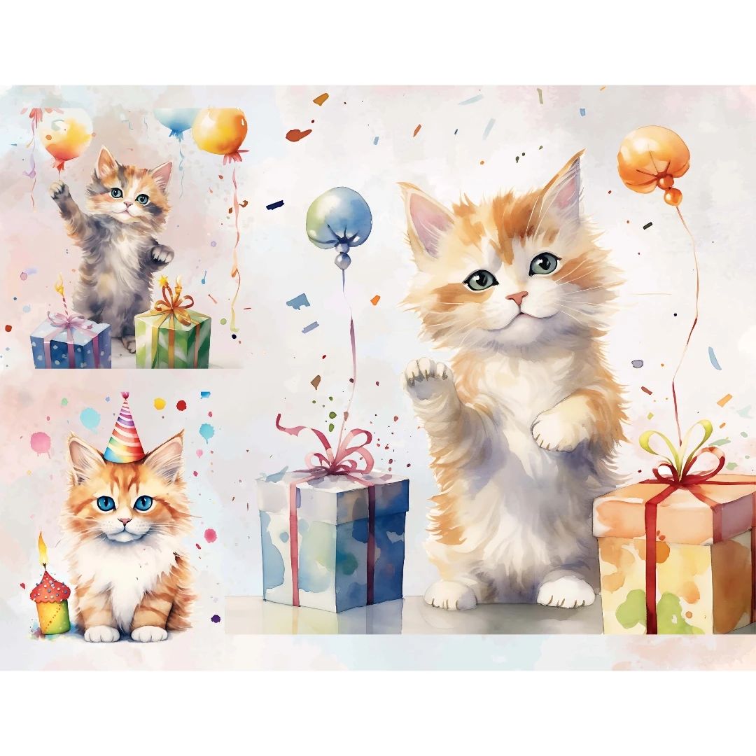 Watercolor Cat Birthday Party Balloon Cake Presents