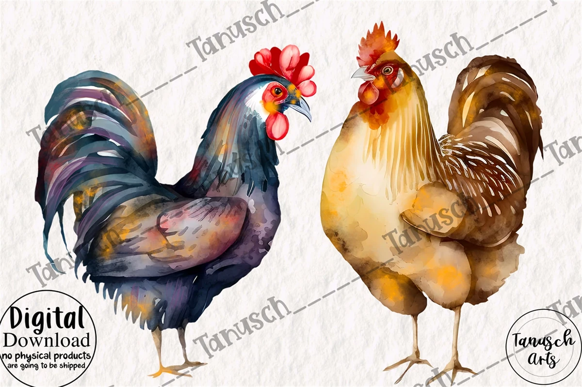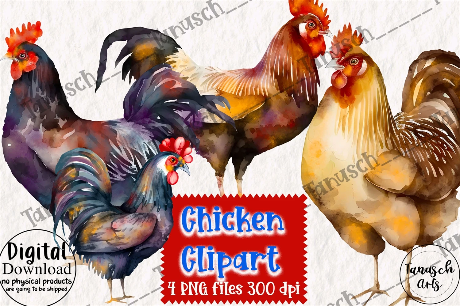 Hand painted cute and modern Watercolor and mixed Media Chicken Clipart Part 3