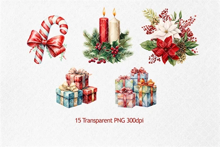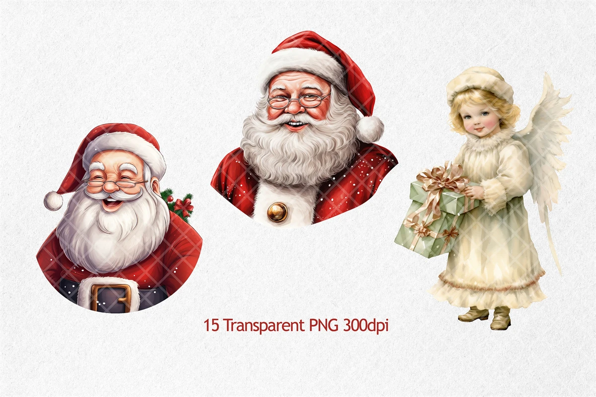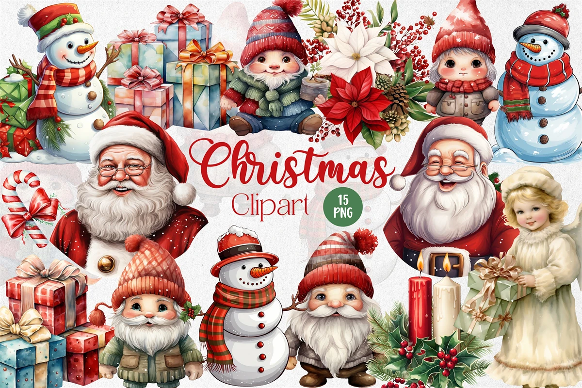 Watercolor Christmas Clipart, Christmas PNG, Watercolor Winter PNG, Christmas Clip art, Santa Claus PNG, Gnome Clipart, Snowman Clipart