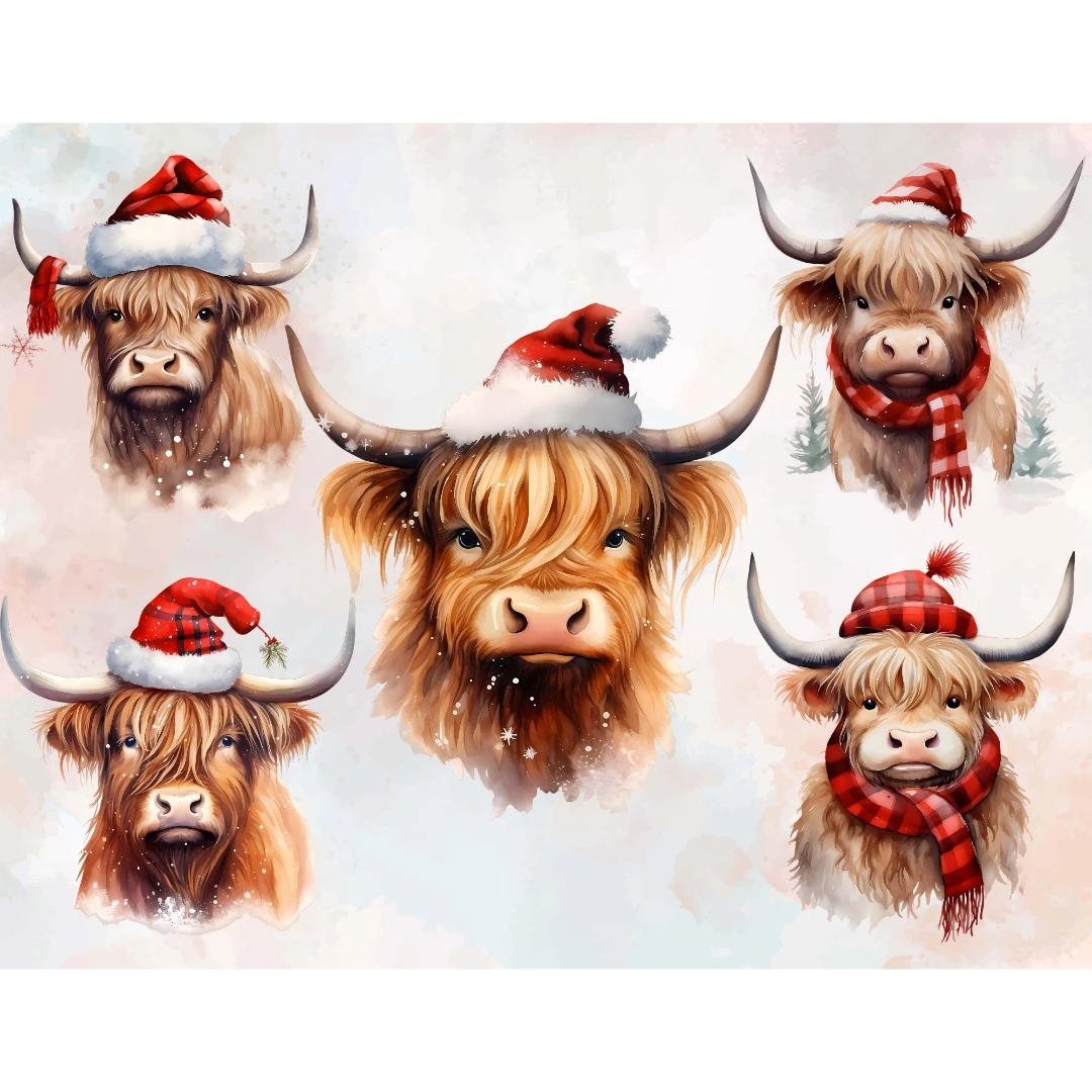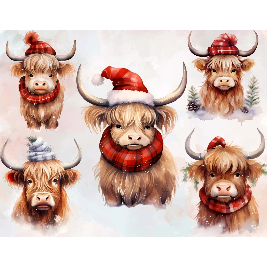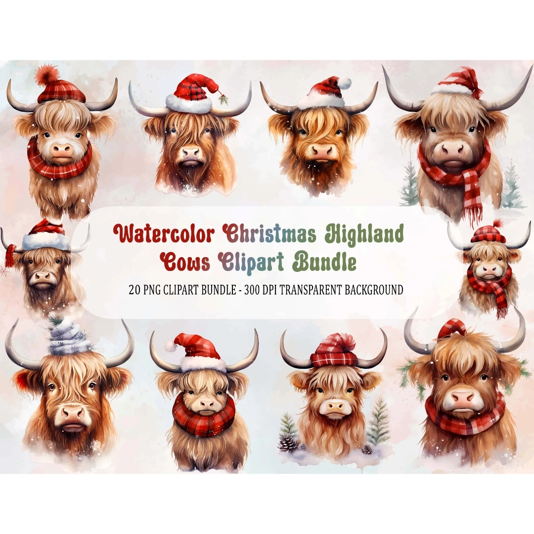 Watercolor Christmas Highland Cows Clipart 20 Cow Art