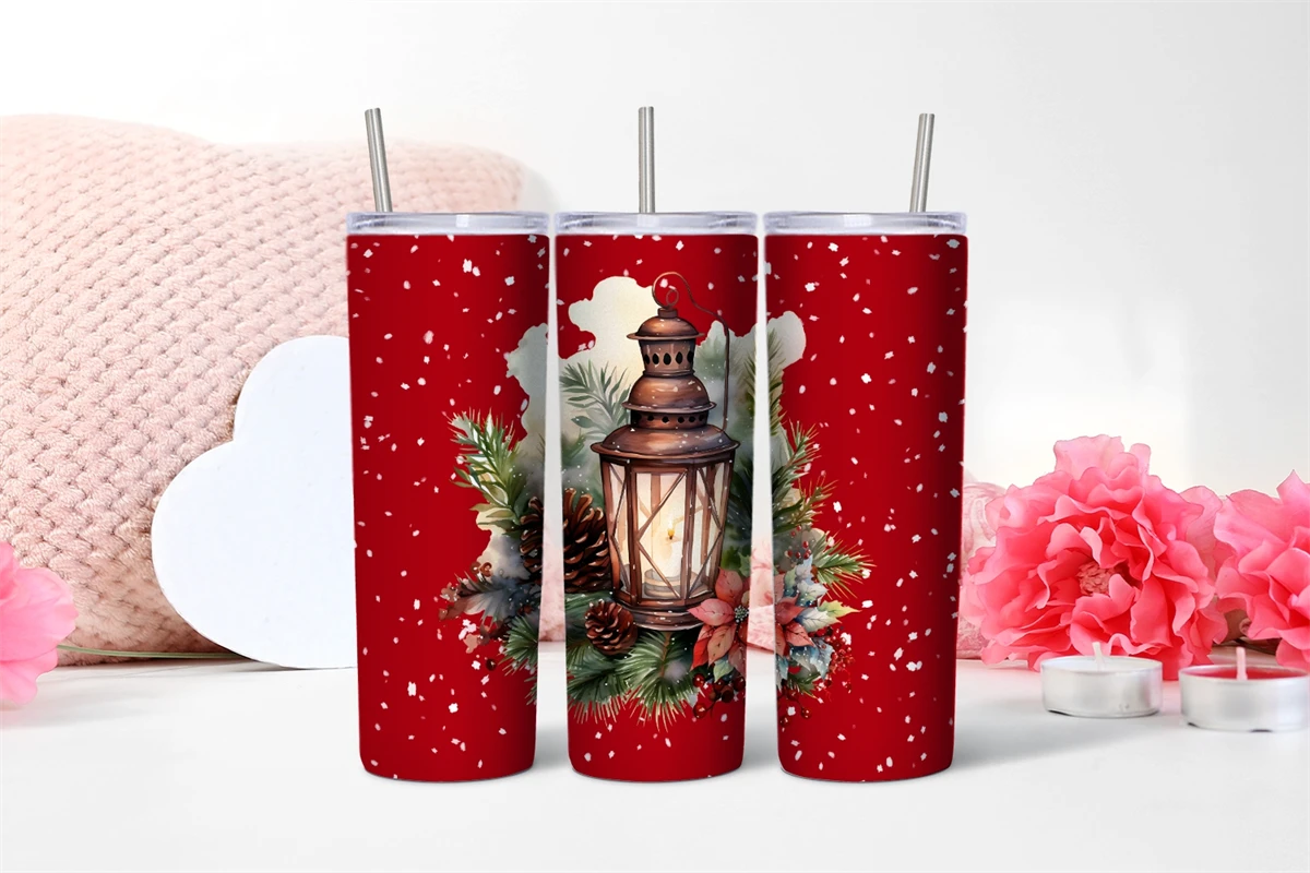 Watercolor Cute Christmas haus Tumbler Wrap 20 oz