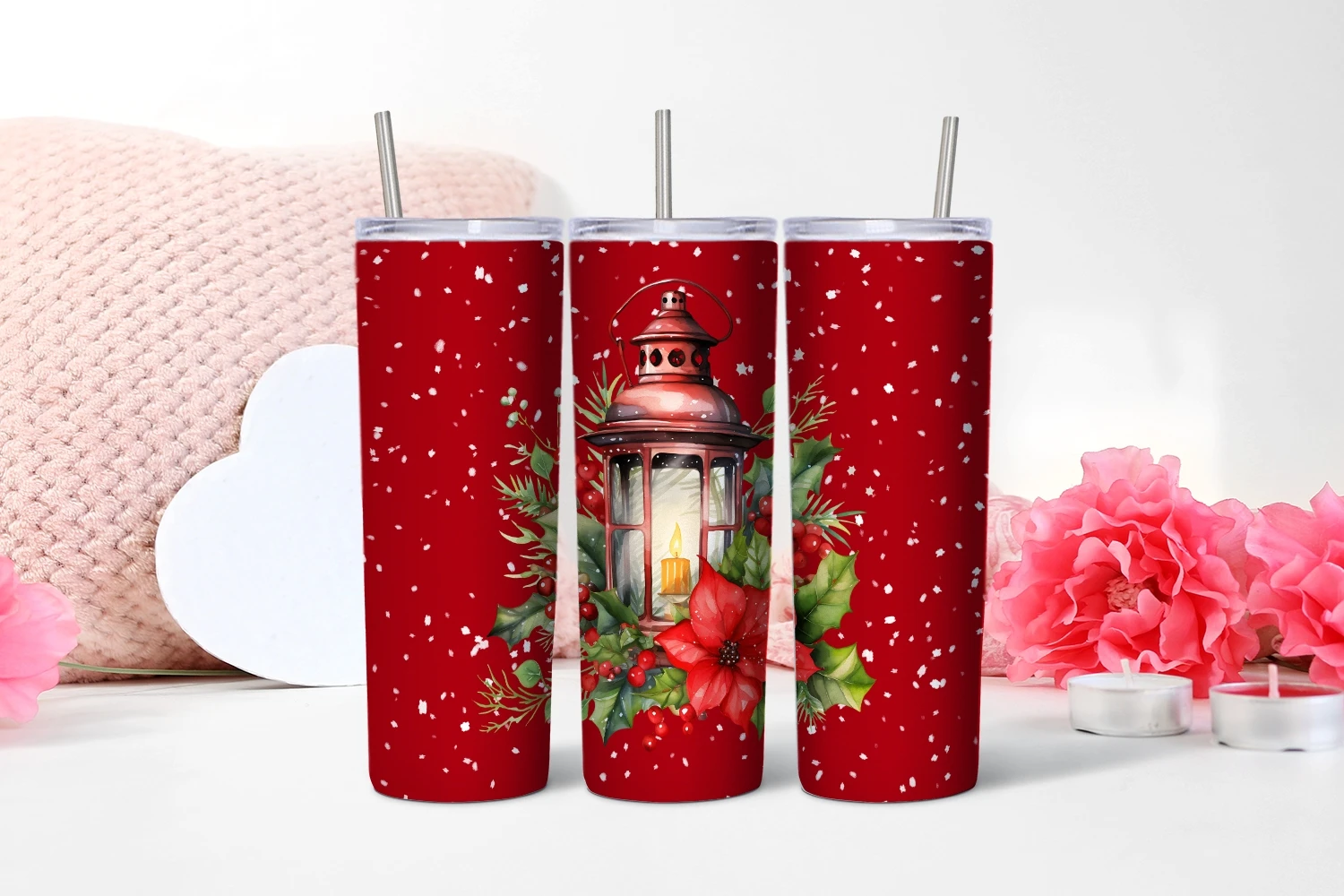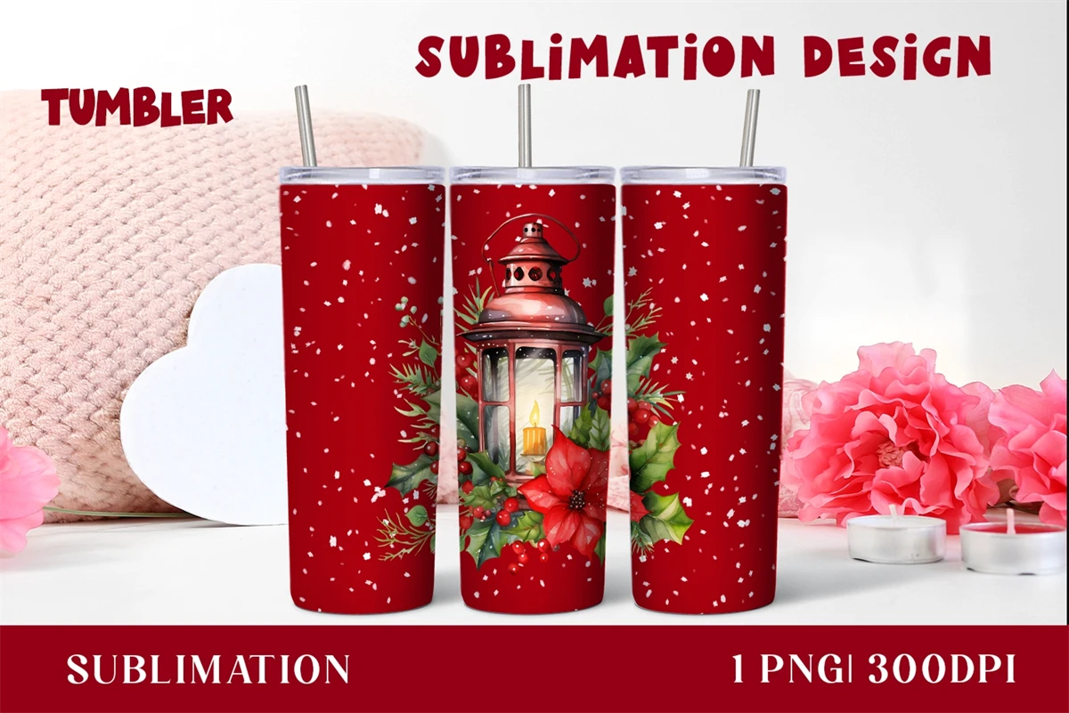 Watercolor Christmas lantern Tumbler sublimation