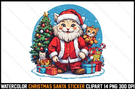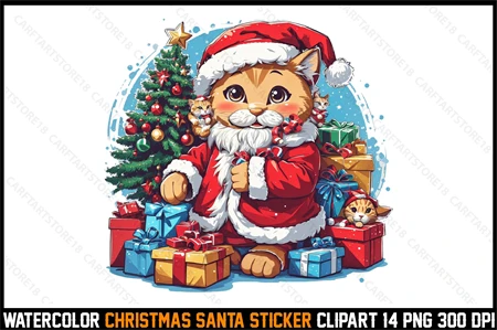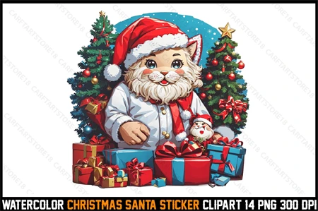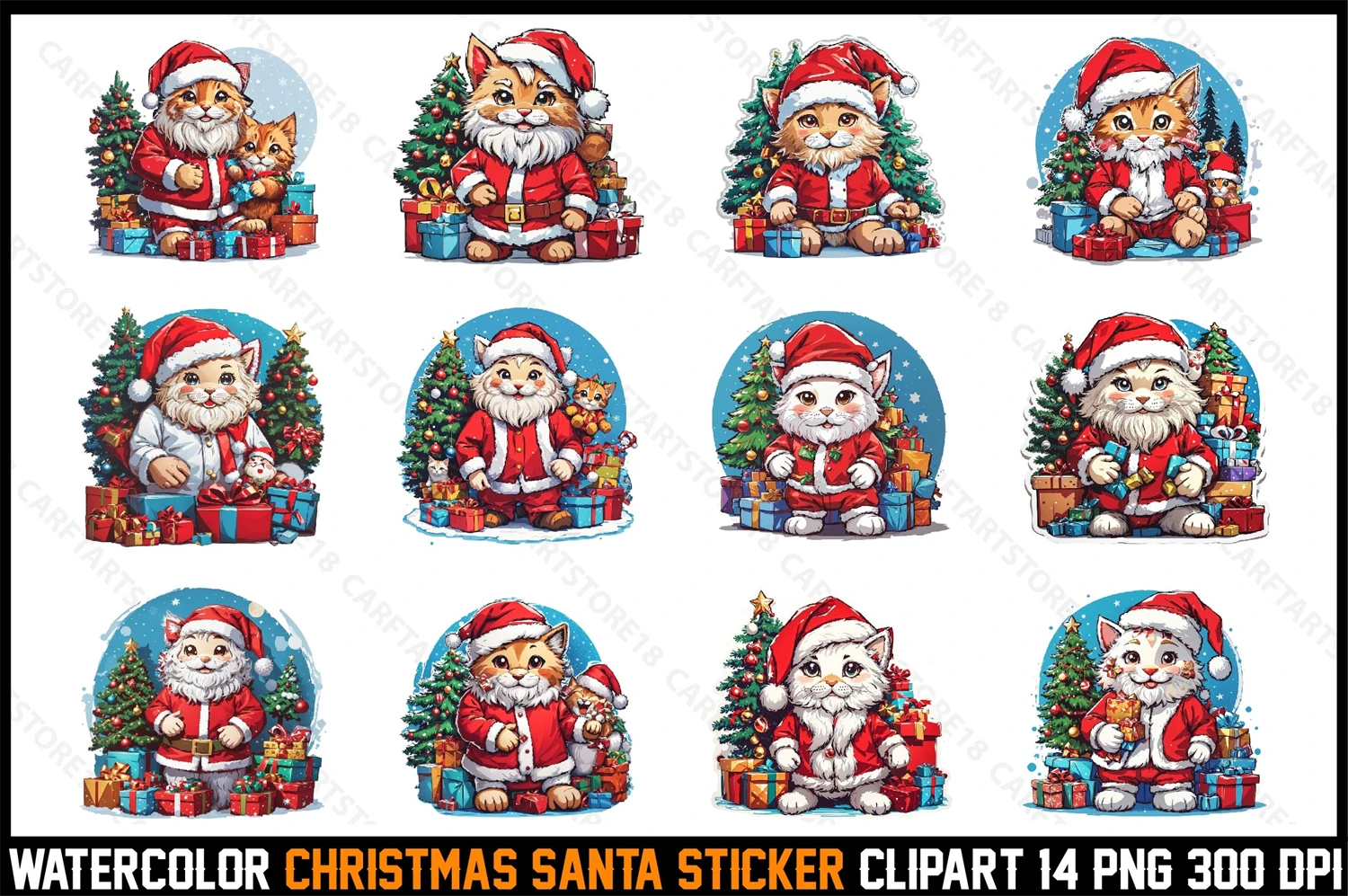 Watercolor Christmas Santa Sticker Clipart T-Shirt Design Bundle digital download cutting file for Circuit And Silhouette