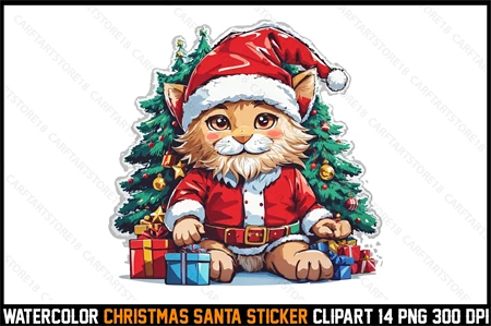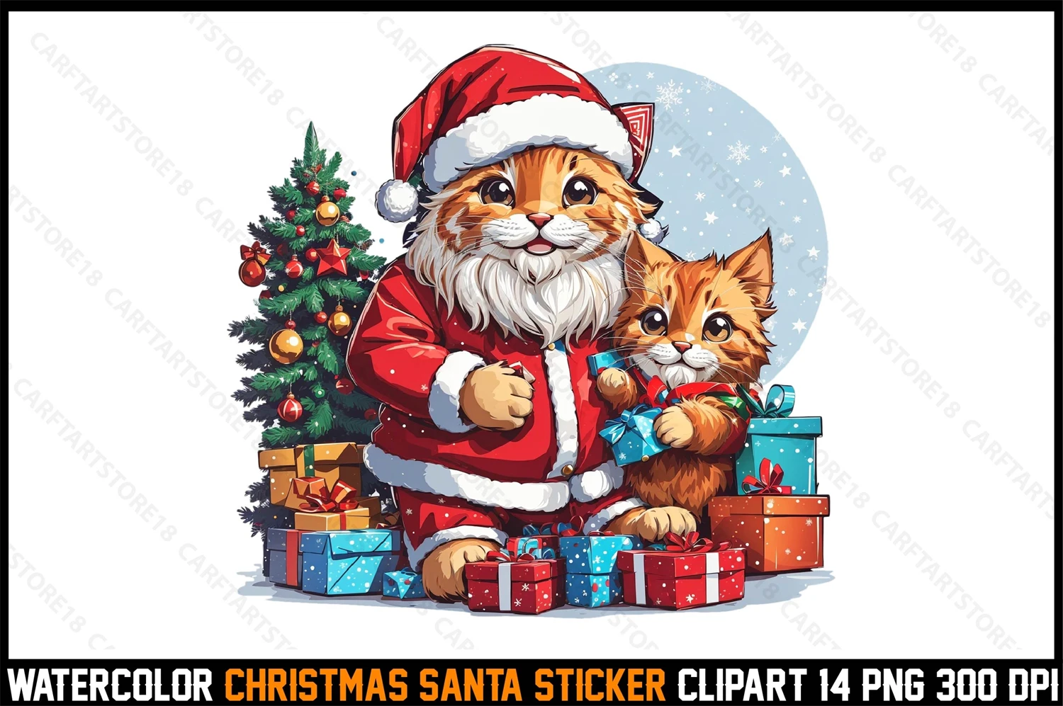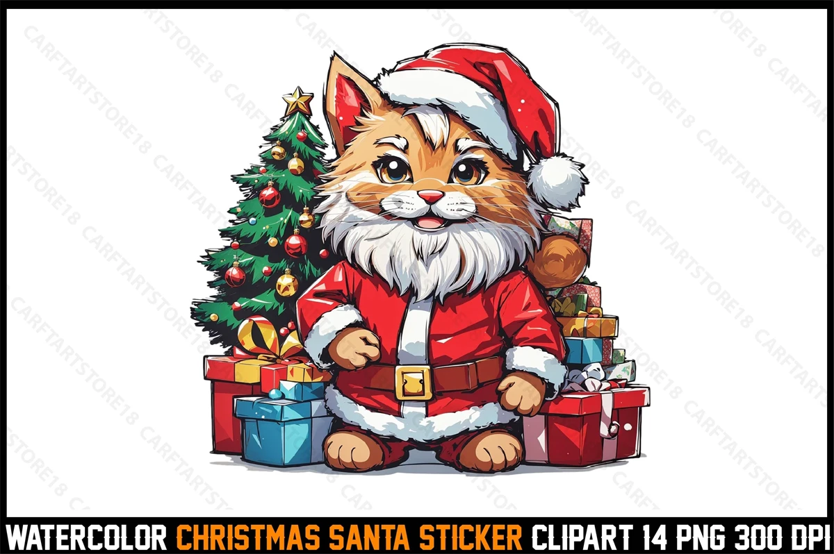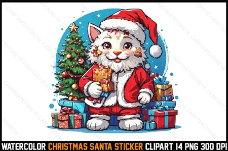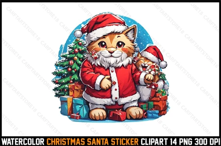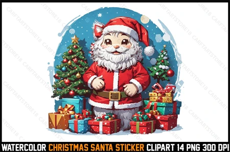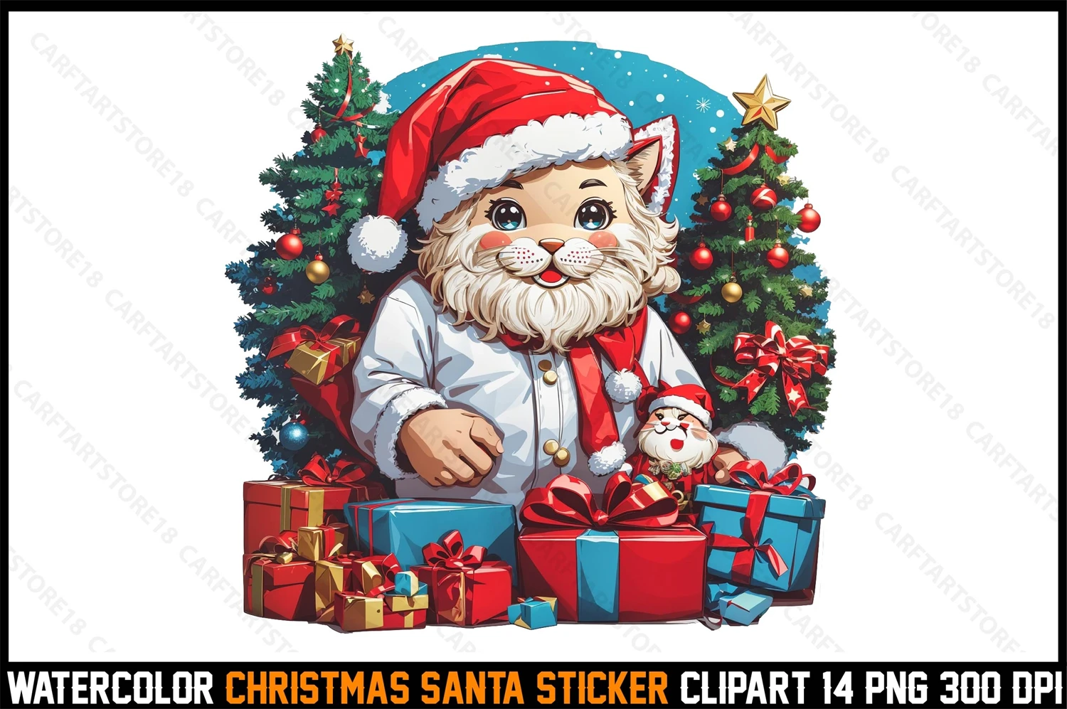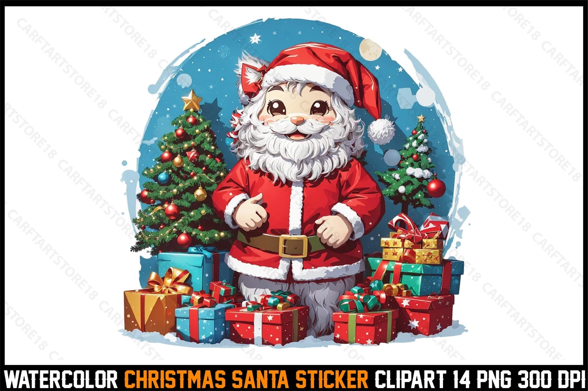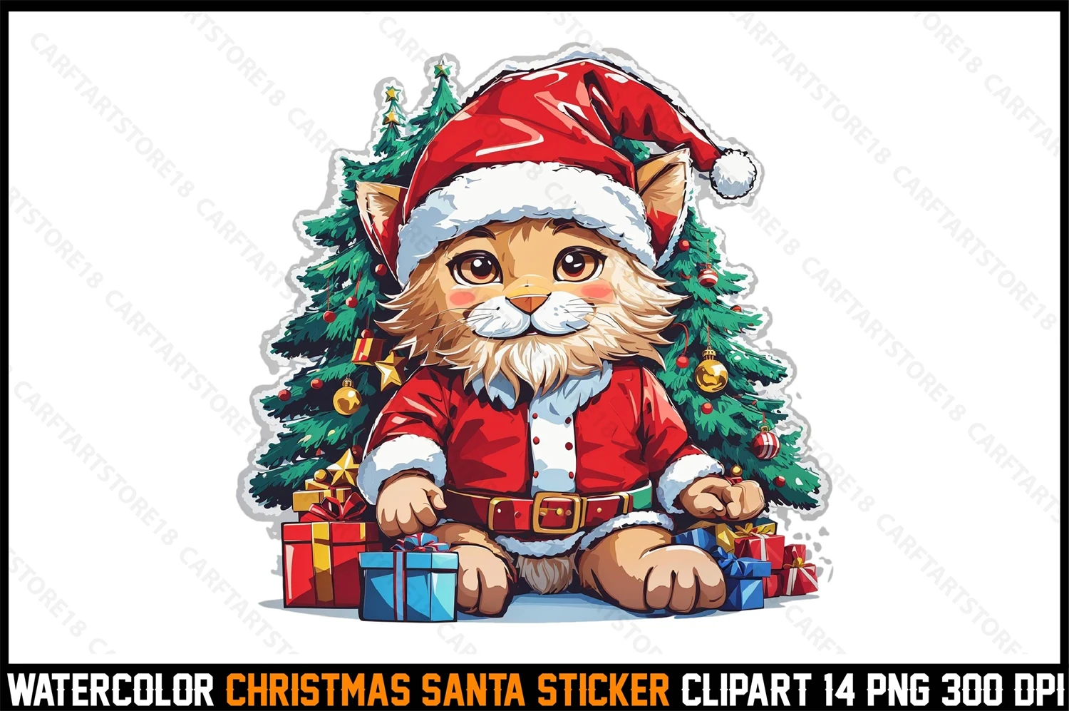 Watercolor Christmas Santa Sticker Clipart Clipart