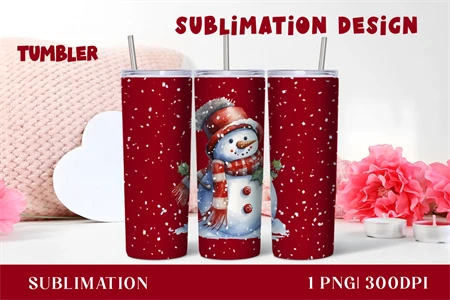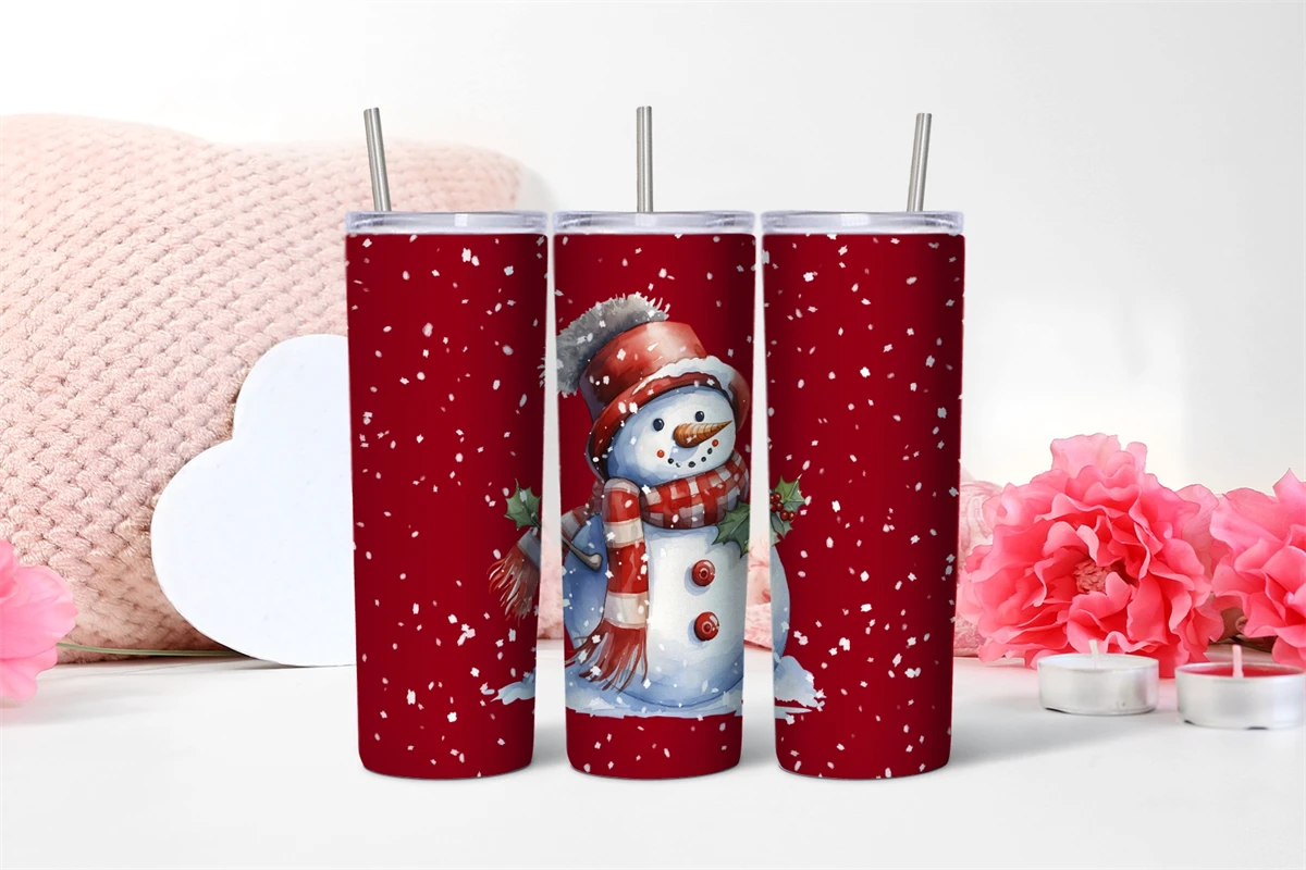 Watercolor Christmas snowman Tumbler sublimation 20 oz