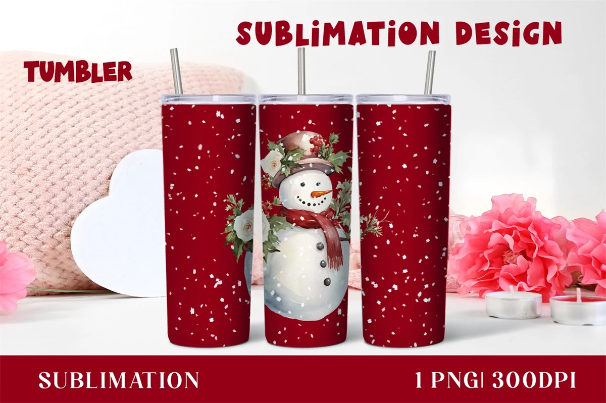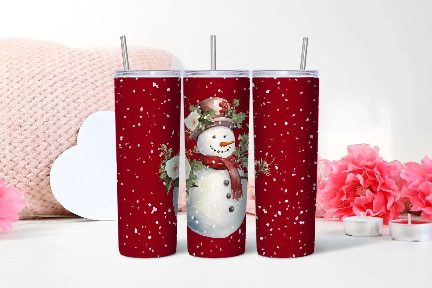 Watercolor Christmas snowman Tumbler sublimation 20 oz