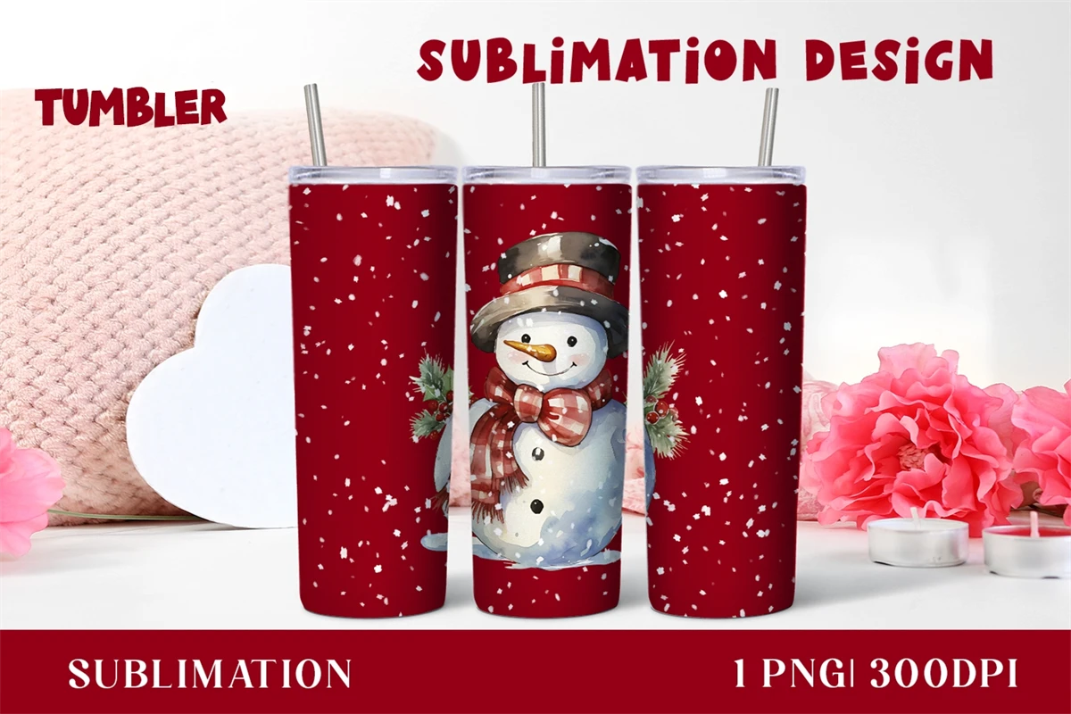 Watercolor Christmas snowman Tumbler sublimation 20 oz