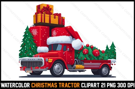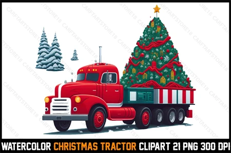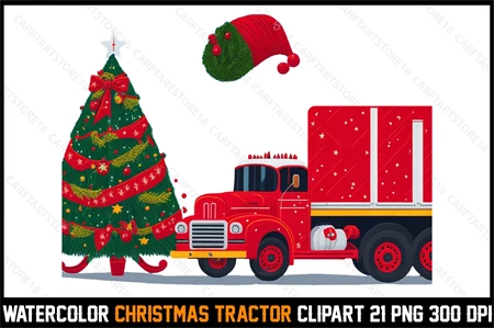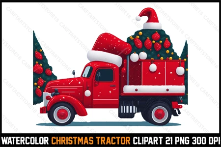 Watercolor Christmas Tracktor Clipart