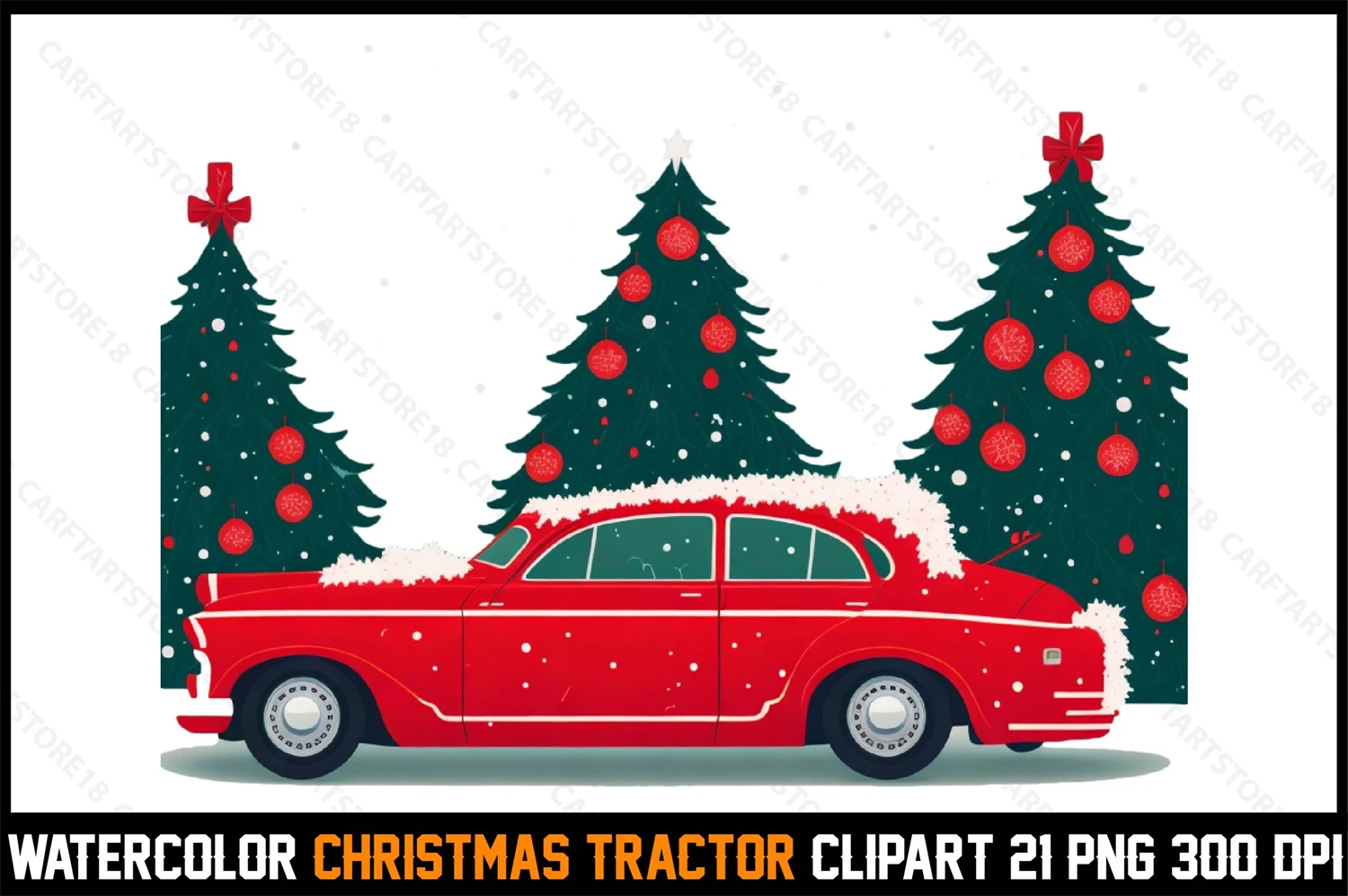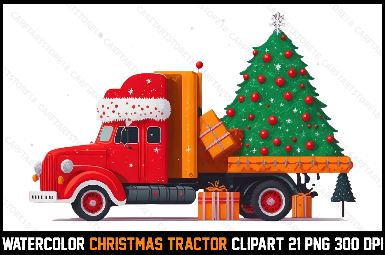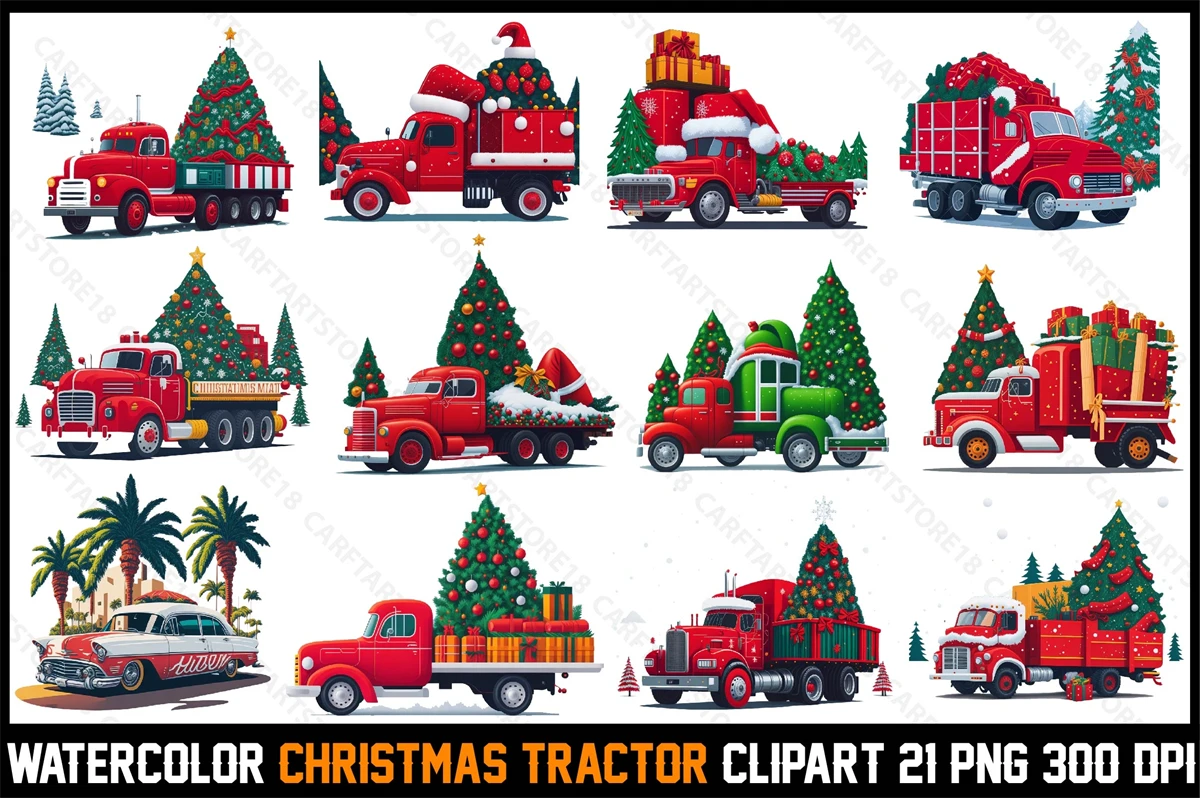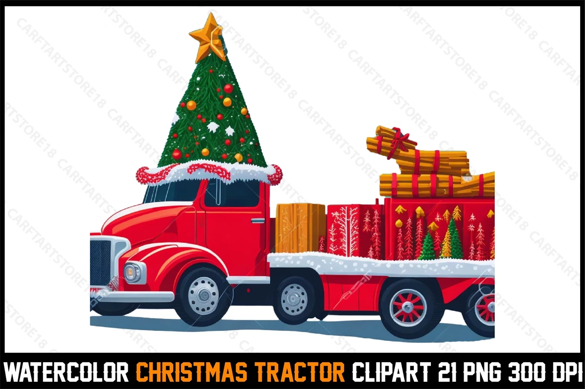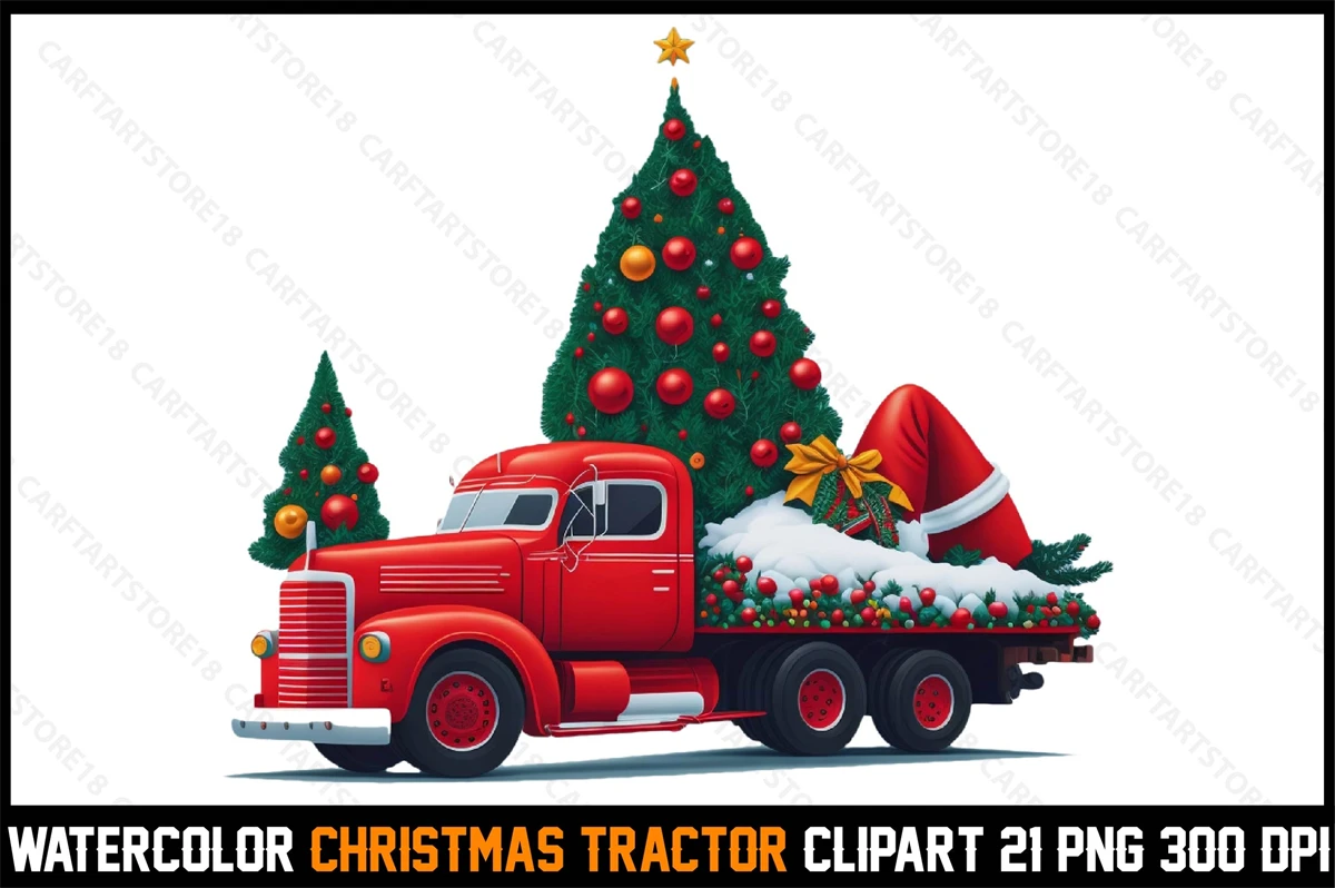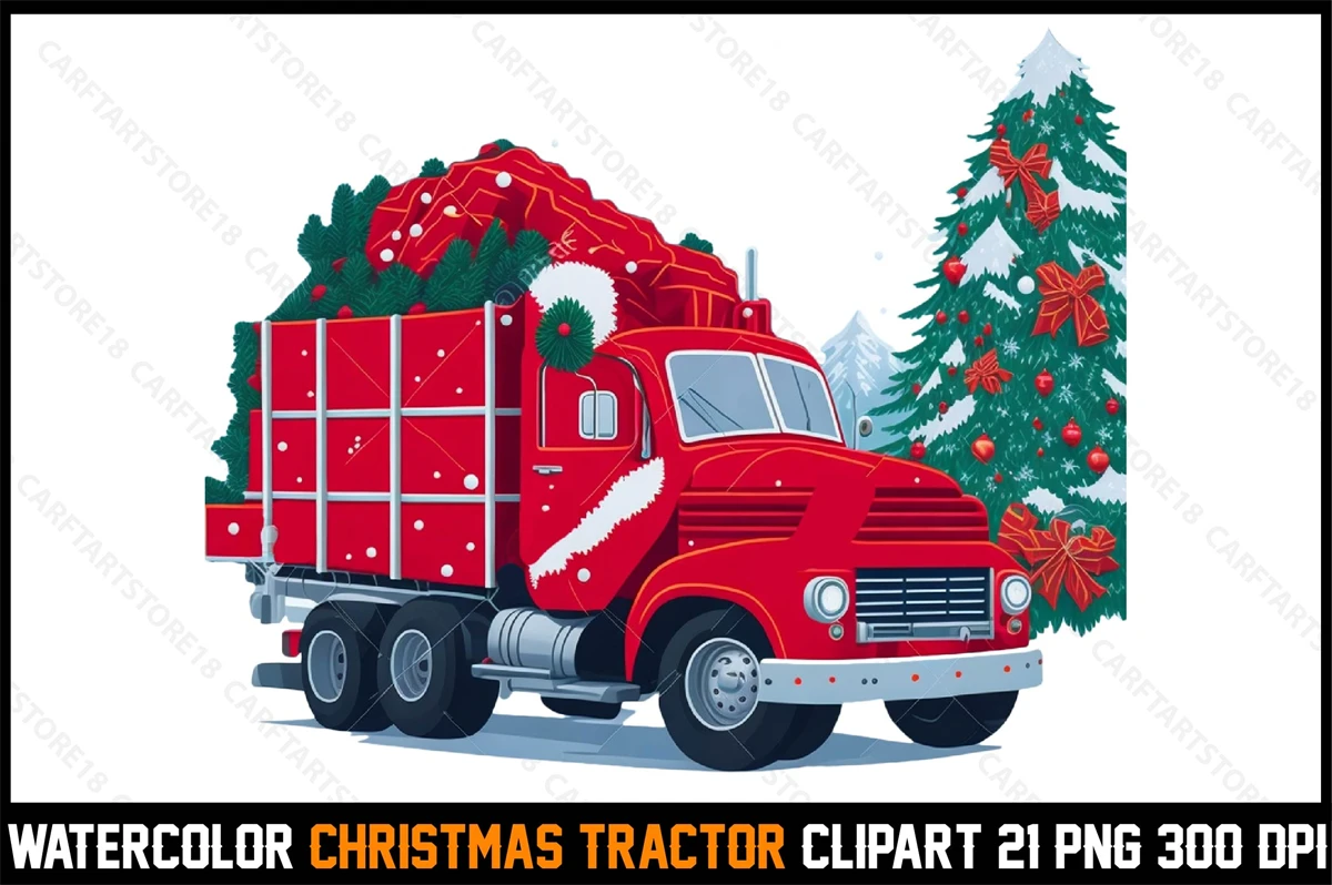 Watercolor Christmas Tracktor Clipart T-Shirt Design Bundle digital download cutting file for Cricut And Silhouette