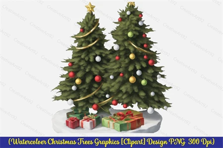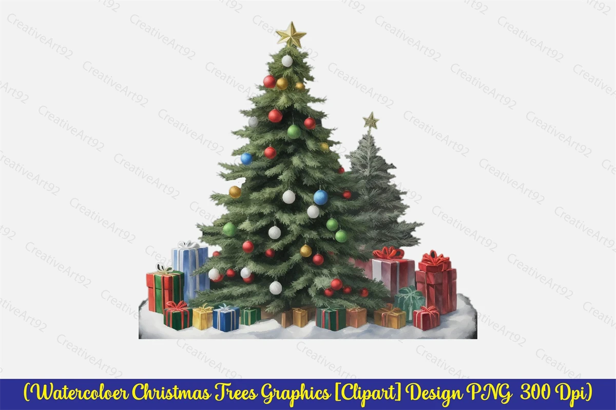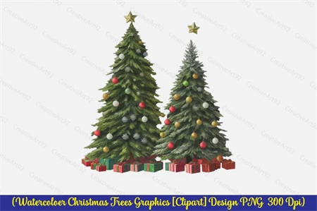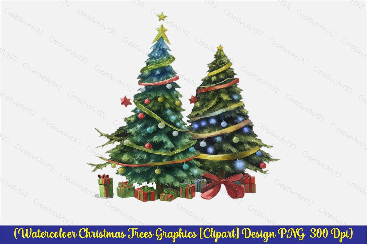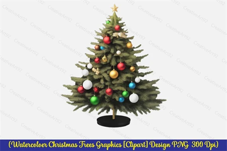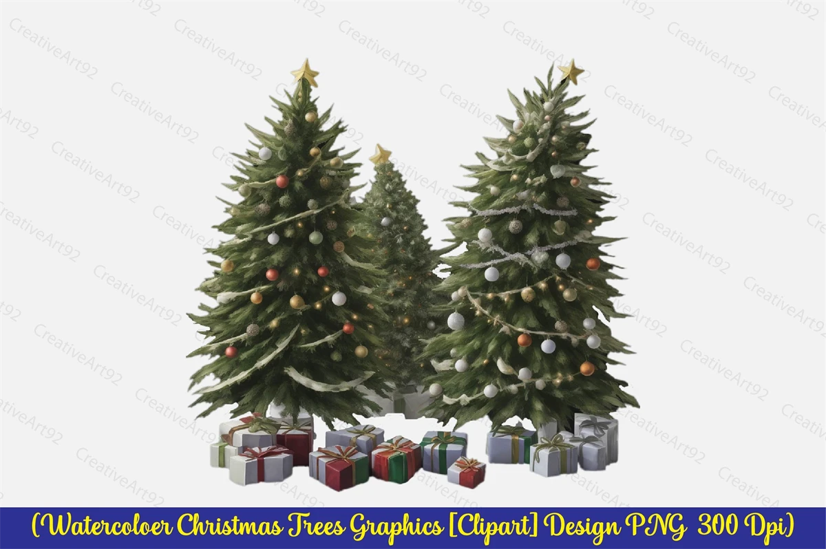 Watercolor, Christmas Tree clipart, Graphics Design Bundle digital download cutting file for Cricut And Silhouette