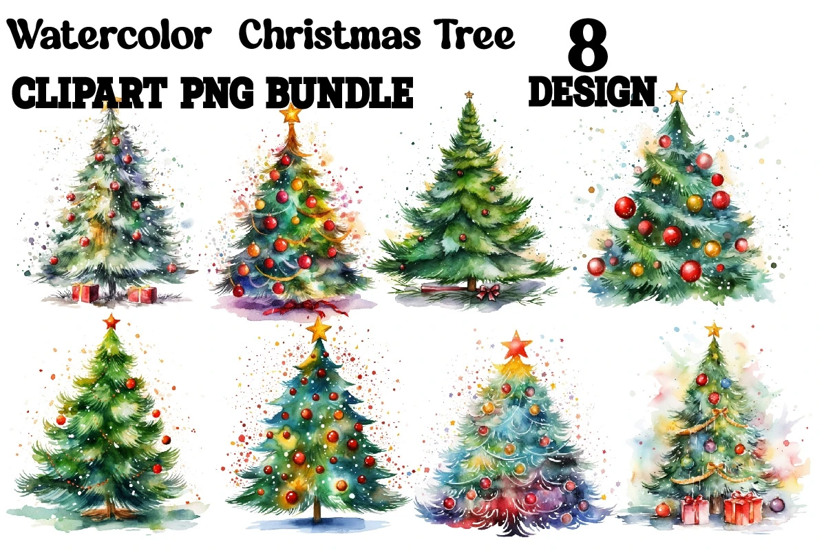 Watercolor Christmas Tree Clipart Bundle