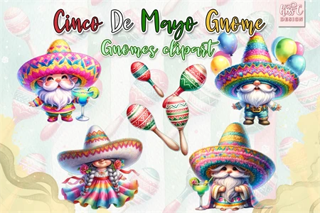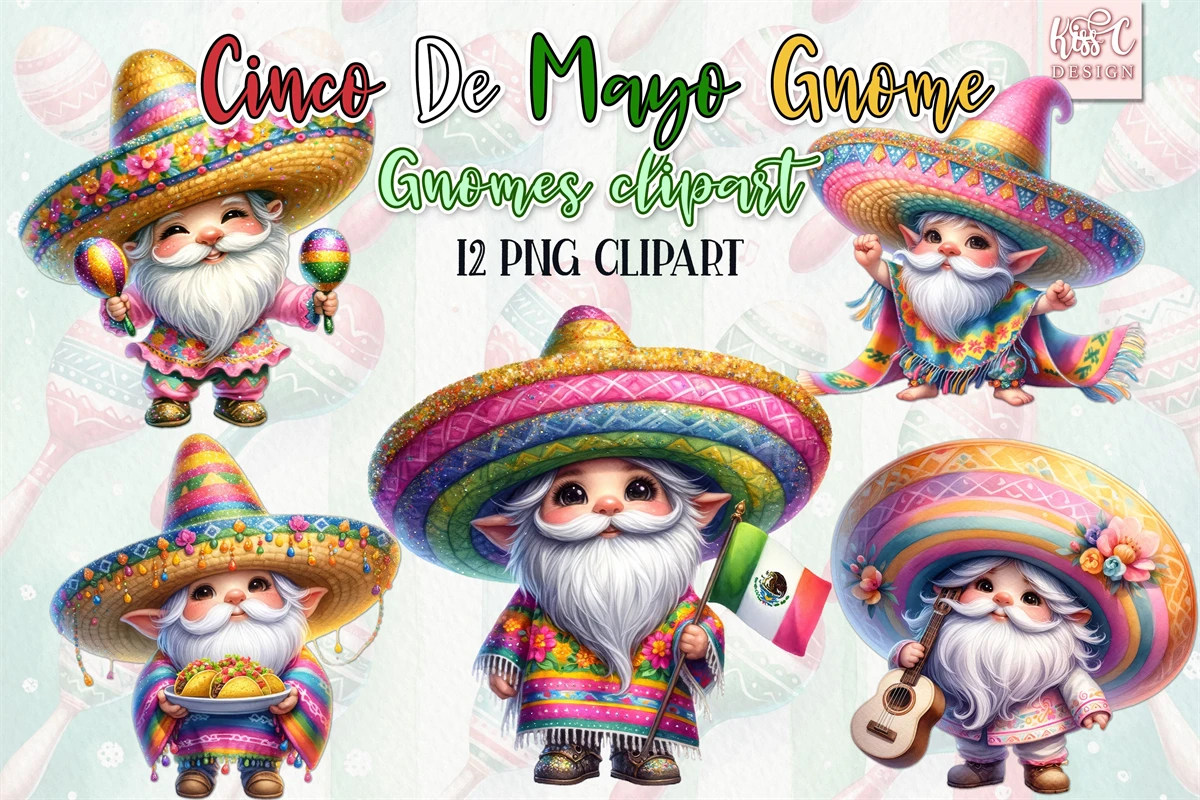 Cinco De Mayo Gnomes PNG Sublimation Clipart.