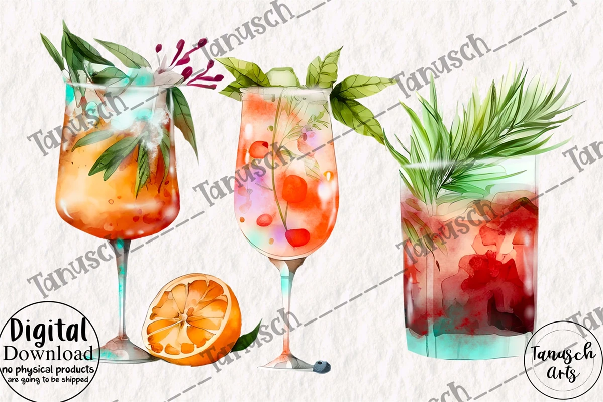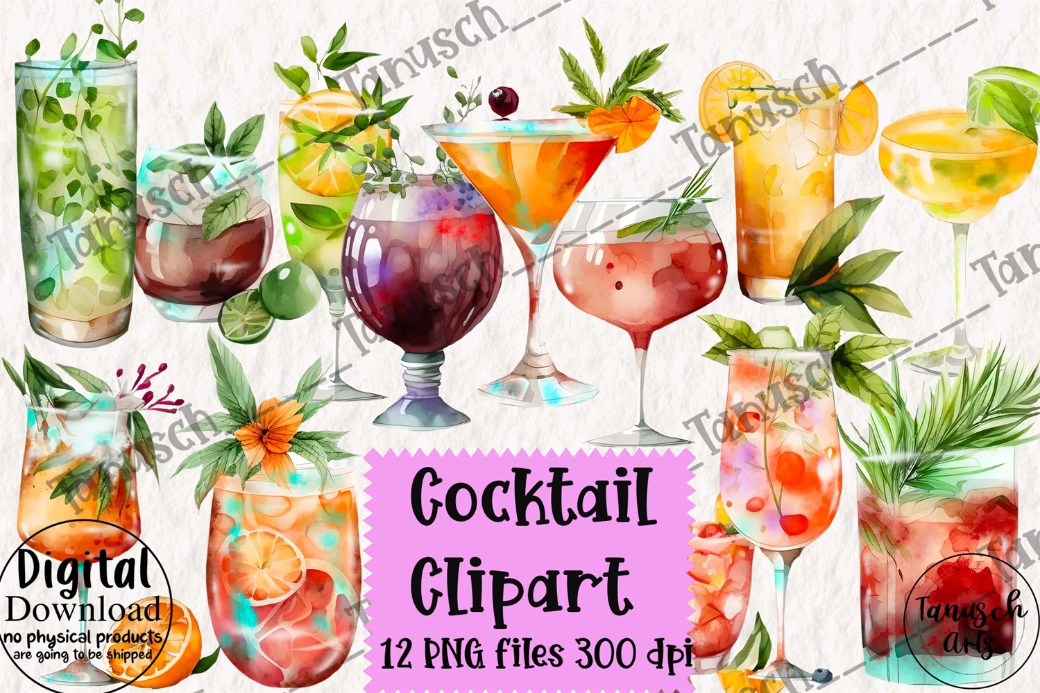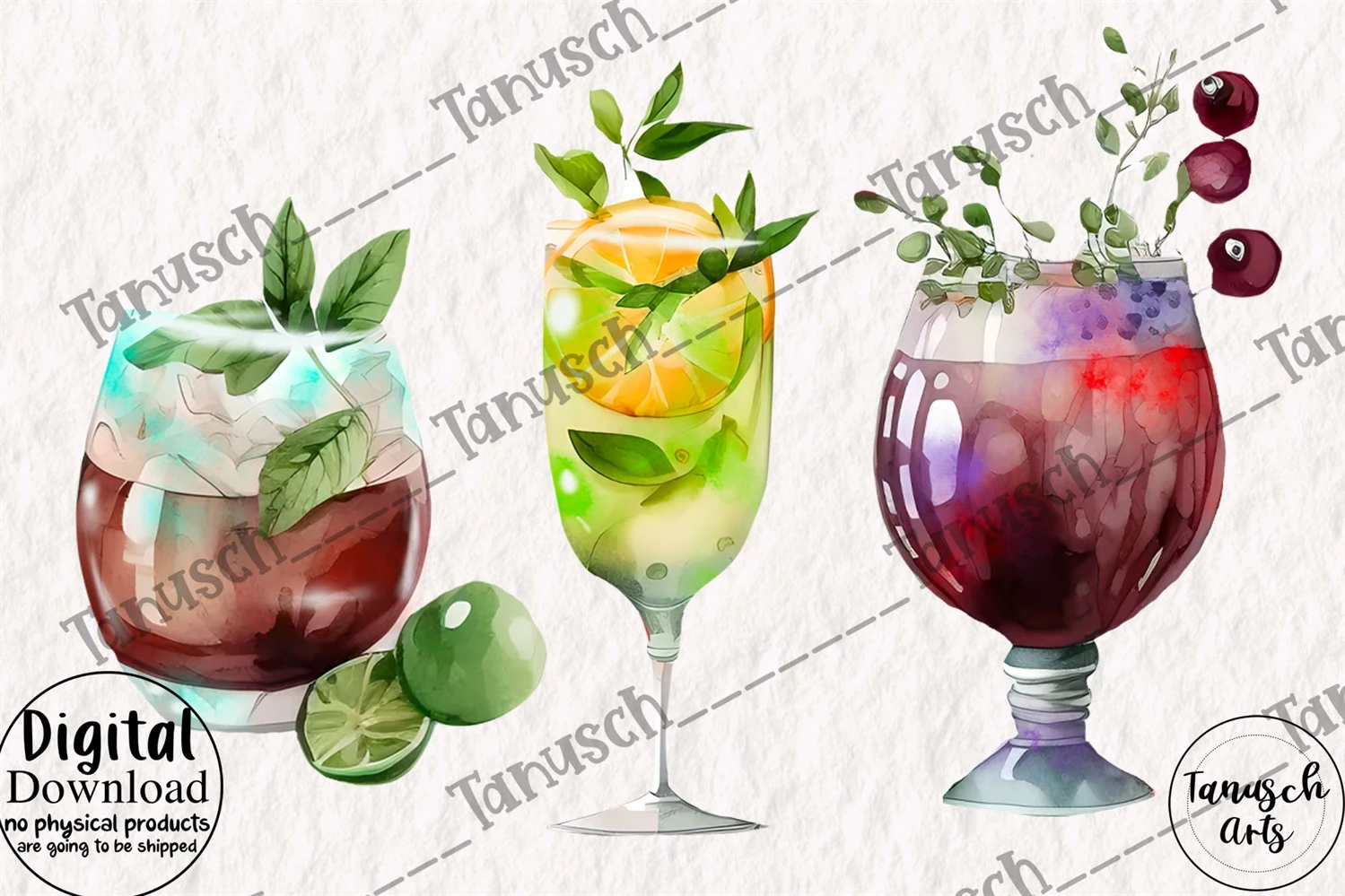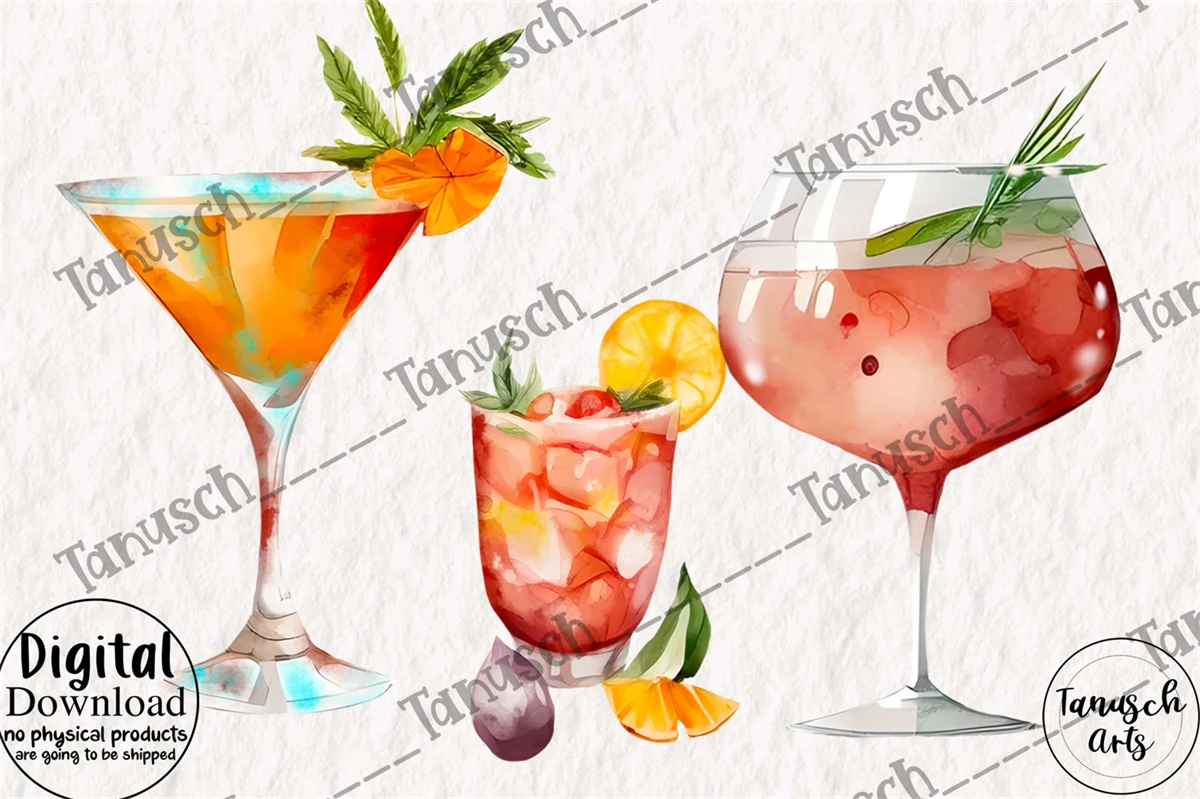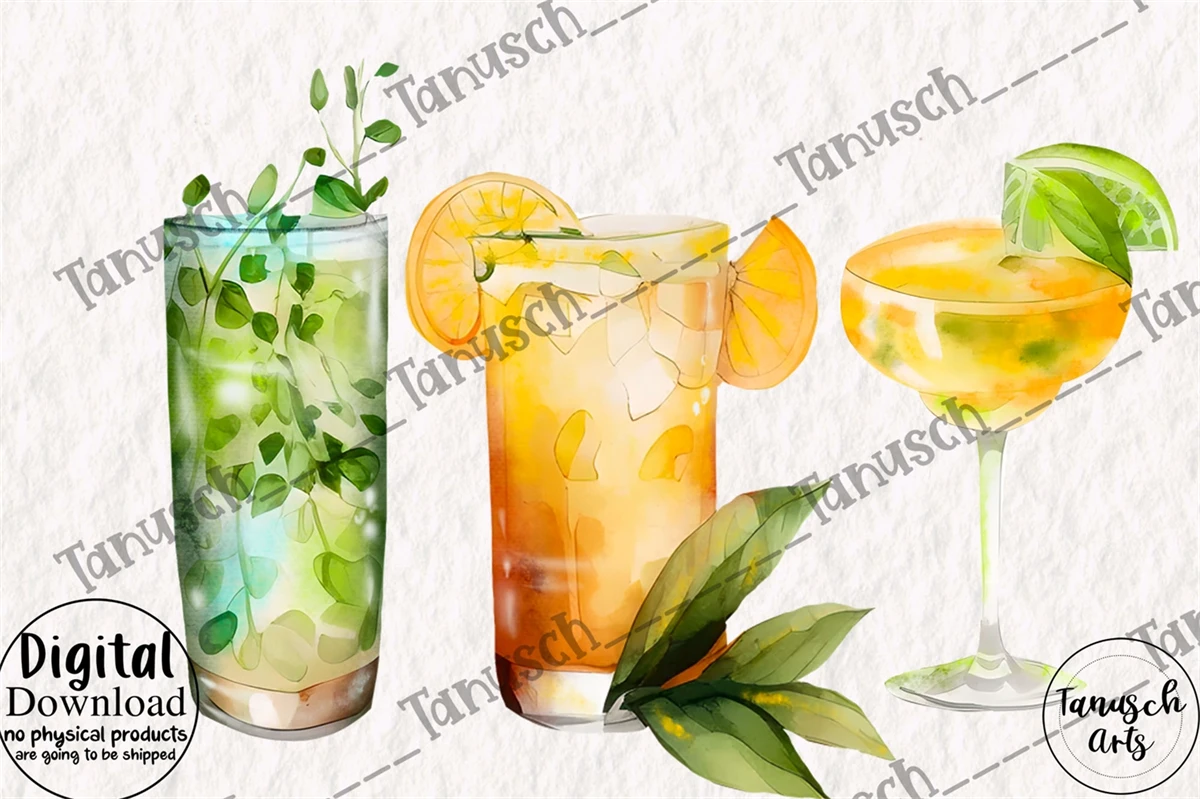 Handpainted cute and modern Watercolor and mixed Media Cocktail Clipart Part 5