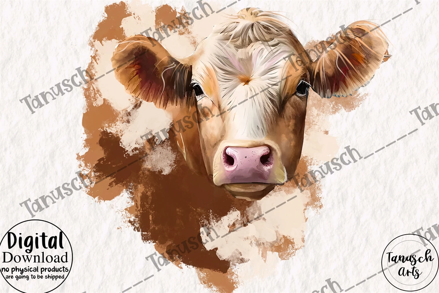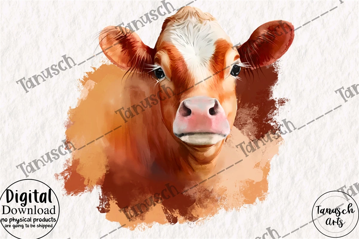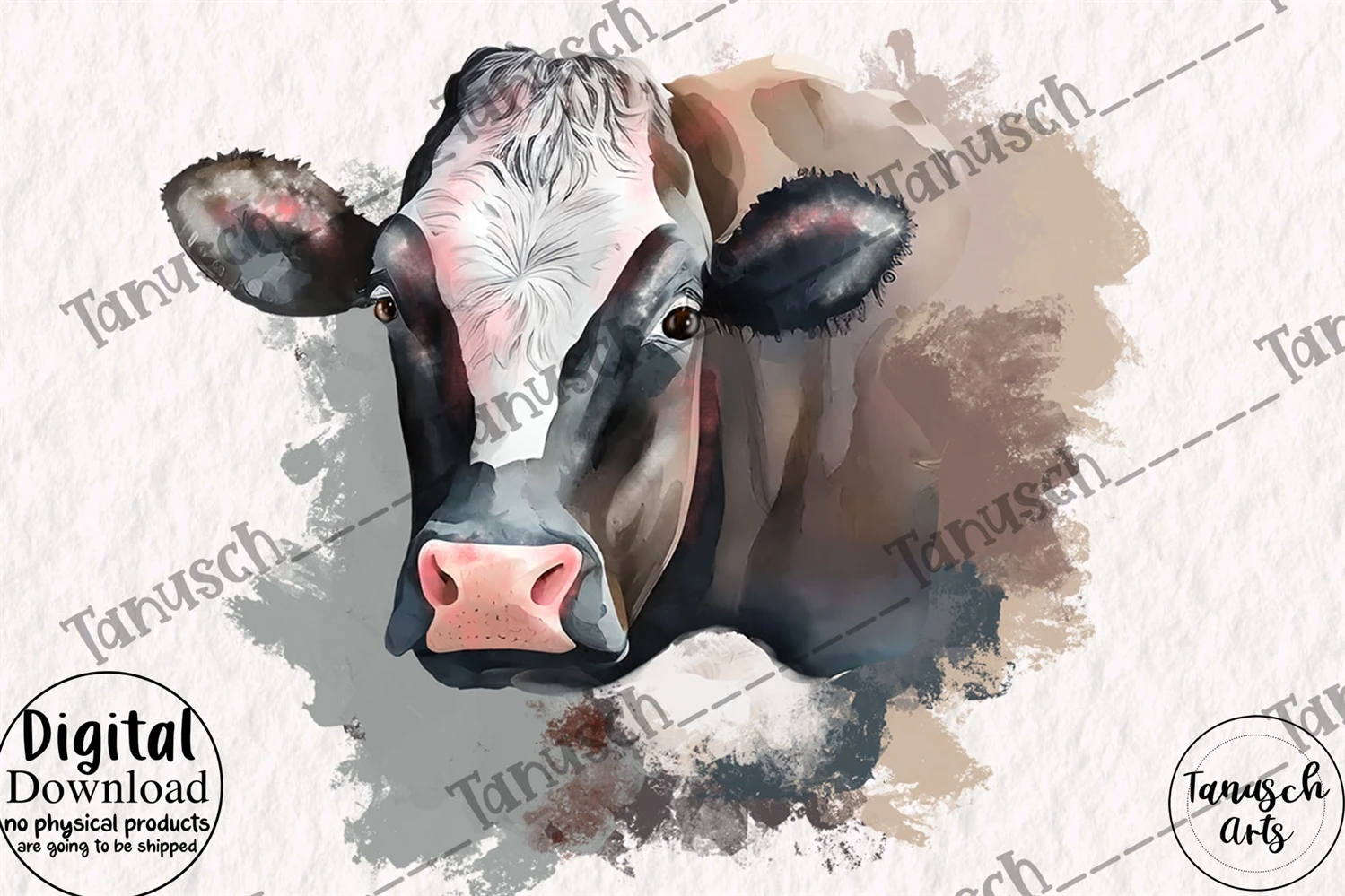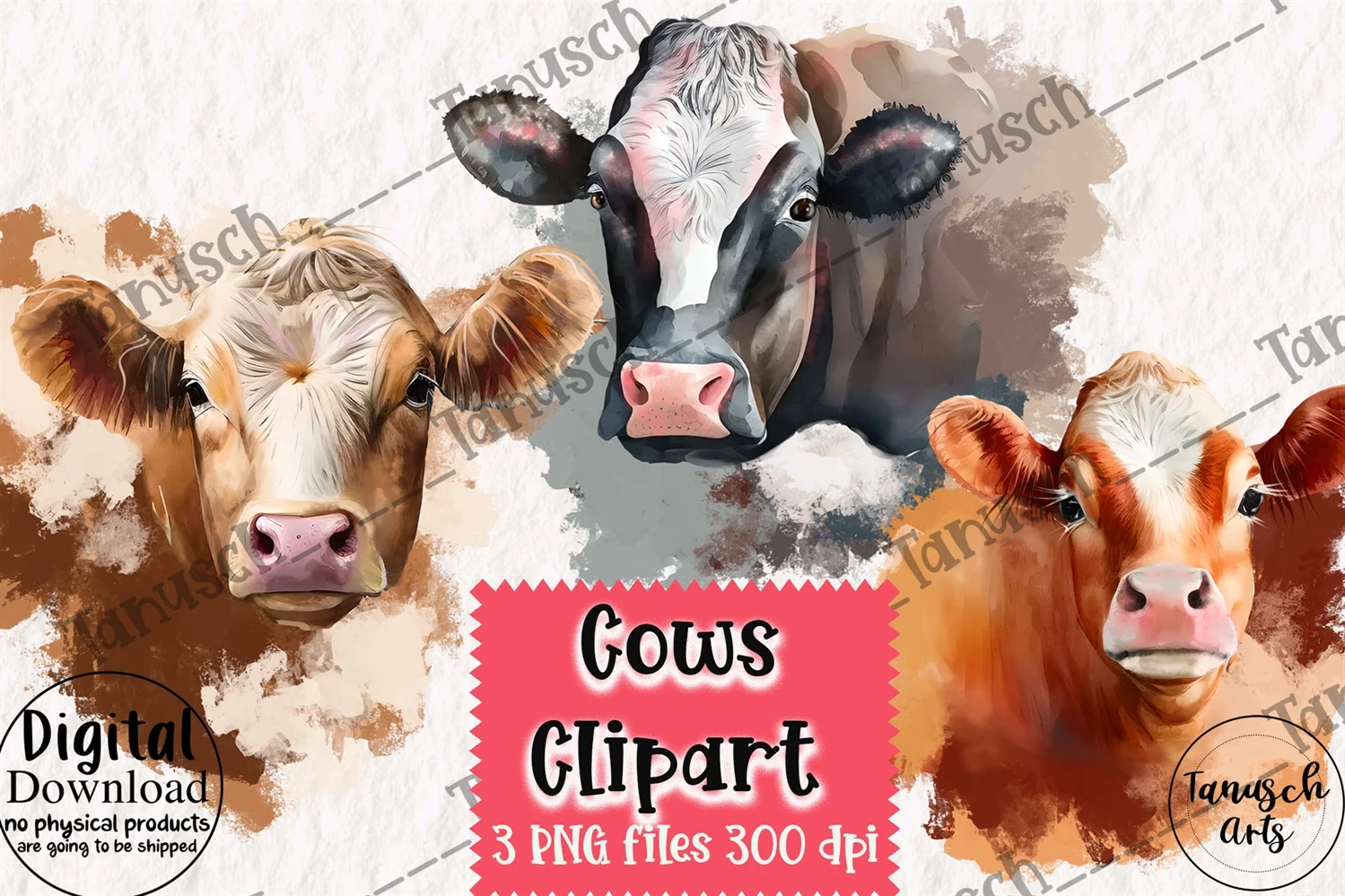Hand painted cute and modern Watercolor and mixed Media Cow Clipart Part 1