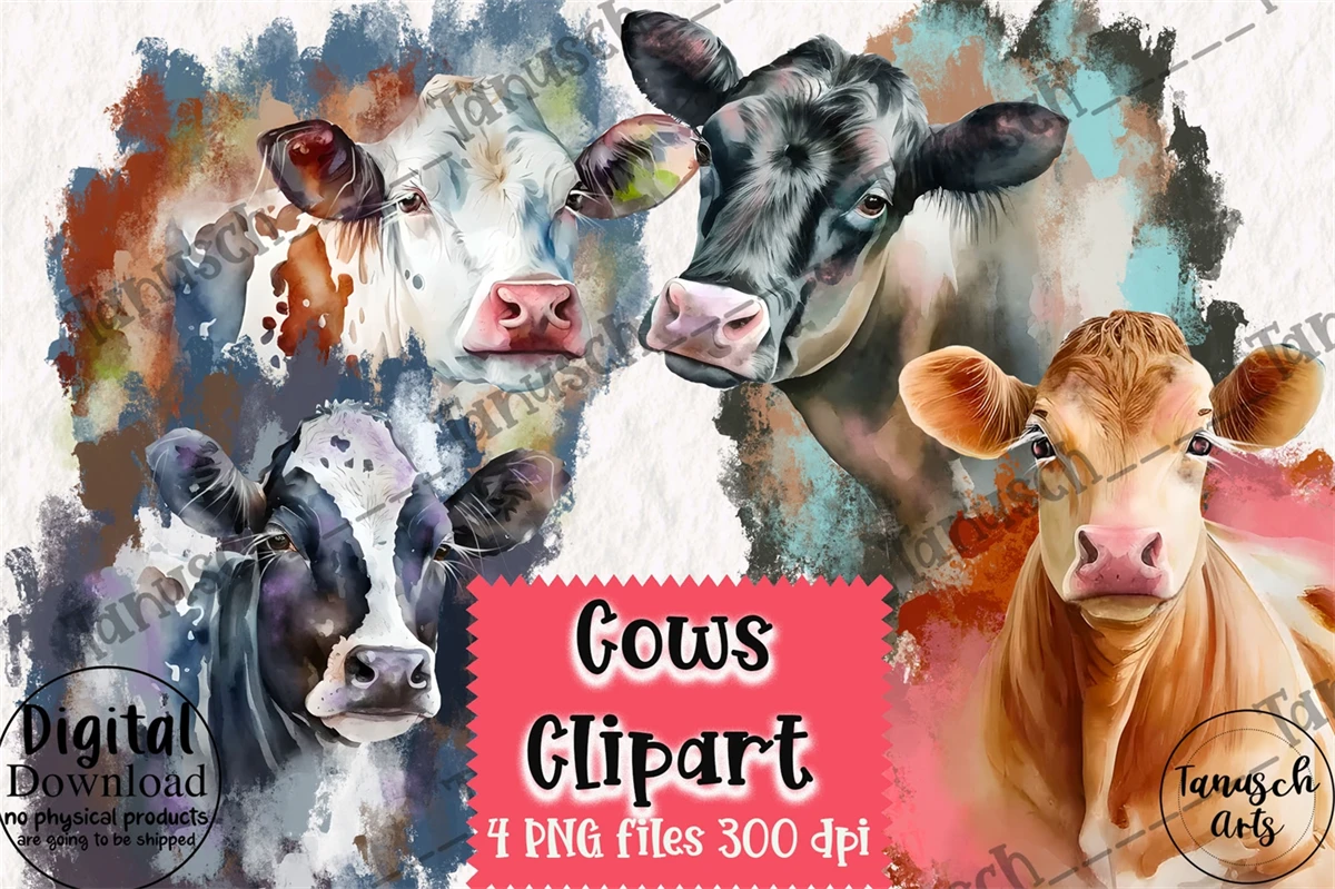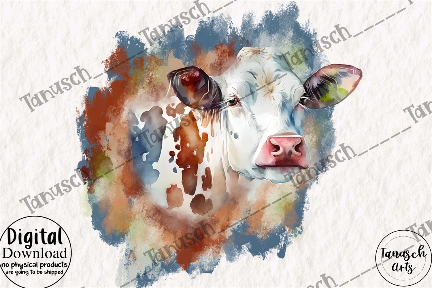 Hand painted cute and modern Watercolor and mixed Media Cow Clipart Part 3