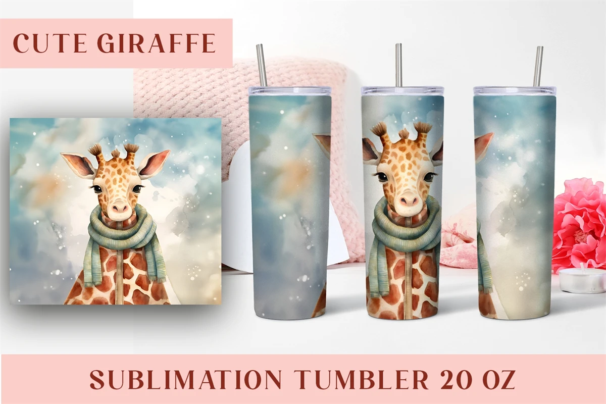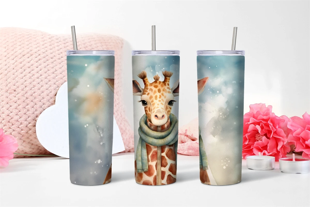 Watercolor Cute Giraffe Tumbler Wrap 20 oz
