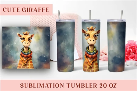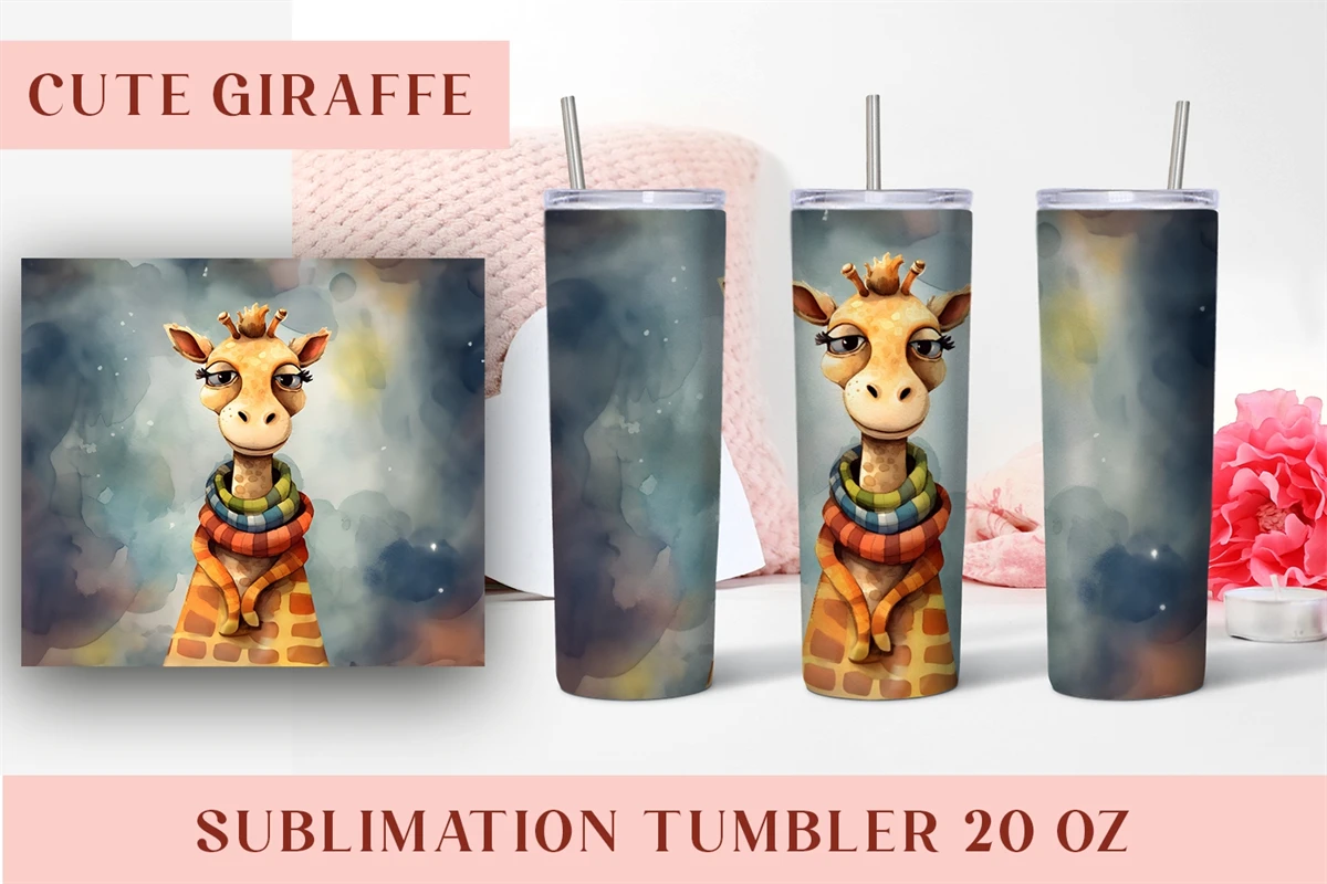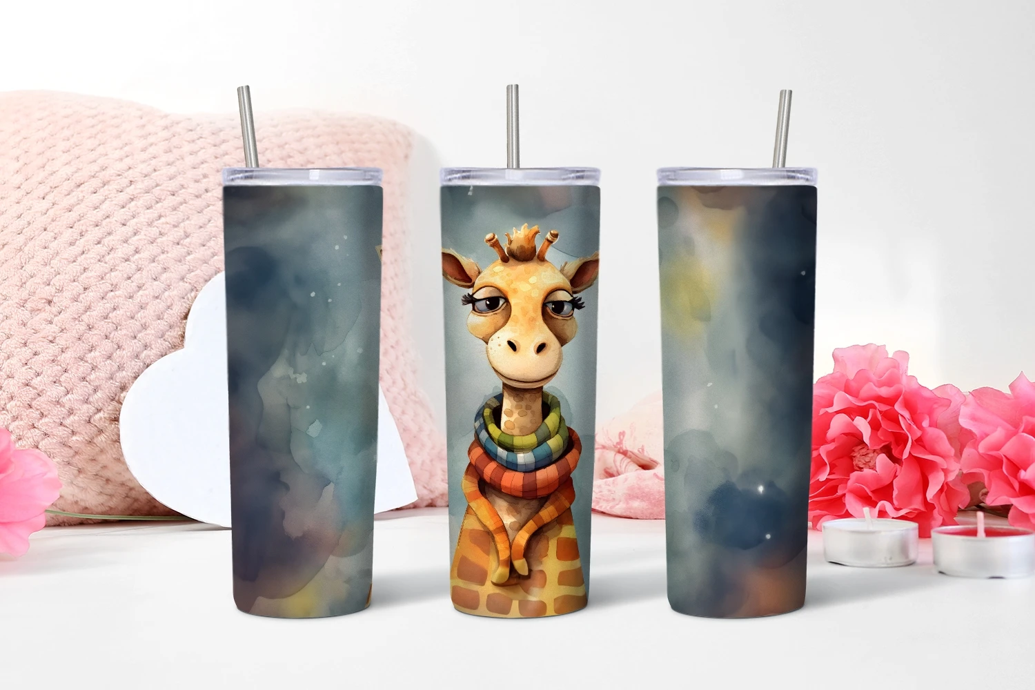 Watercolor Cute Giraffe Tumbler Wrap 20 oz