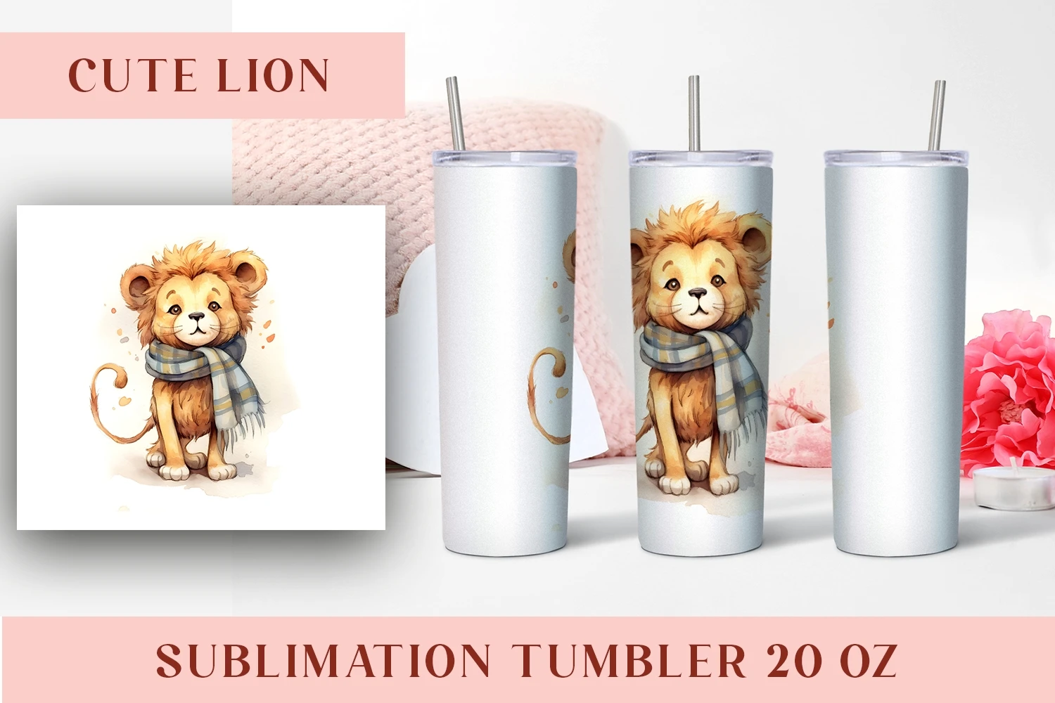 Watercolor Cute lion Tumbler Wrap 20 oz
