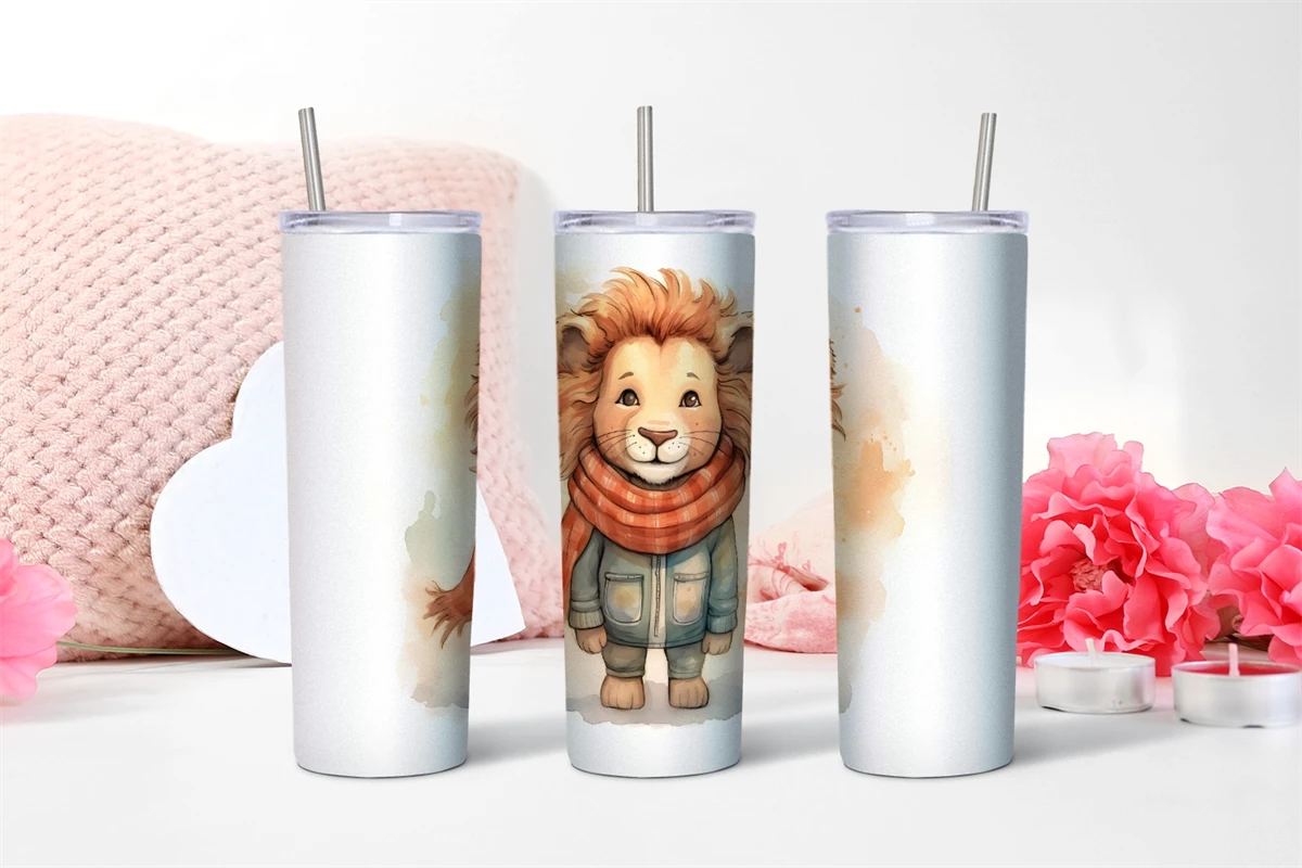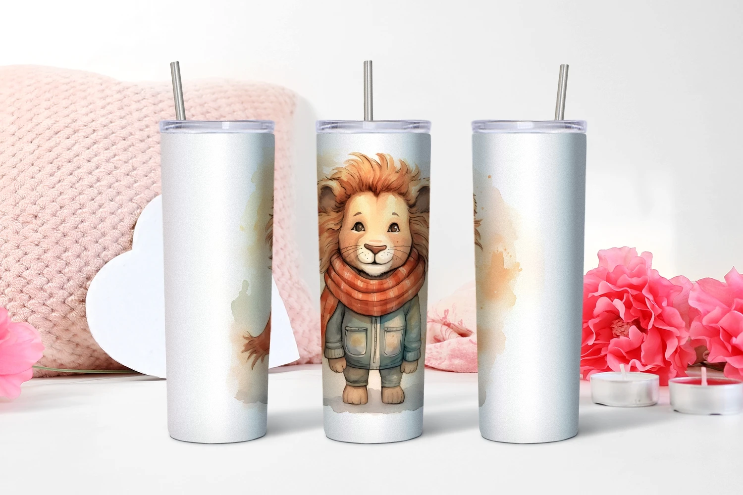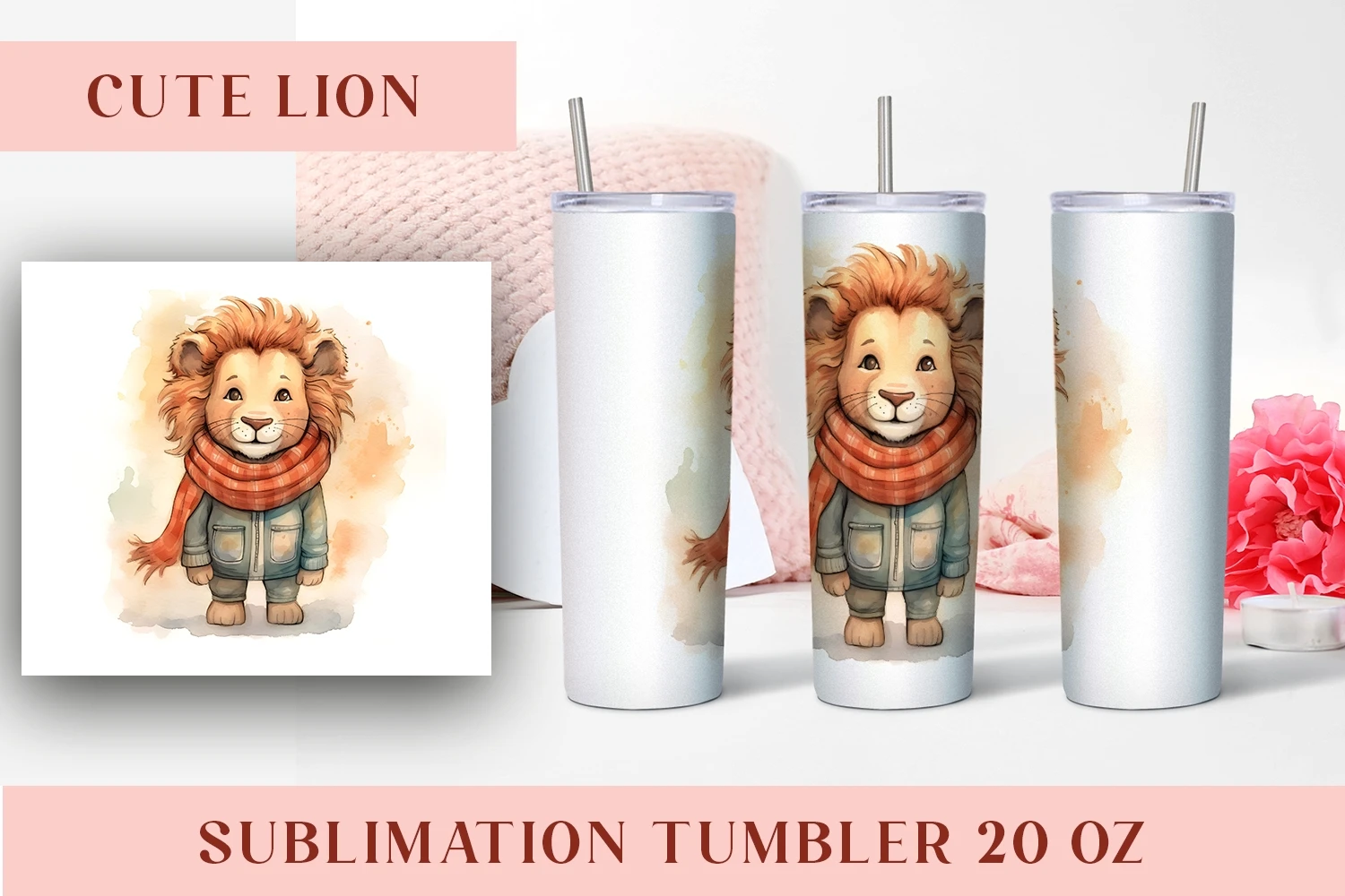 Watercolor Cute lion Tumbler Wrap 20 oz