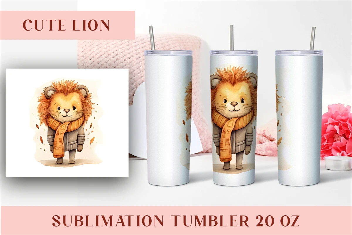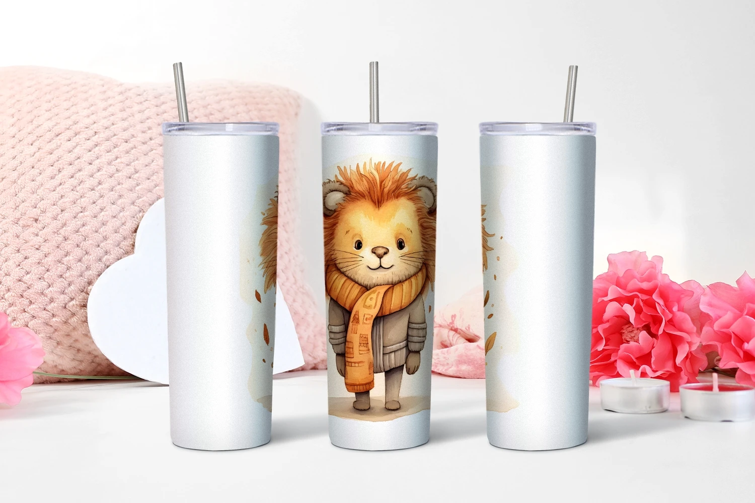 Watercolor Cute lion Tumbler Wrap 20 oz
