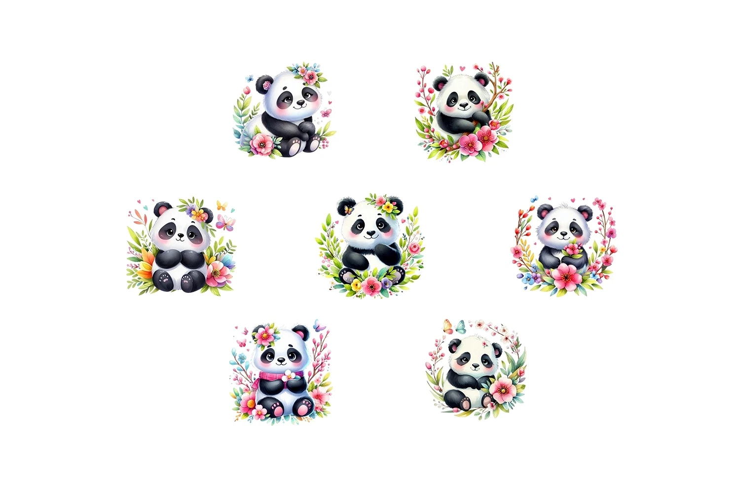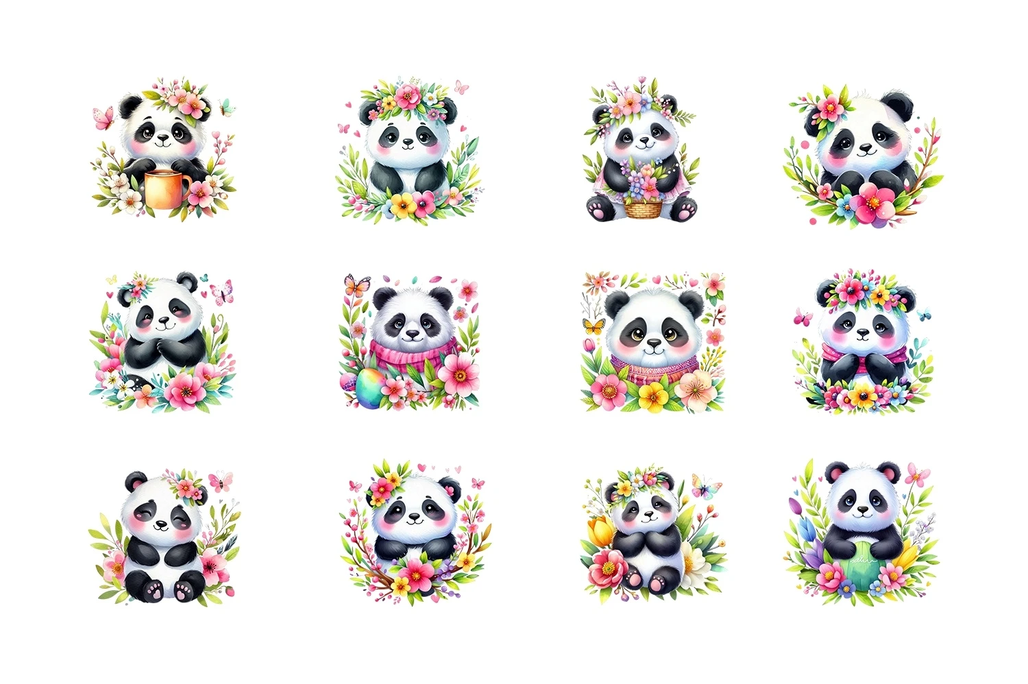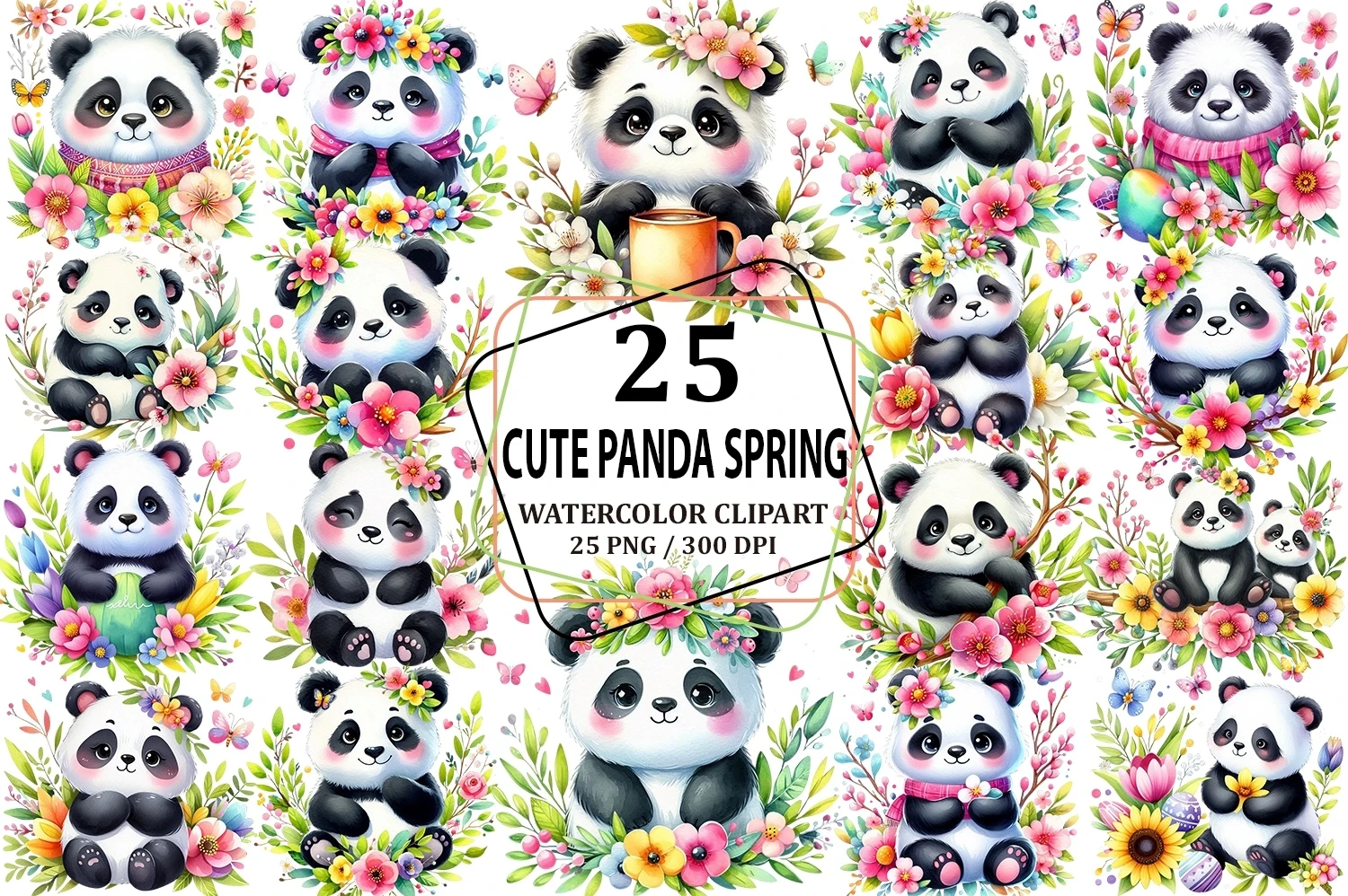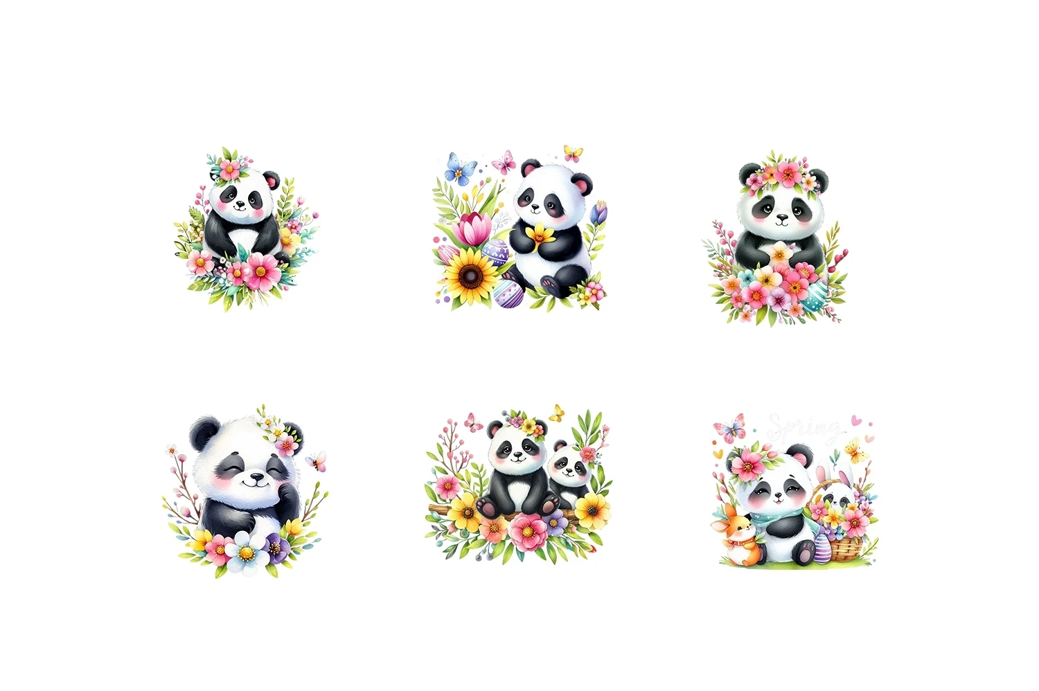 Watercolor Cute Panda Spring Clipart Sublimation PNG (AI-generated).