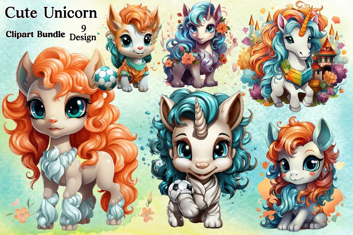 Watercolor Cute Unicorn PNG Clipart PNG Clipart Bundle