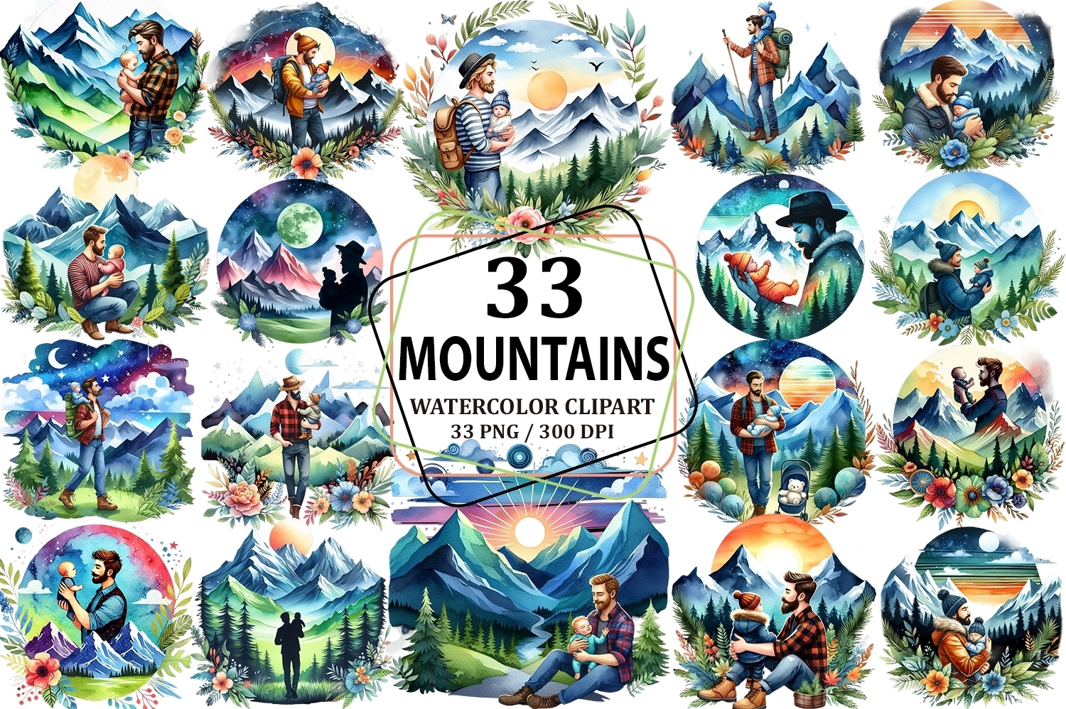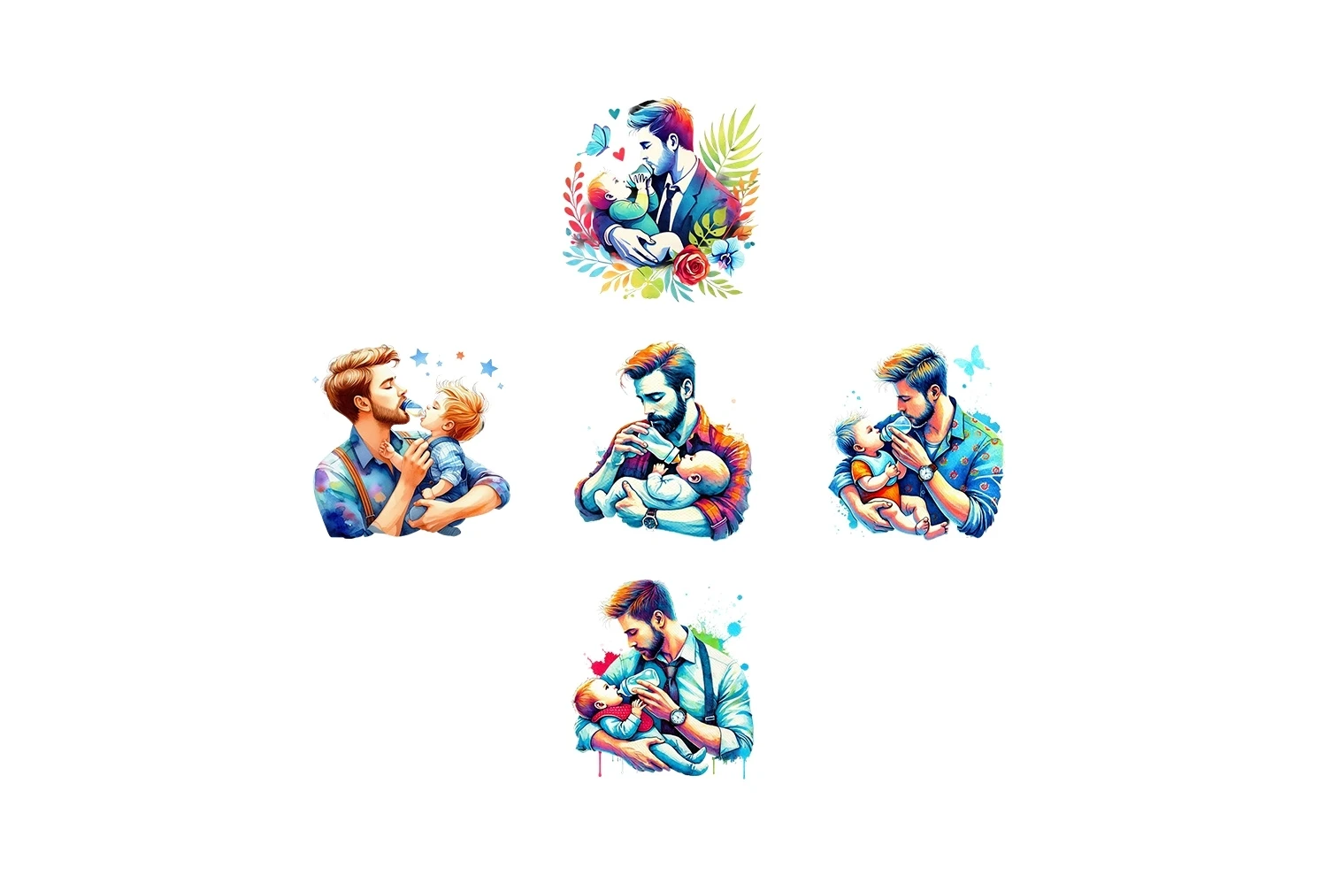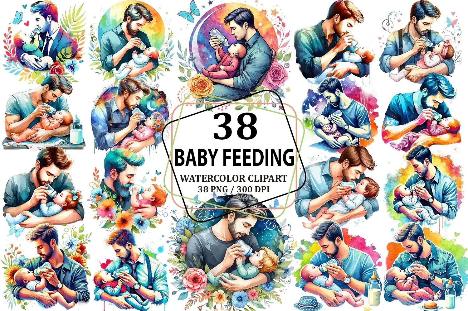 Watercolor Dad Baby Feeding Fathers Day Clipart Sublimation (AI-generated).