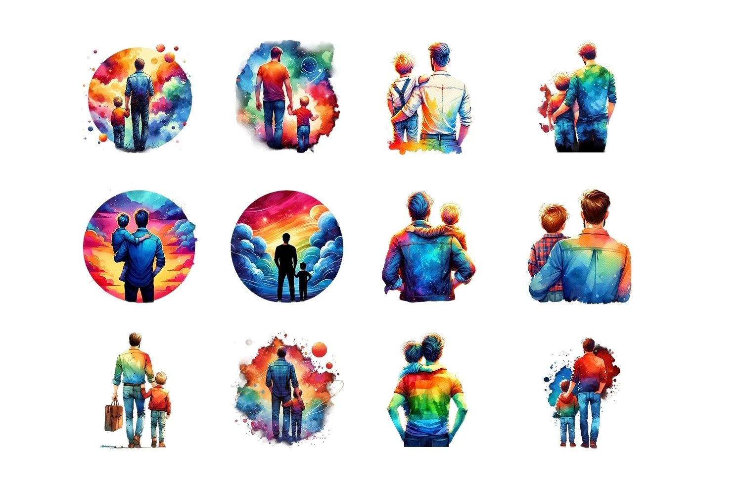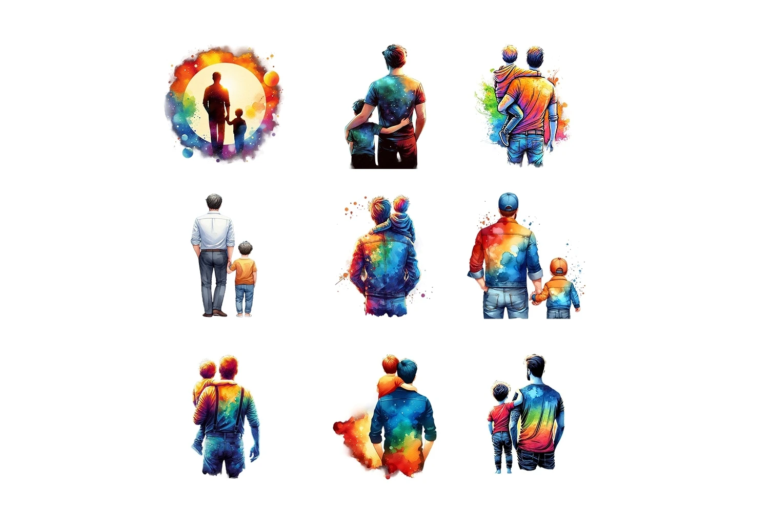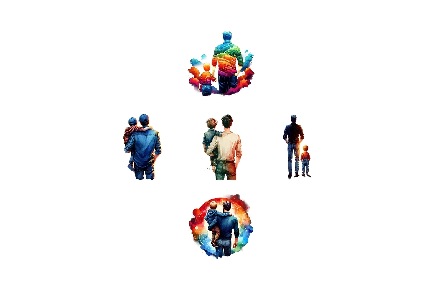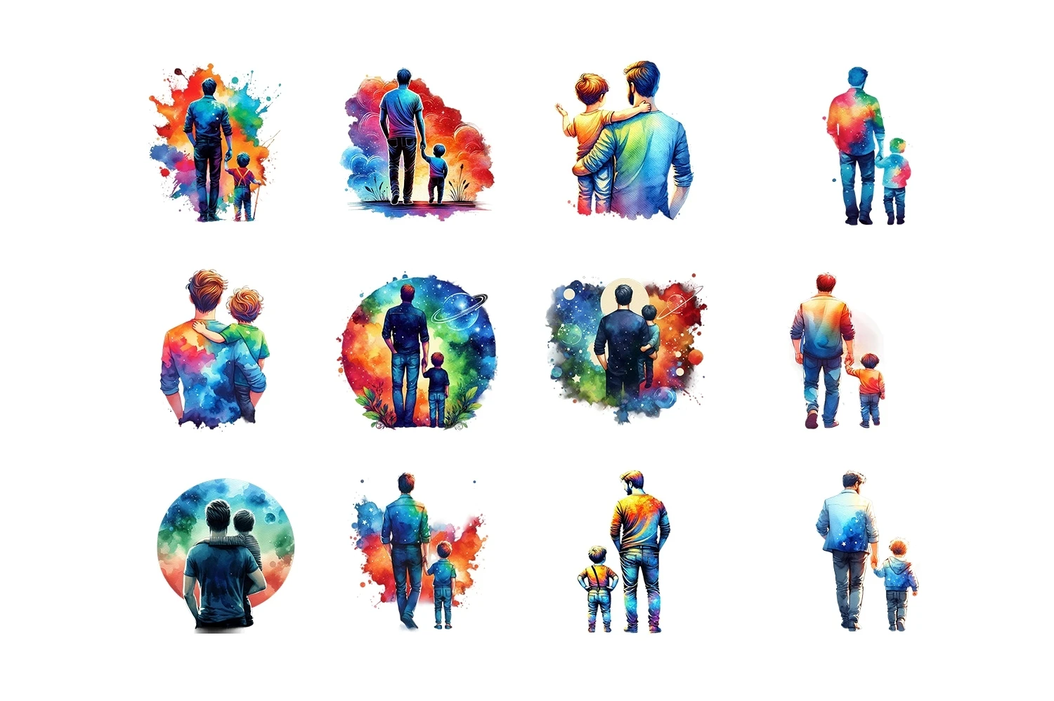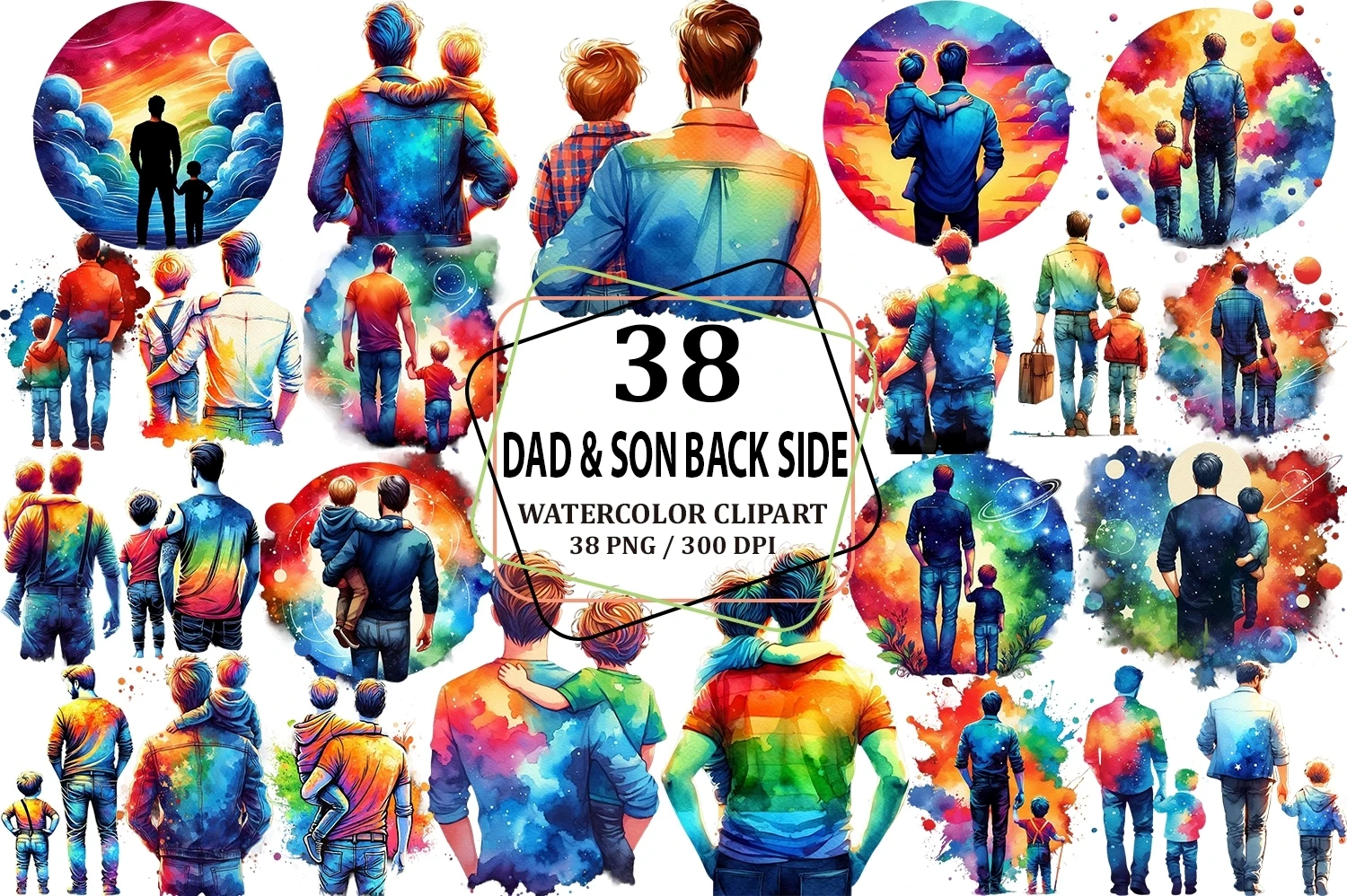Watercolor Dad & Son back side Clipart Sublimation PNG (AI-generated).