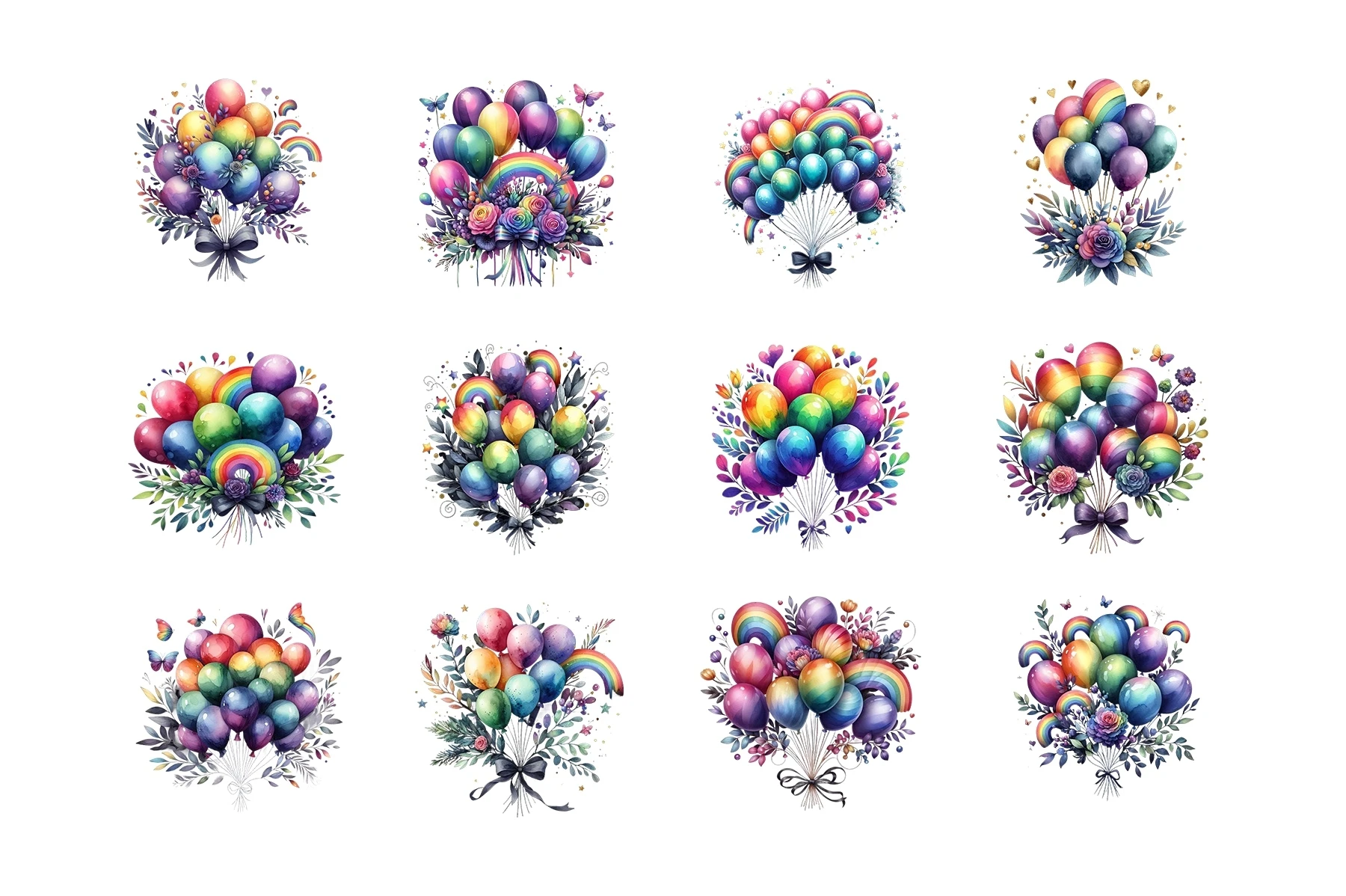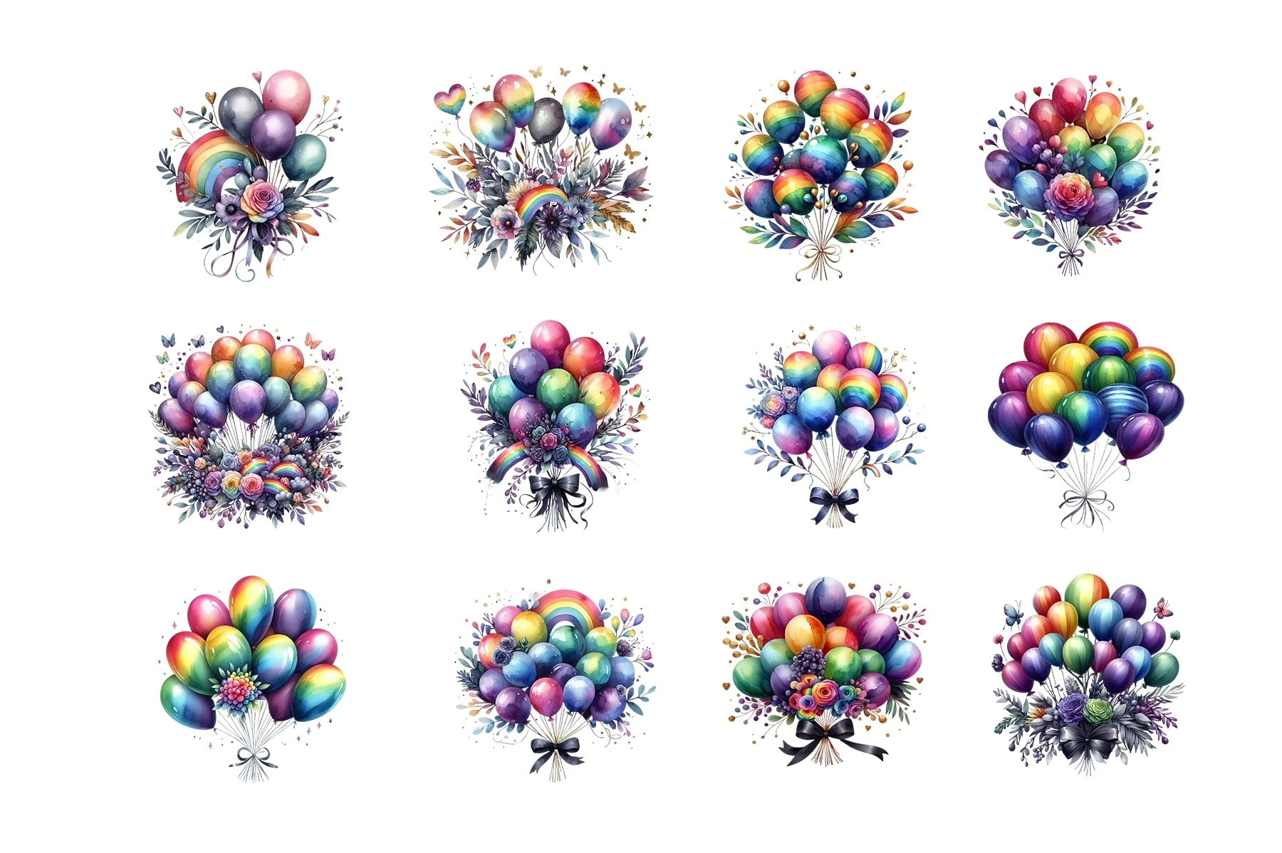 Watercolor Dark Rainbow Balloons Clipart Sublimation PNG (AI-generated).